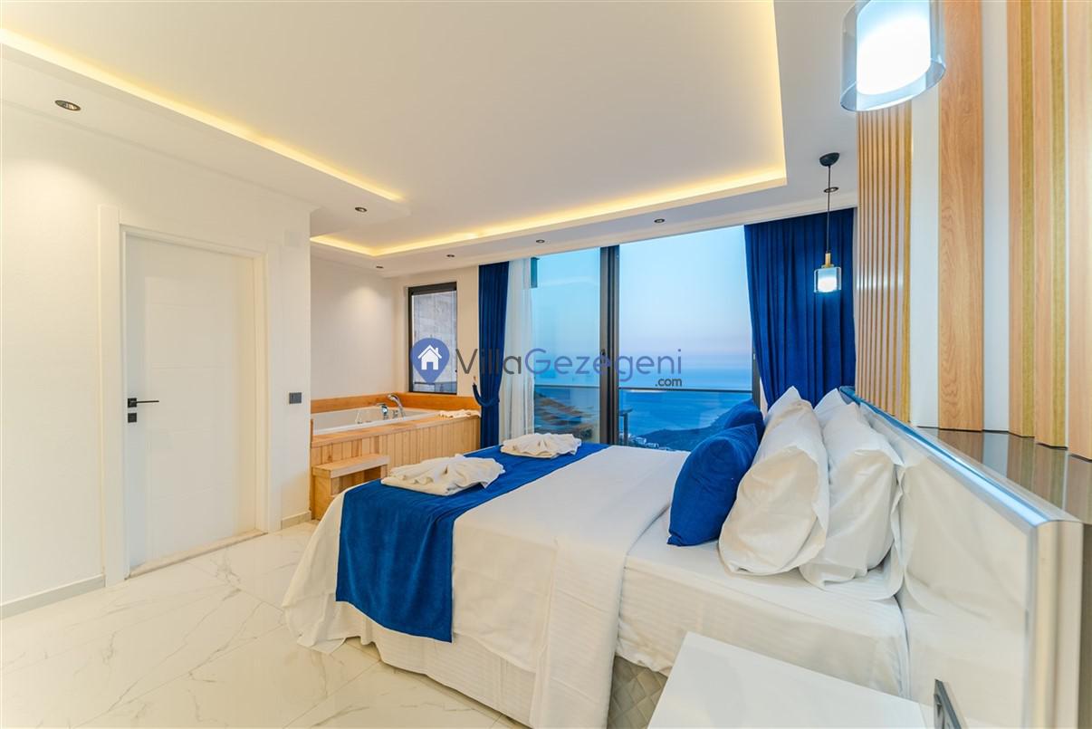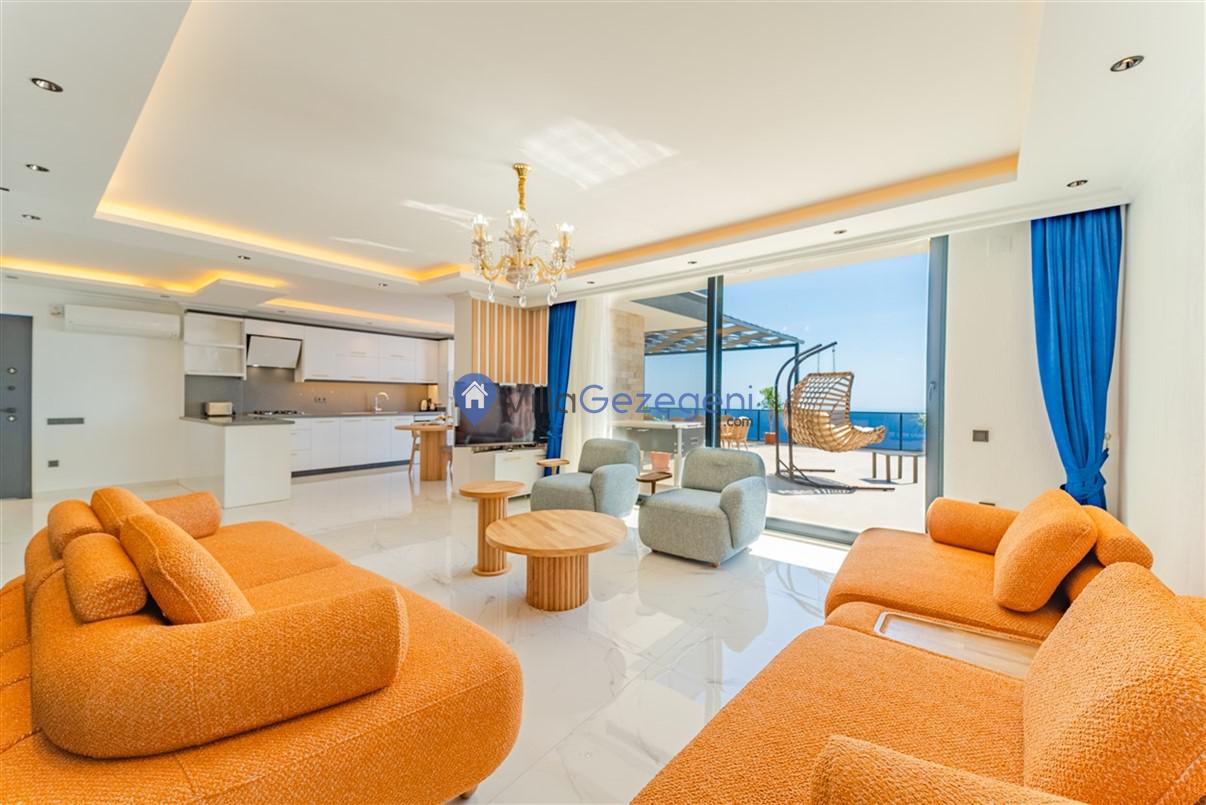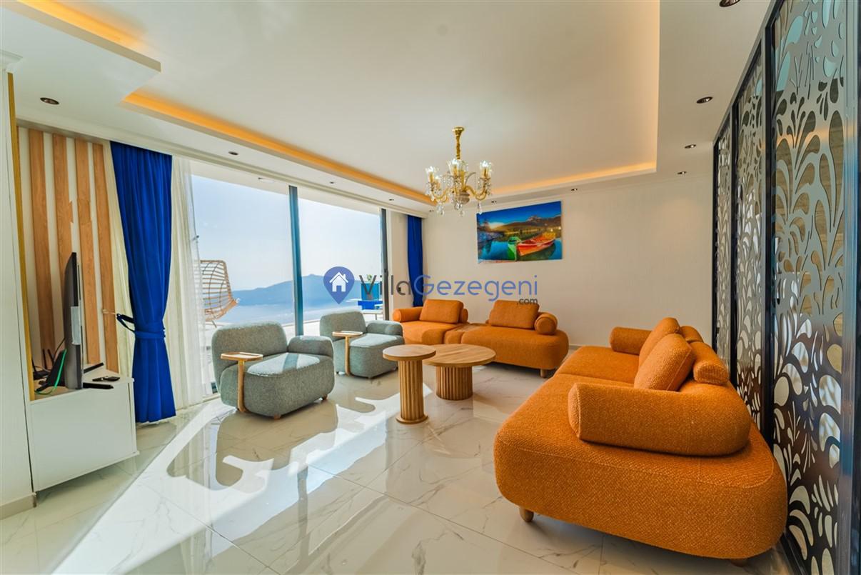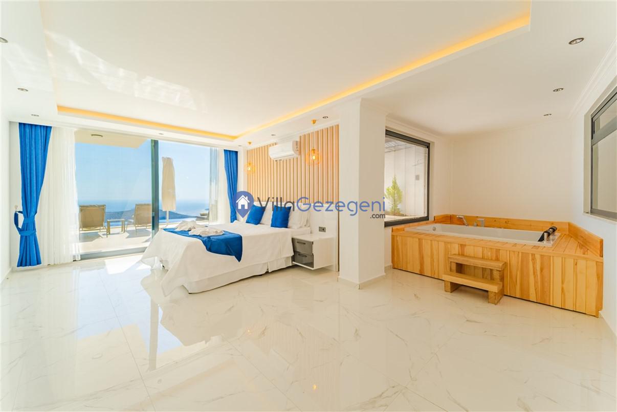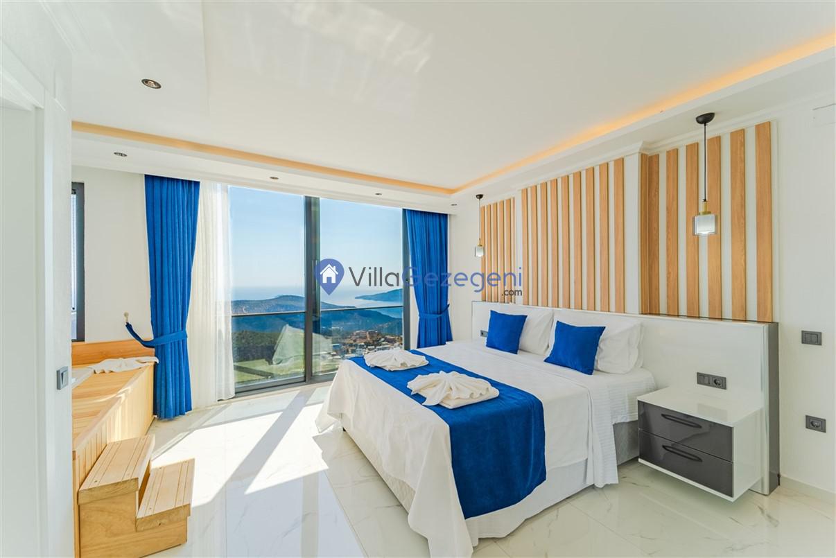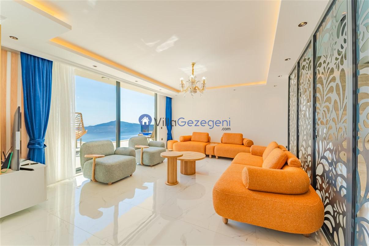 Kaş Kalkan Kördere Bölgesinde yer alan 5 yatak odalı 10 kişi kapasiteli deniz manzaralı kiralık tatil villası.