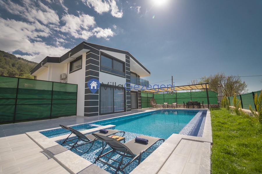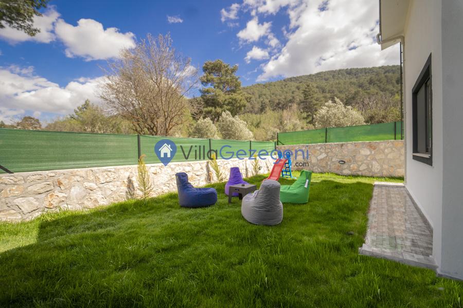Muhafazakar mimarisi, tamamen korunaklı özel havuzu 🏊♂️ ve doğa manzaralı keyifli bahçesiyle, gözlerden uzak bir tatil arayanlara ilaç gibi gelecek. Villanın dikkat çeken detayları arasında jakuzi, çocuk parkı 🎠, hamak, salıncak ve şık oturma alanları bulunuyor.