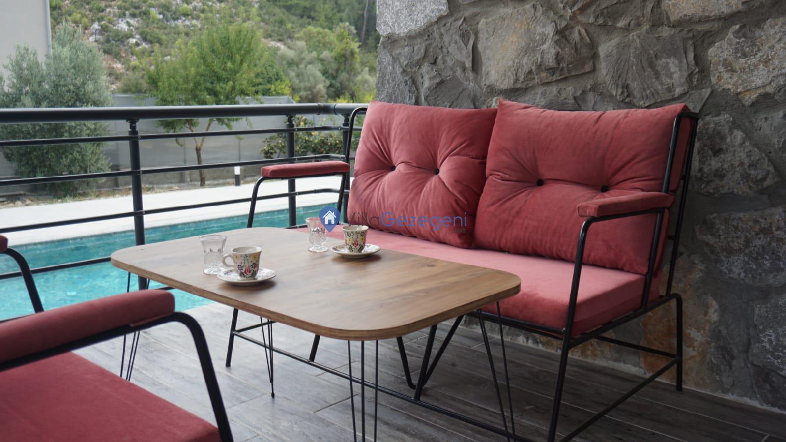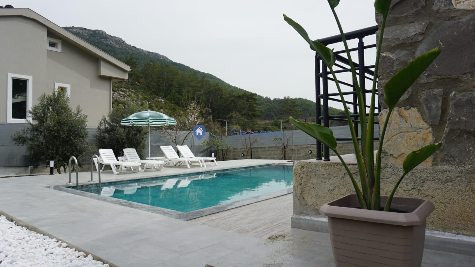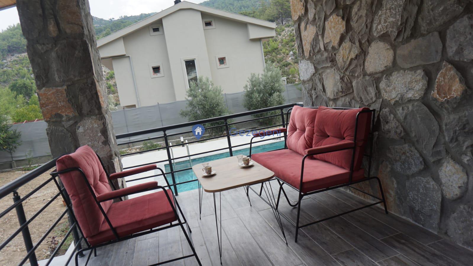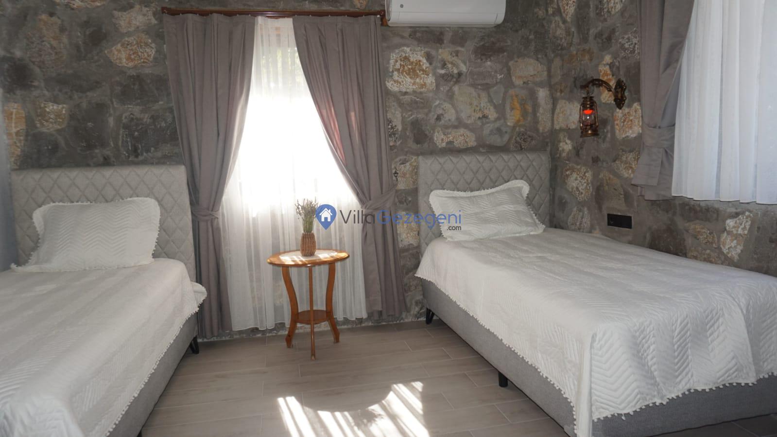 Fethiye Yeşilüzümlü bölgesinde yer alan 3 yatak odalı 6 kişi kapasiteli doğa içerisinde kiralık tatil villası.