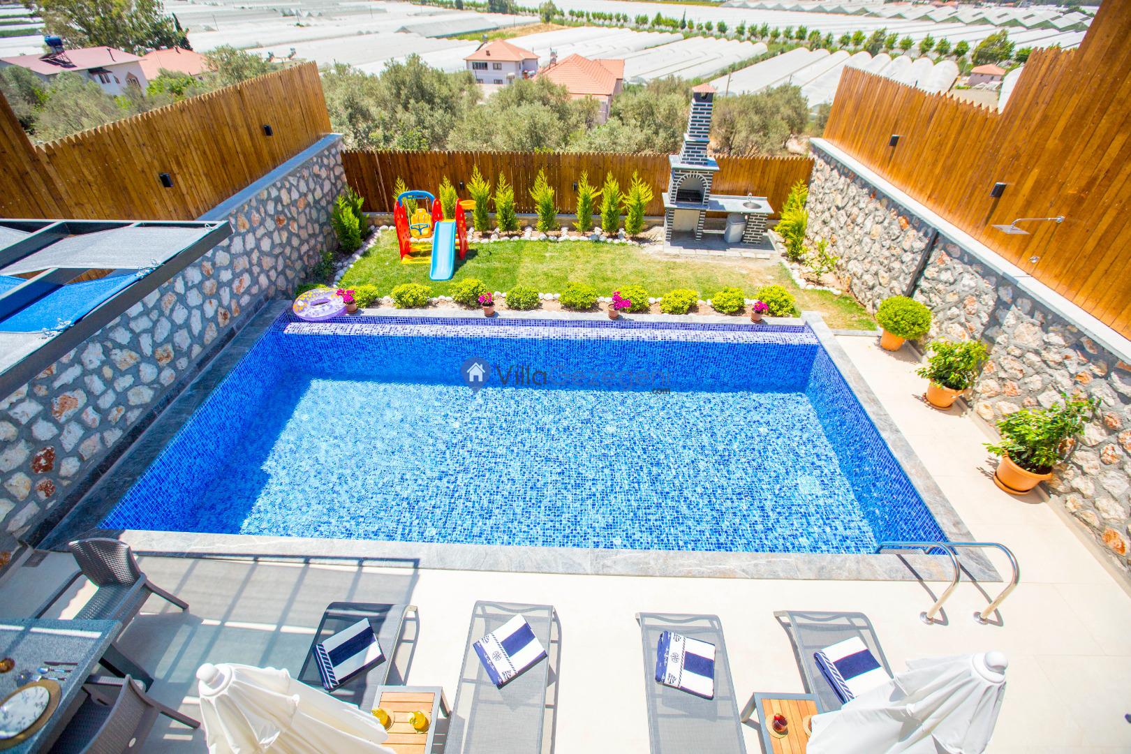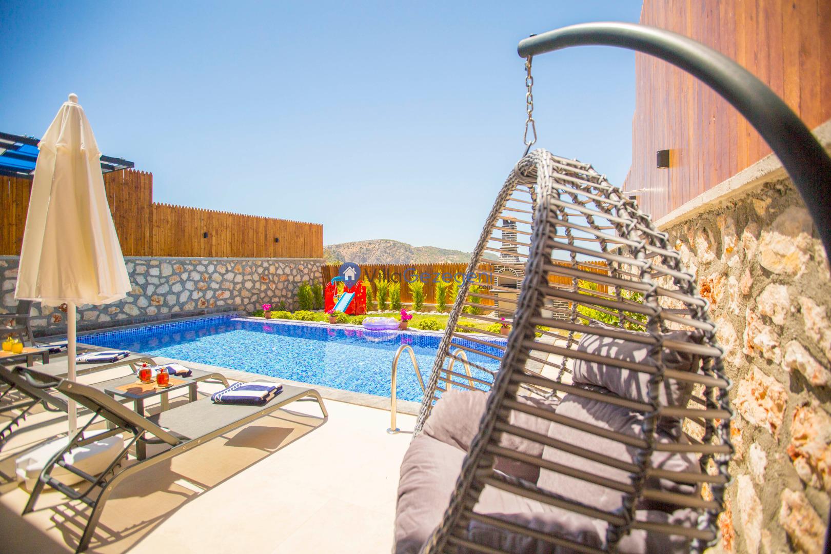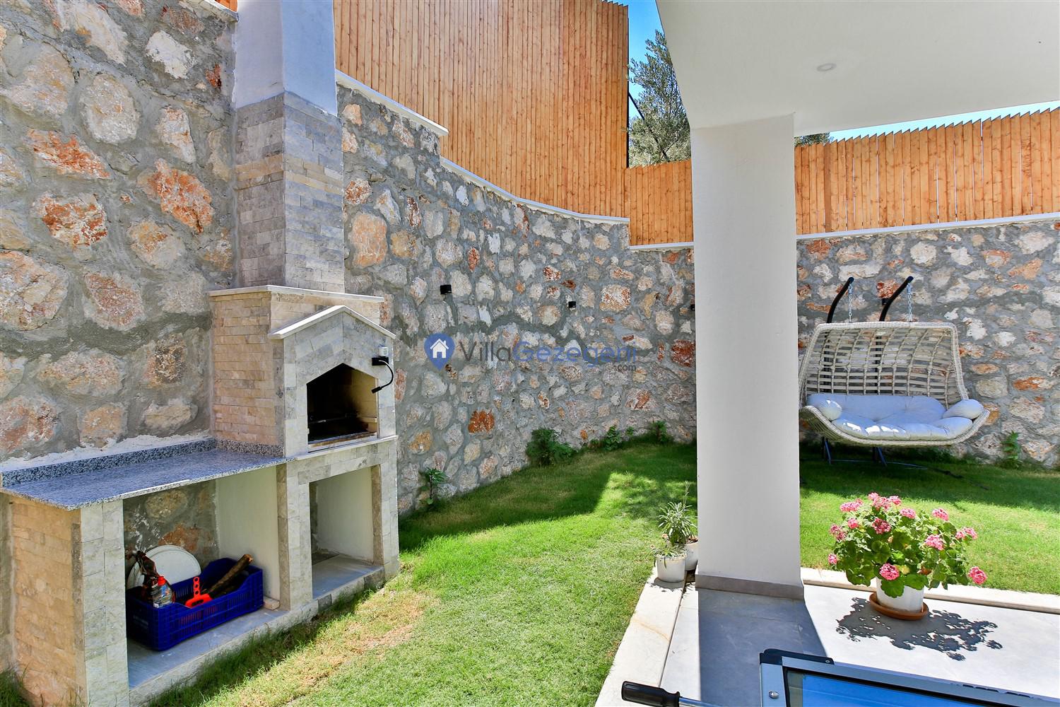Villa Okaliptüs Patara, Kalkan Patara bölgesinde 6 kişi kapasiteli, muhafazakar, yeşil bahçe alanlı, doğa içinde, kalabalık gruplara uygun kiralık villa.