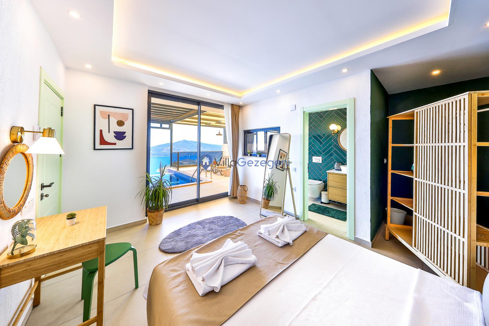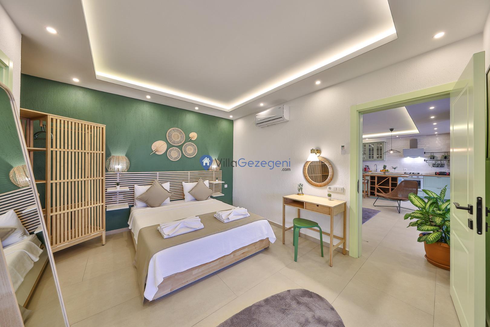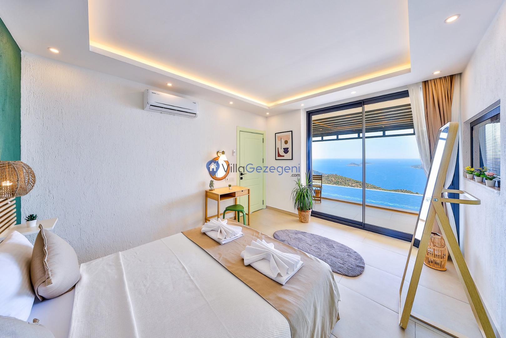 Kalkan Kördere bölgesinde yer alan tek yatak odalı 2 kişi kapasiteli deniz manzaralı balayı villalarımız arasında yer almaktadır.