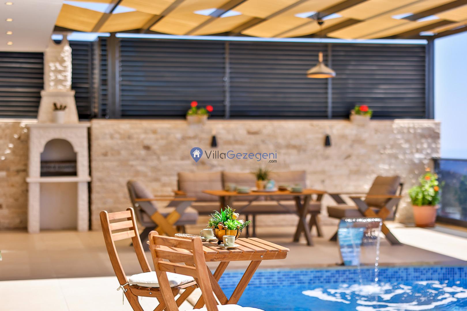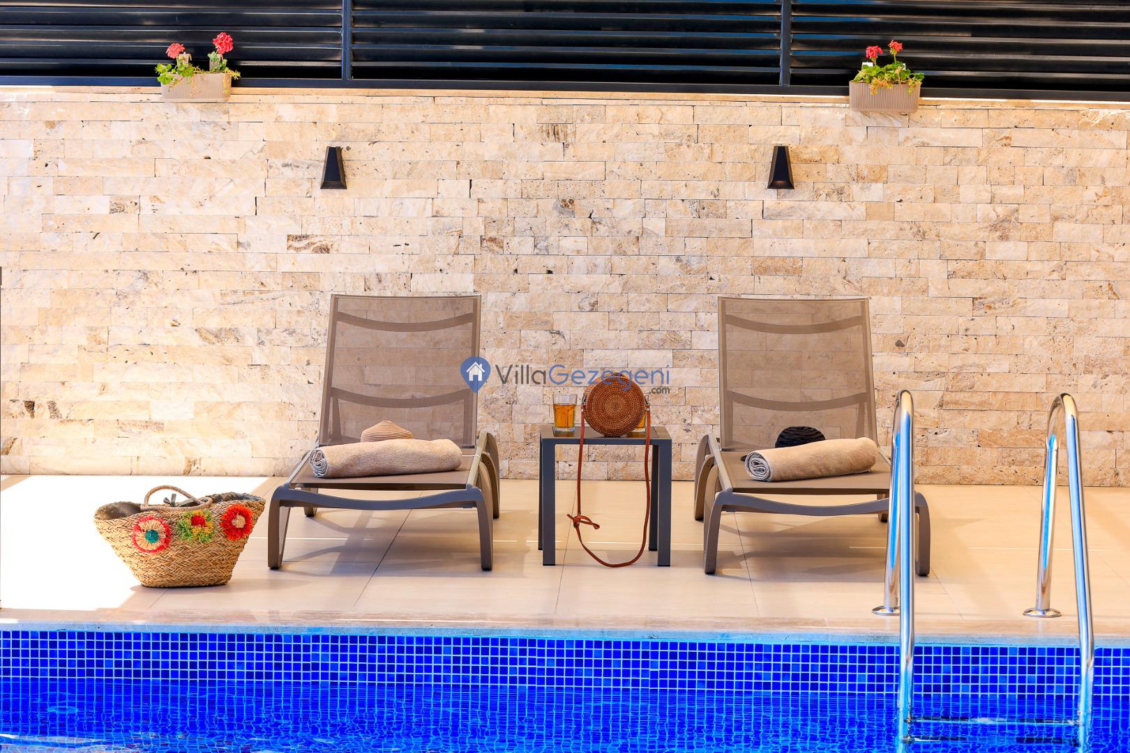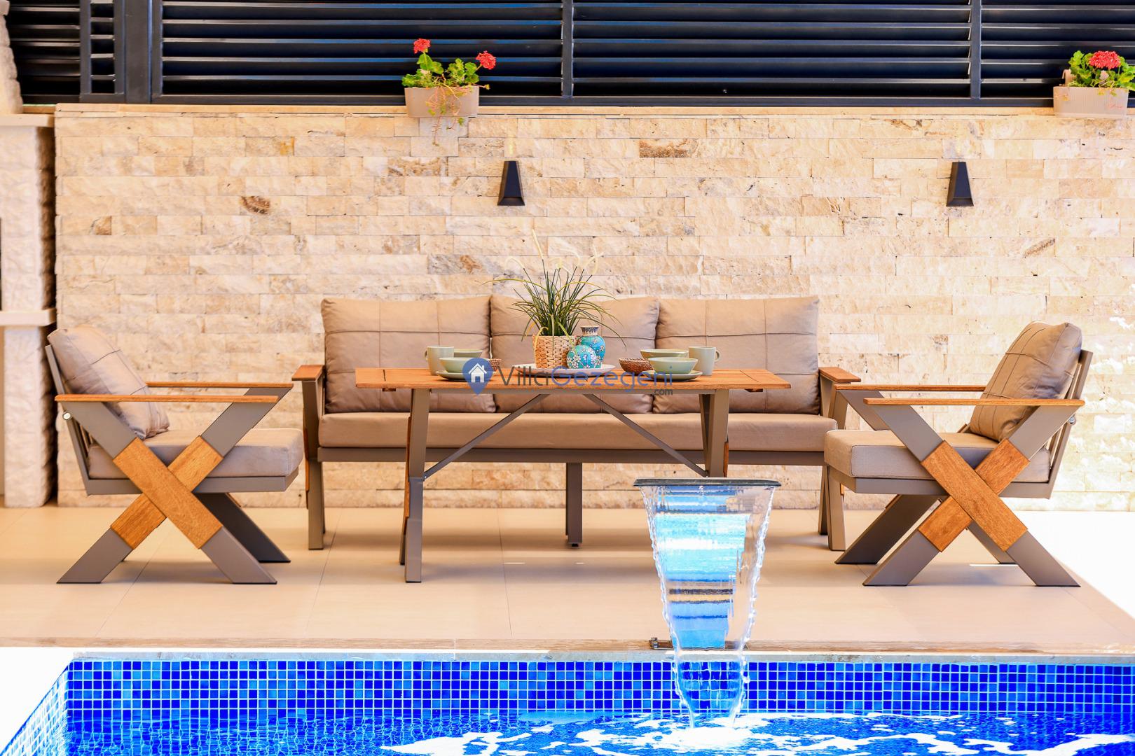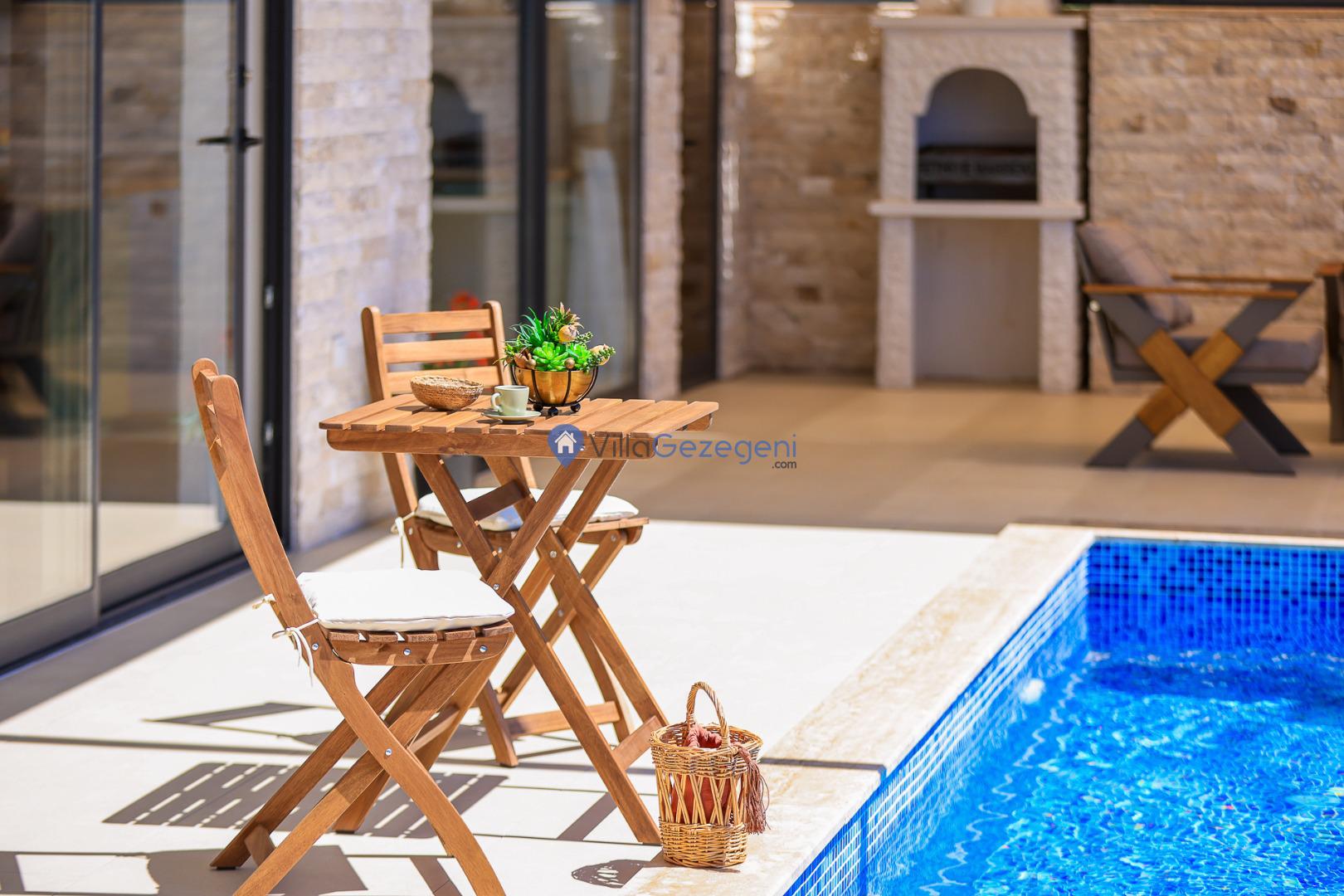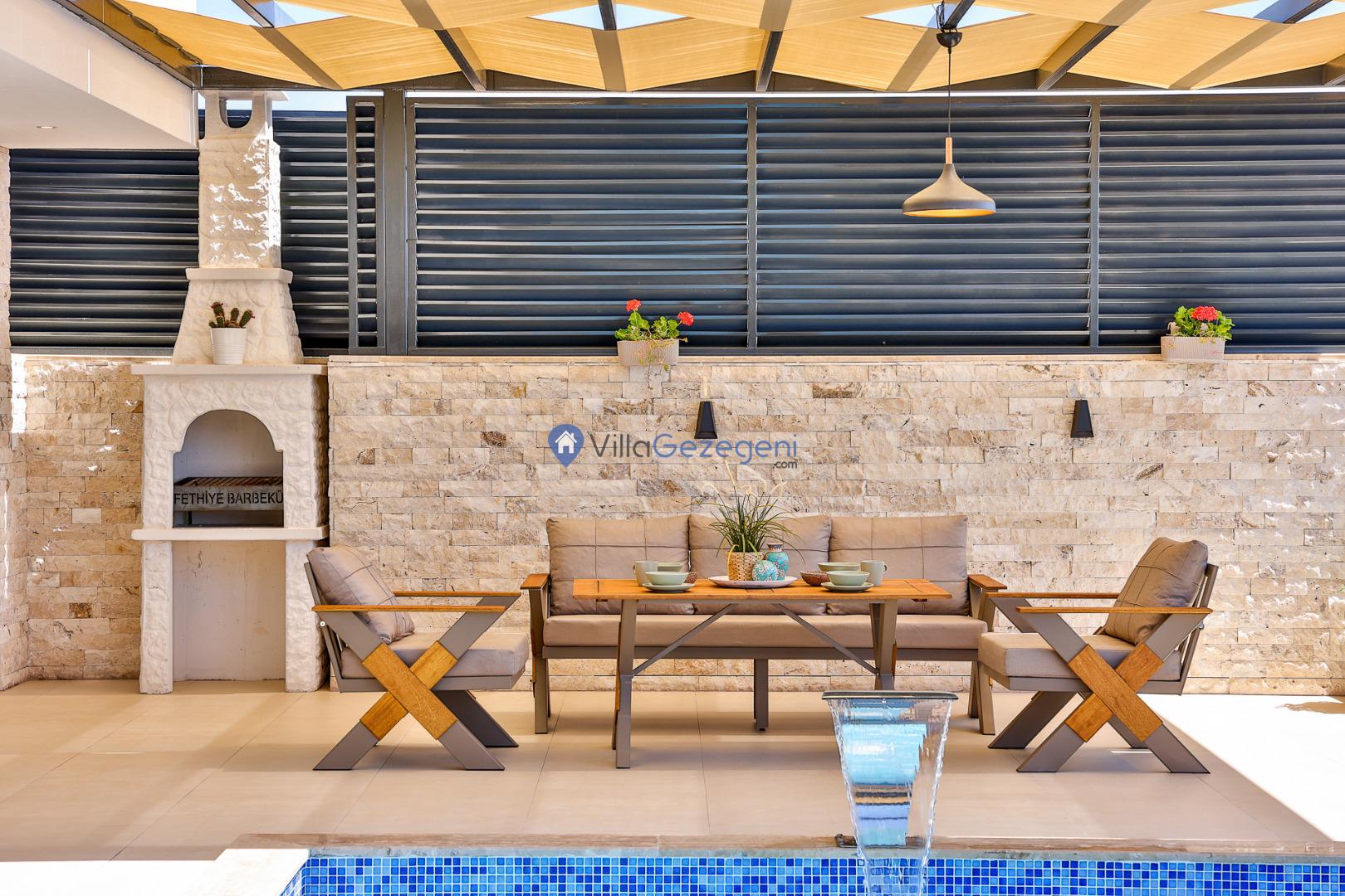 Şezlong, Güneş Şemsiyesi, Mangal, Yemek Masası ve bahçe mobilyaları kullanımınız için hazır bulunmaktadır. Gün batımına karşı unutulmaz bir tatilin kapılarını misafirlerine aralayan villamız modern örnekler arasında son dönemlerde geniş arkadaş grupları veya aileler tarafından her yaz dönemi yoğun olarak rağbet görmeye devam etmektedir.