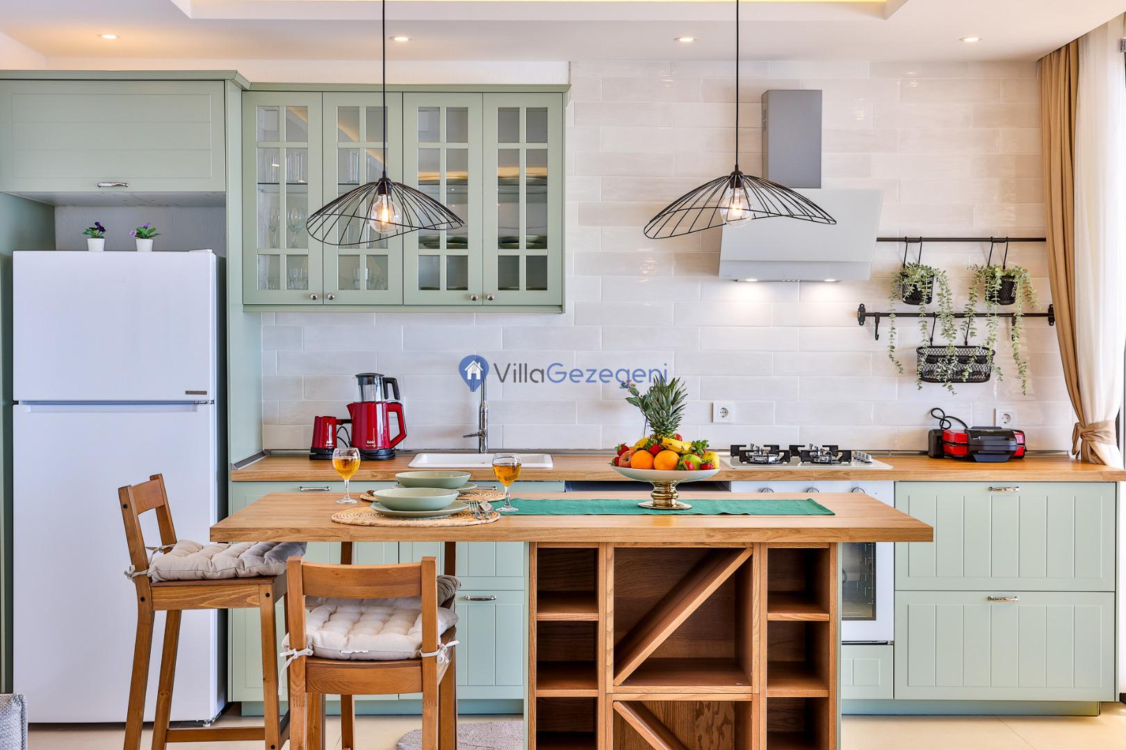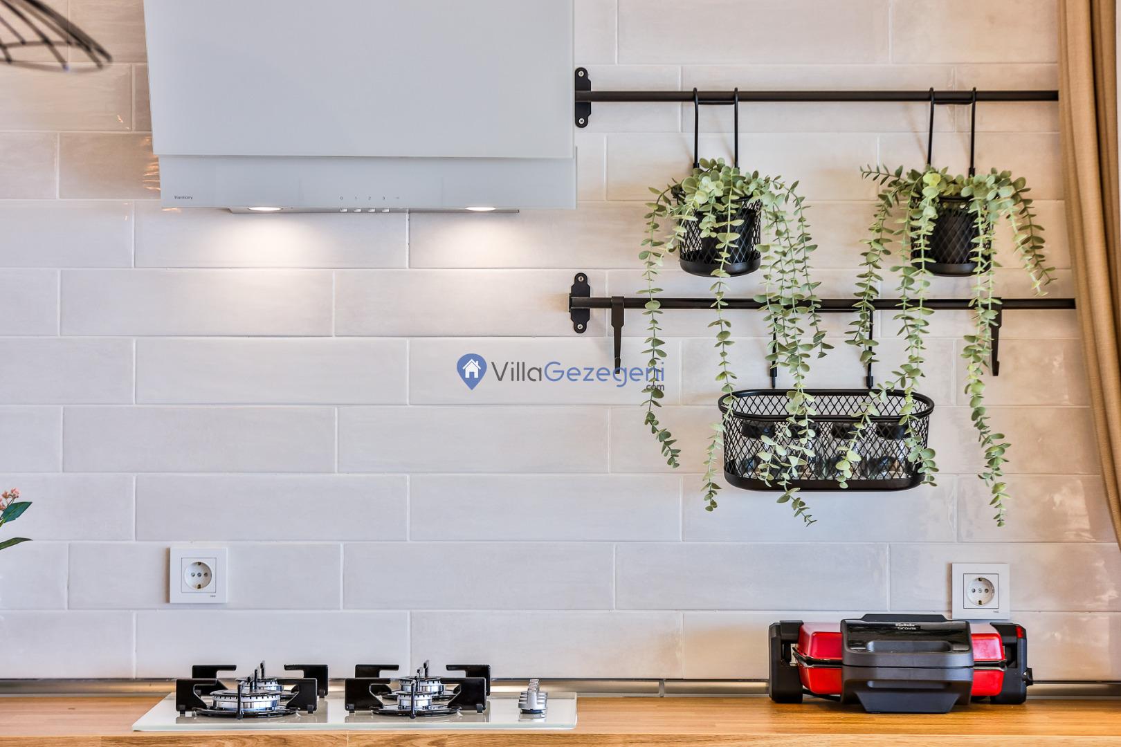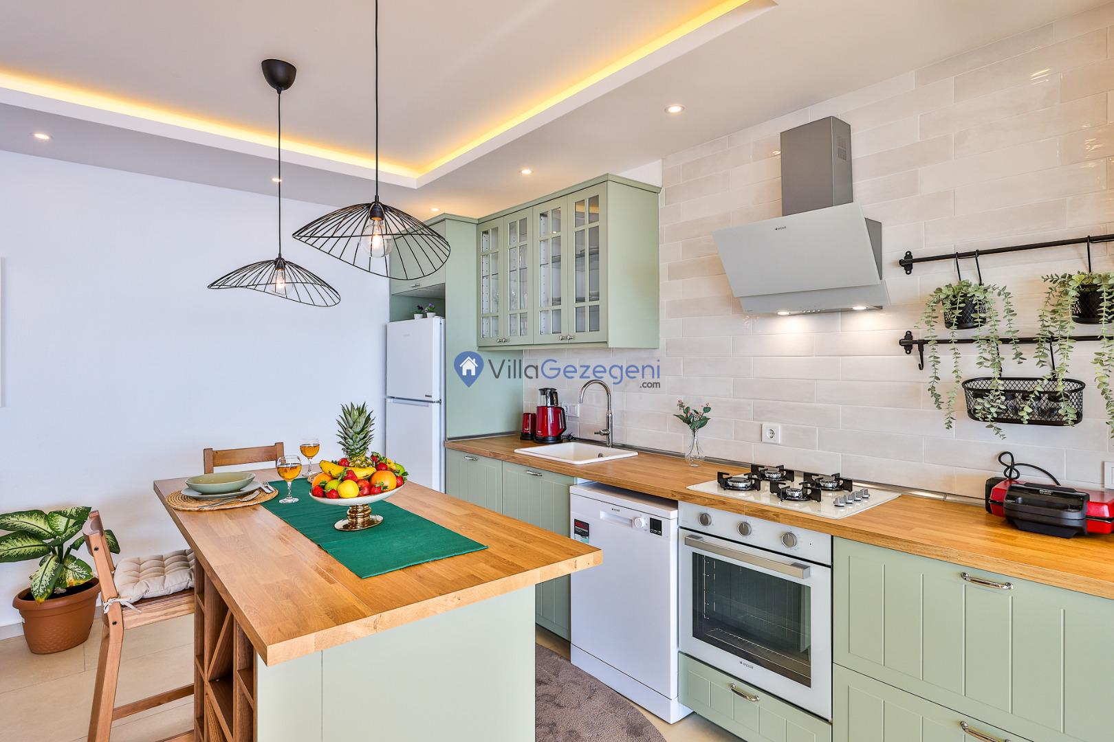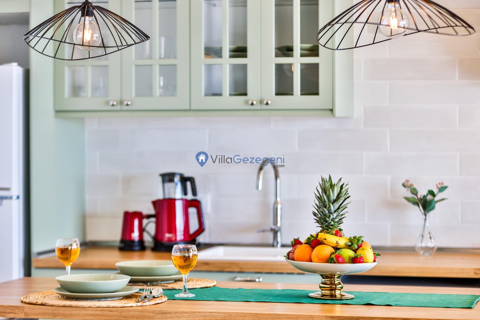 Villamız günlük hayatta sık kullanılan; Mikrodalga fırın, ankastre fırın, buzdolabı, çamaşır makinası, bulaşık makinesi, elektrikli su ısıtıcı kettle, ankastre 4’lü ocak, 14 kişilik yemek takımı, kaşık ve çatal takımı, tencere ve tava takımı, bardaklar yer almaktadır. İhtiyacınız durumunda villamızda bulunmayan malzemeler hakkında bizle iletişime geçebilir ve yardım isteyebilirsiniz.