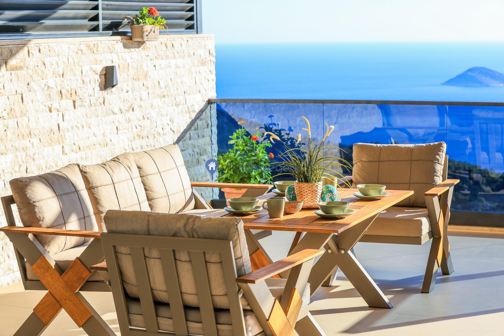 Teras bölümünde bulunan yemek masası ve sandalyeleri ile sabah kahvaltılarınıza manzarayıda ekleyebilirsiniz.