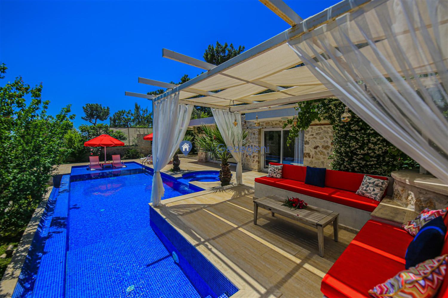 Kalkan İslamlar bölgesinde 4 kişi konaklama kapasiteli,havuz terası korunaklı jakuzili,balayı villası.