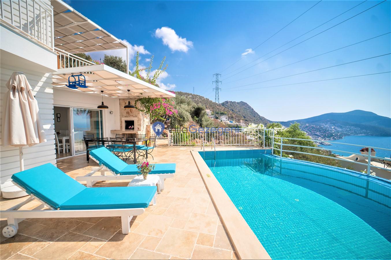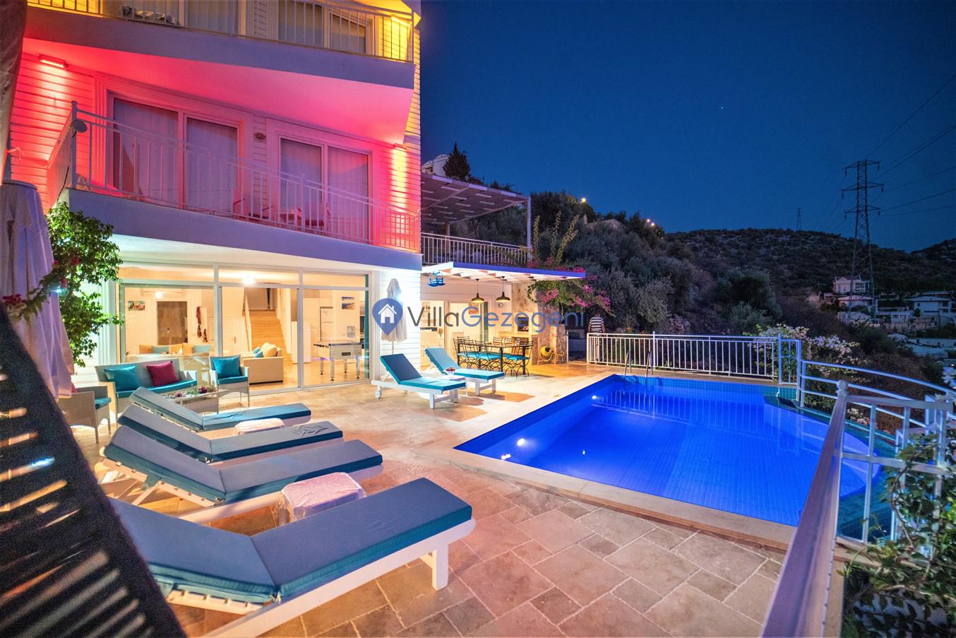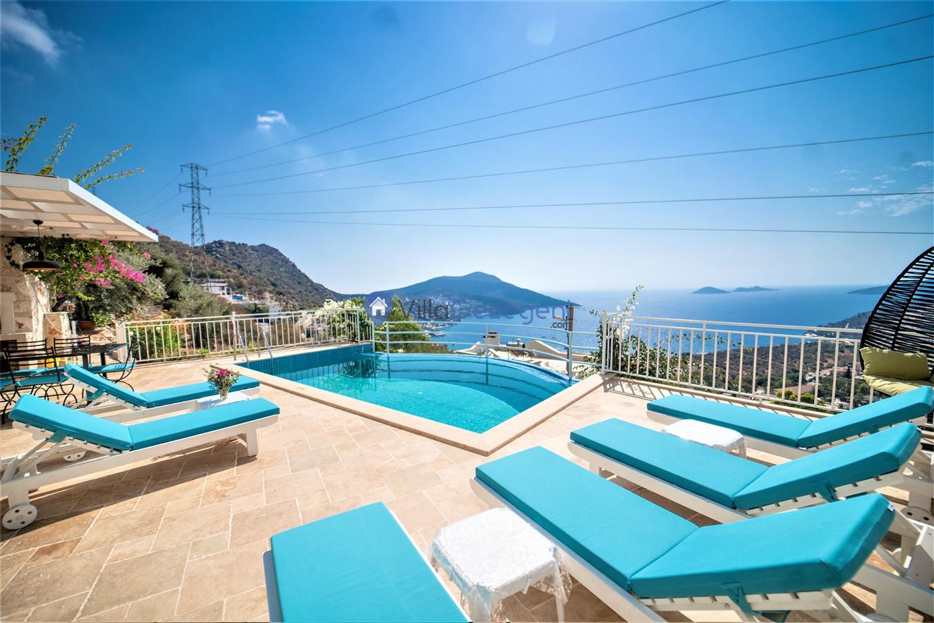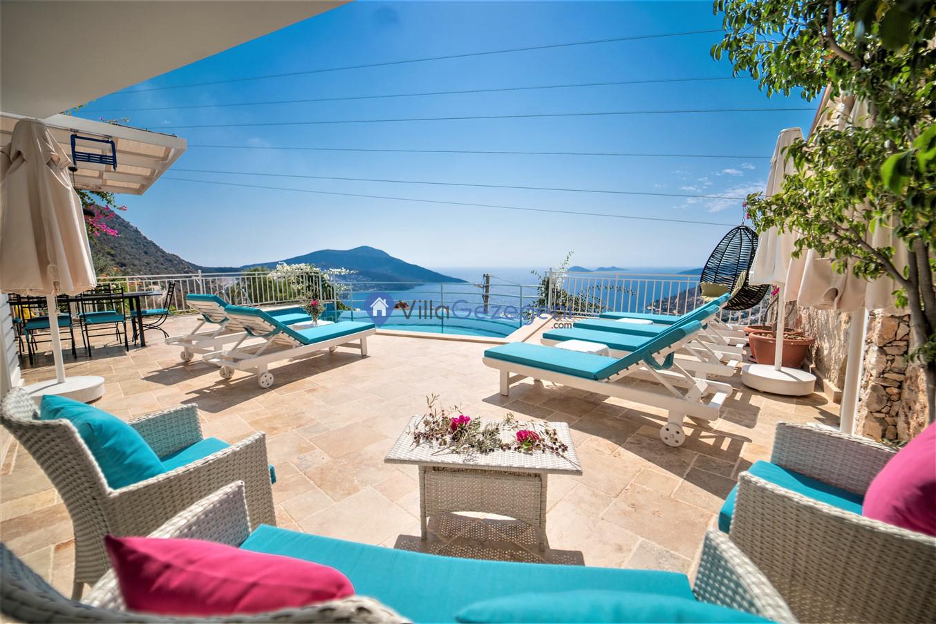 Kalkan Kızıltaş bölgesinde bulunan 5 yatak odalı 10 kişi kapasiteli geniş aile ve arkadaş grupları için uygun kiralık villası.