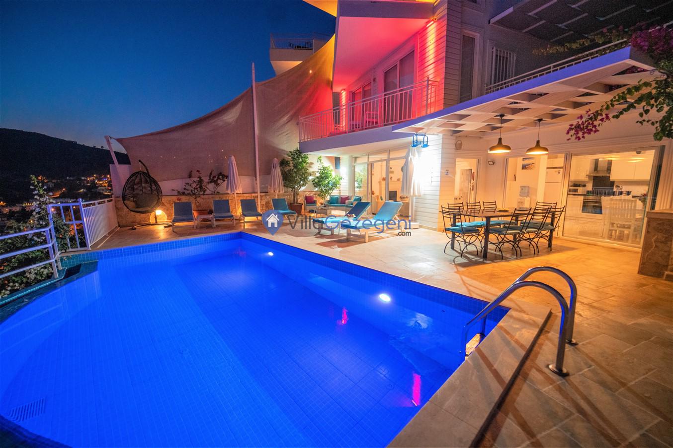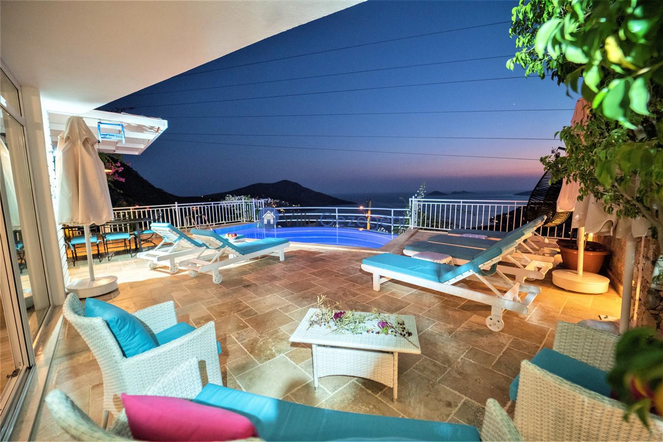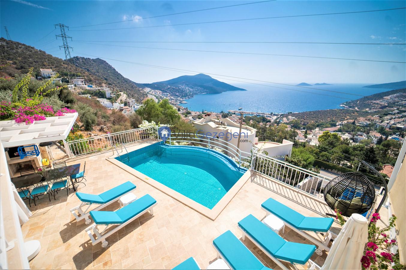 Kalkan Kızıltaş bölgesinde bulunan 5 yatak odalı 10 kişi kapasiteli geniş aile ve arkadaş grupları için uygun kiralık villası.