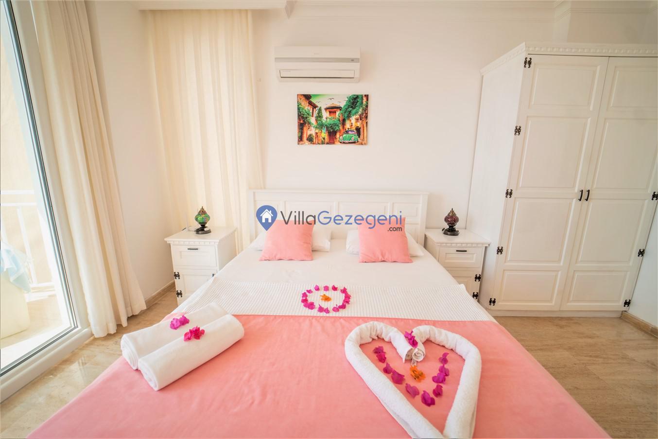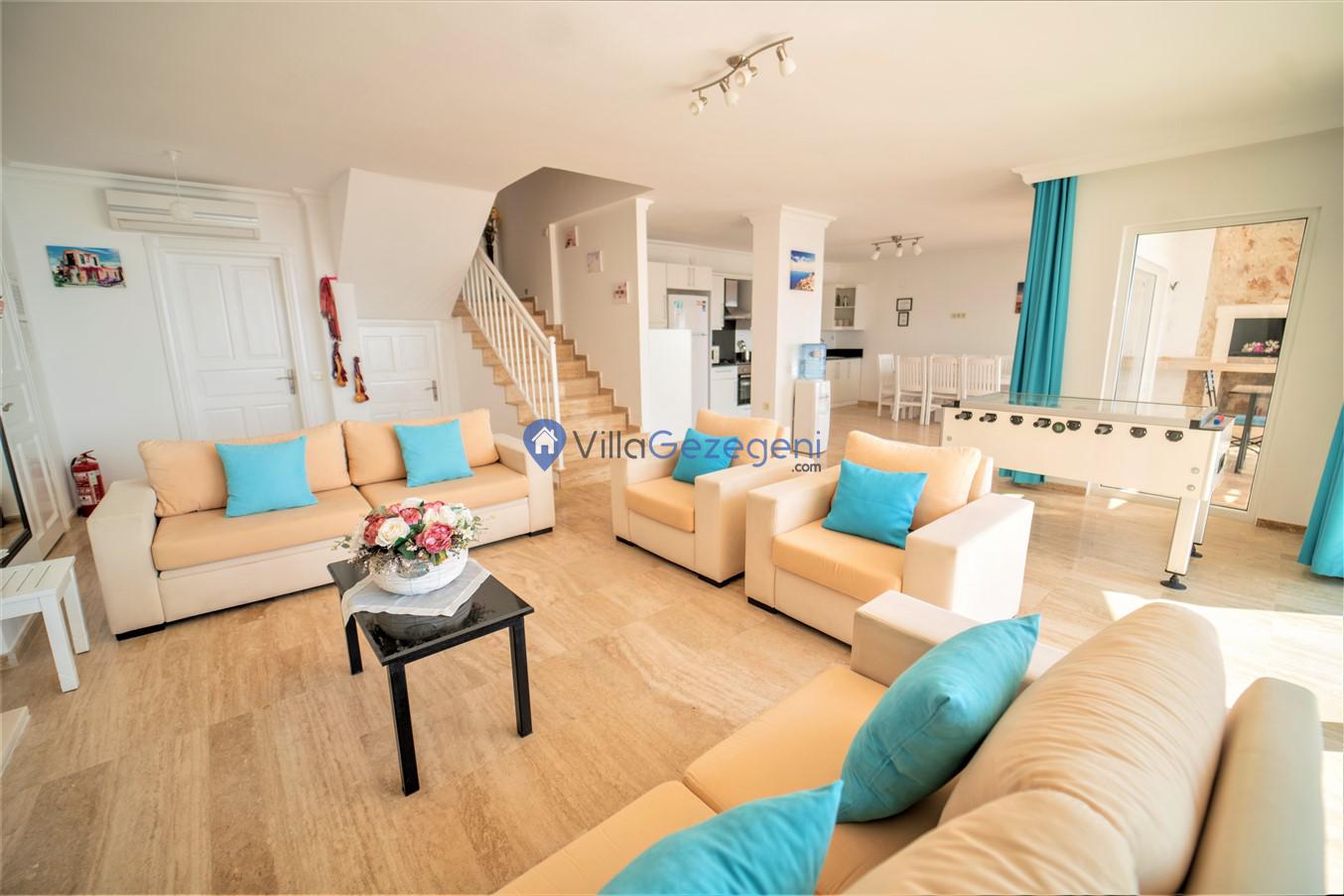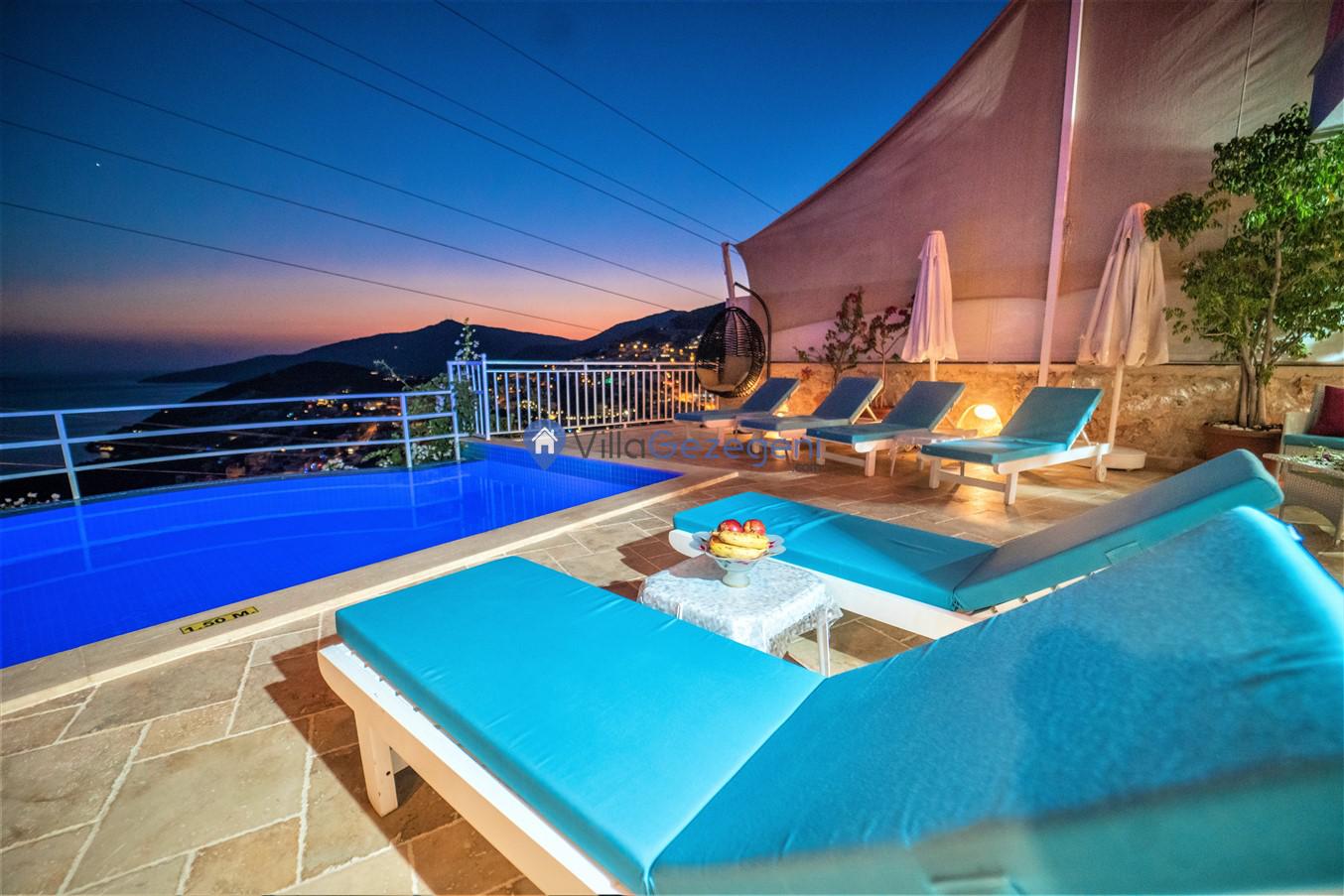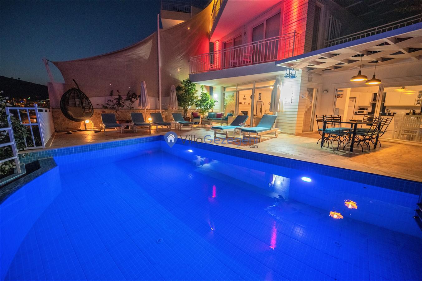 Kalkan Kızıltaş bölgesinde bulunan 5 yatak odalı 10 kişi kapasiteli geniş aile ve arkadaş grupları için uygun kiralık villası.