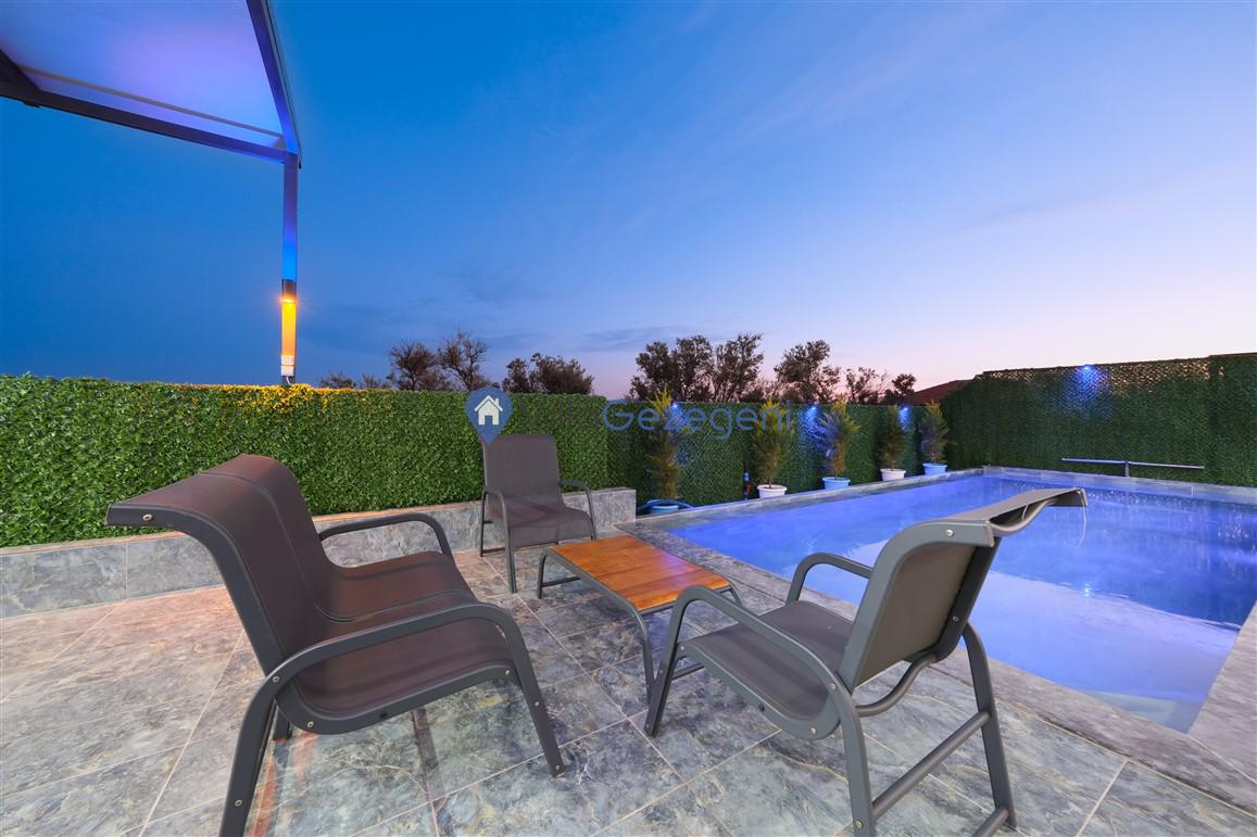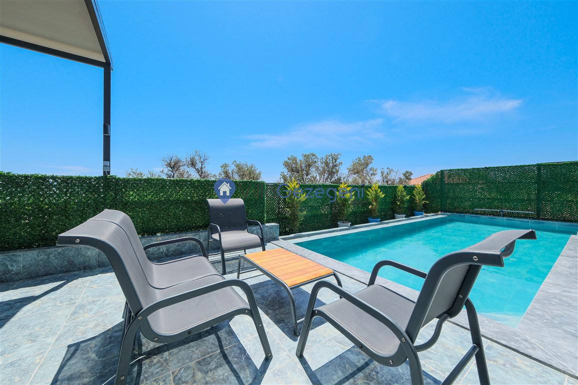 Villamızın zengin özelliklerine bir kez daha göz atarsak; özel bir deneyim sunan müstakil ve özel bir havuza sahiptir. Villamız, konfor ve rahatlığı öncelikli tutan tasarımıyla dikkat çeker. beş şık yatak odası, altı yatak ve iki banyo ile konuklarımıza geniş ve rahat bir yaşam alanı sunmaktadır. Ayrıca, geniş ve fonksiyonel bir mutfak, yemek pişirme sürecini keyifli bir deneyime dönüştürür. Salonumuz, dört kişinin rahatça oturabileceği ve geniş aralıklarla dinlenebileceği, konforlu koltuklarla donatılmıştır. Bahçemiz ise sakin ve huzurlu anların keyfini çıkarabileceğiniz ideal bir ortam sunar. Bu villa, hem günlük yaşamın stresinden uzaklaşmak hem de huzurlu bir tatil geçirmek isteyenler için mükemmel bir seçenektir.