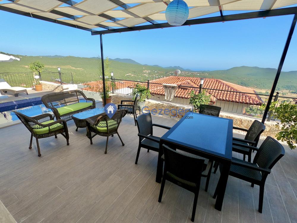 Kaş Çukurbağ bölgesinde yer alan 3 yatak odalı 6 kişi kapasiteli doğa içerisinde genş aile ve arkadaş grupları için uygun kiralık tatil villası.