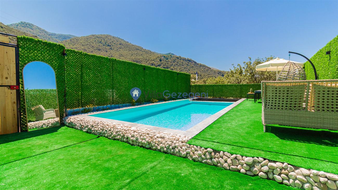 Villamızın genel konsept ve özelliklerinden tekrar bahsedecek olursak; villamızın 1 adet müstakil özel havuzu bulunmaktadır. Ortalama bir bahçeye sahip olan villamız rahatlığı ön planda tutan 2 adet yatak odası, 3 yatak, 2 banyo, hareket alanı geniş bir mutfak ve 5 kişinin geniş aralıklarla rahatlıkla oturabileceği koltuklara sahip salonu bulunmaktadır.