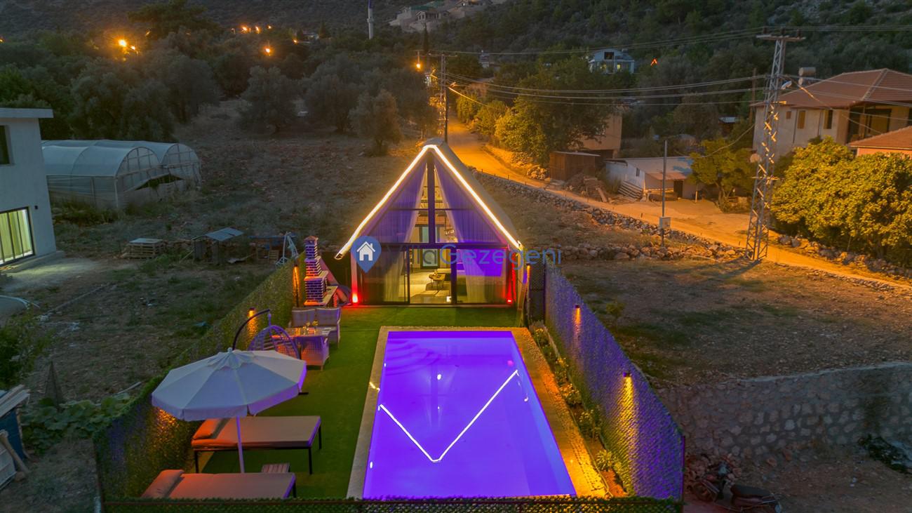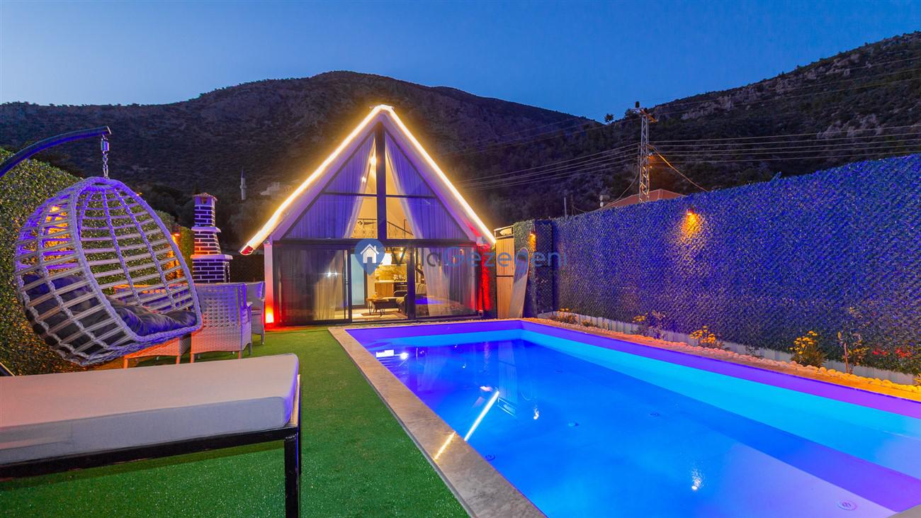 Kaş Kalkan Çayköy Bölgesinde yer alan tek yatak odalı 2 kişi kapasiteli havuzu korunaklı tatil villası.