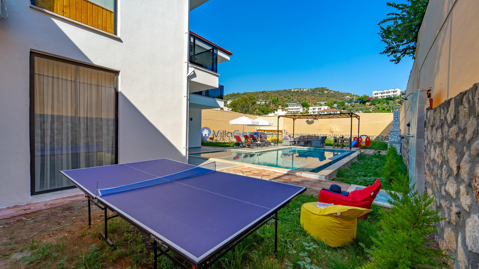 Villamızın bahçe ve teras alanında tatilinize ayrı bir hava katması için kullanımınıza sunulan çok sayıda alan ve eşya bulunmaktadır. Bu alanları konaklamanız boyunca dilediğiniz gibi kullanabilir, tatilin keyfini en iyi şekilde yaşayabilirsiniz. Villamızın bahçe ve teras alanında kullanmanız için oturma grubu, şezlong, şemsiye, salıncak ve barbekü yer almaktadır. Bu sayede villamızın teras alanında güneşlenebilir, eşinizle baş başa yemek yiyebilir ve dilediğiniz gibi vakit geçirebilirsiniz.