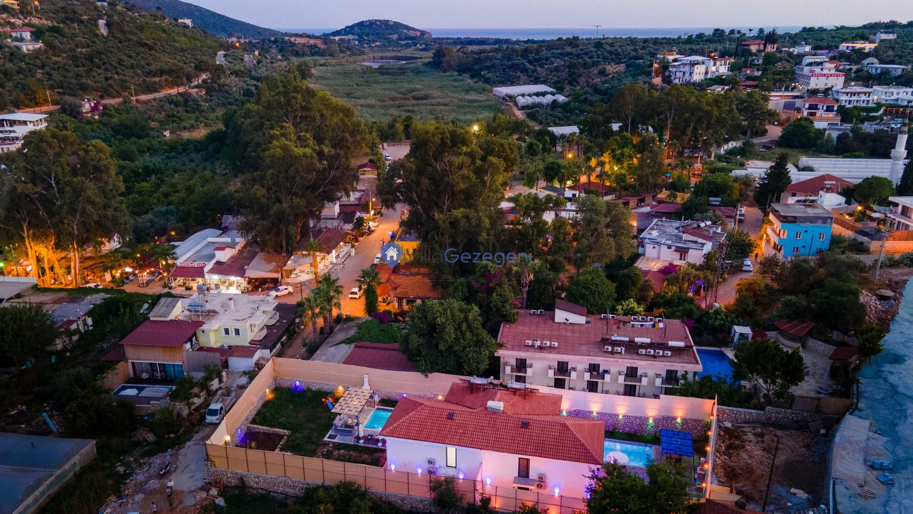 Villamız tüm bu özelliklerinin yanı sıra konum özellikleri ile de ön plana çıkmaktadır. Villamız Kalkan merkeze 13 km, markete 500 m ve restaurantlara ise yaklaşık 1 kilometre uzaklıkta yer almaktadır. Bu sayede villamızdan ayrılıp günlük temel ihtiyaçlarınızı çok kısa sürede giderebilmektesiniz. Eğer “Denizsiz tatil olmaz, denie girmek istiyorum!” diyorsanız villamıza en yakın plaj 3 kilometre uzaklıkta yer almaktadır. Böylece villanızdan ayrılıp aracınızla yaklaşık 5 dakika içerisinde plaja ulaşabilirsiniz.
