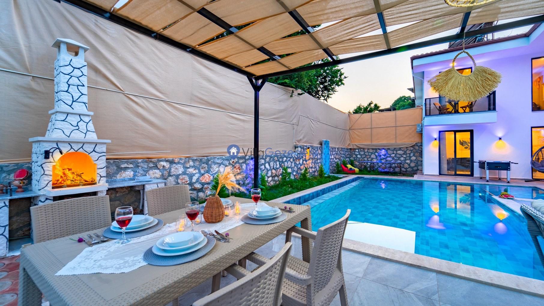 Villa terasında ve villa içerisinde bulunan tüm bu alanlar hem balayı çiftleri hem de muhafazakar ailelerin oldukça keyifli bir tatil geçirmelerini sağlamaktadır. Villamızda konakladığınız süre boyunca villa içerisinde ve teras alanında bulunan tüm bu alanları dilediğiniz gibi kullanabilmektesiniz.