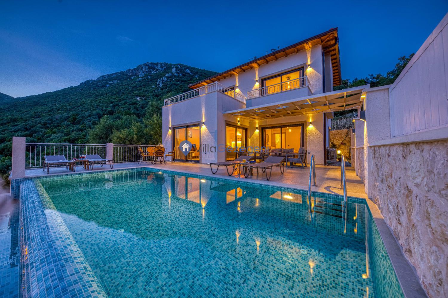 Geniş ve ferah yaşam alanlarıyla dikkat çeken villa, modern tasarımı ve konforlu donanımıyla misafirlerine ev rahatlığında bir konaklama sunar. Özel yüzme havuzu, doğa manzaralı havuz terası ve açık hava oturma alanları sayesinde hem dinlenmek hem de keyifli vakit geçirmek mümkündür.