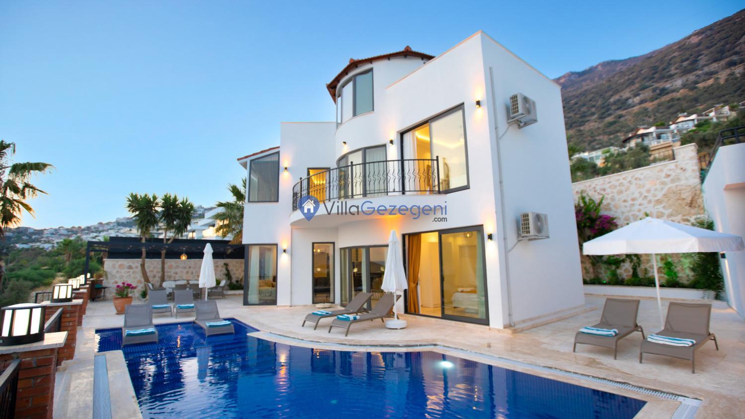 Kaş/Kalkan/Kızıltaş Bölgesinde yer alan 3 Yatak Odalı 6 Kişi Kapasiteli Deniz Manzaralı Tatil Villasıdır.