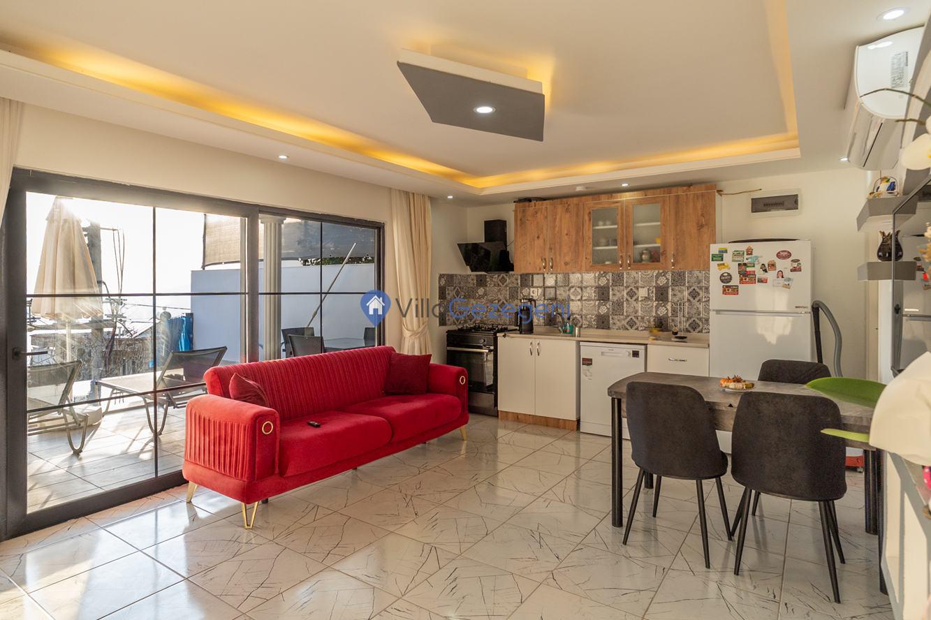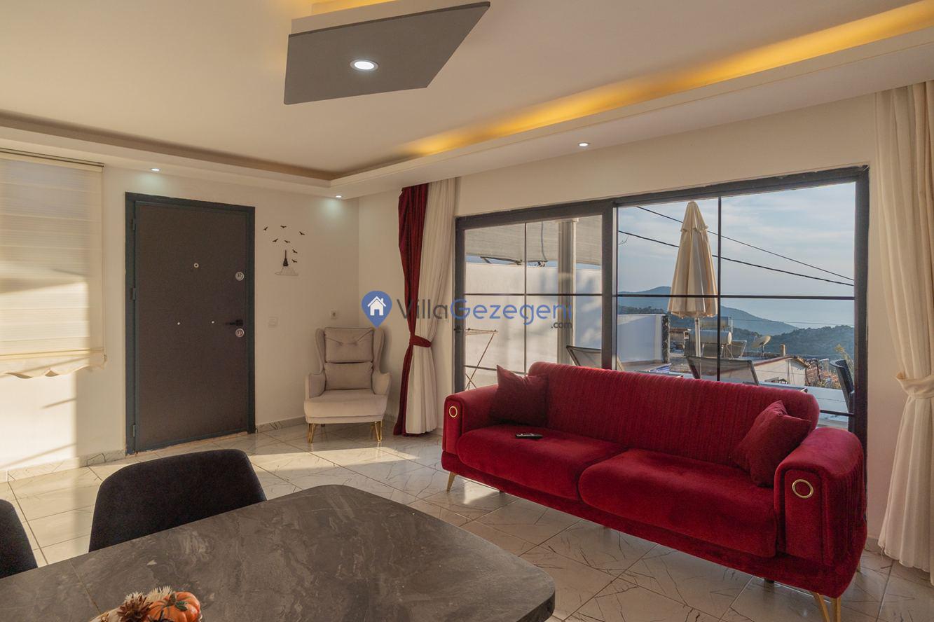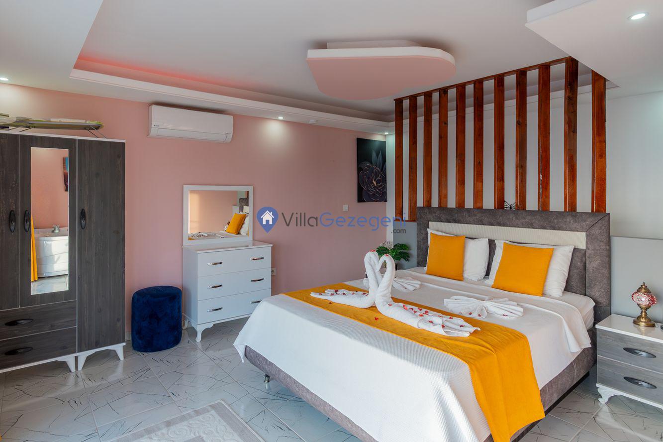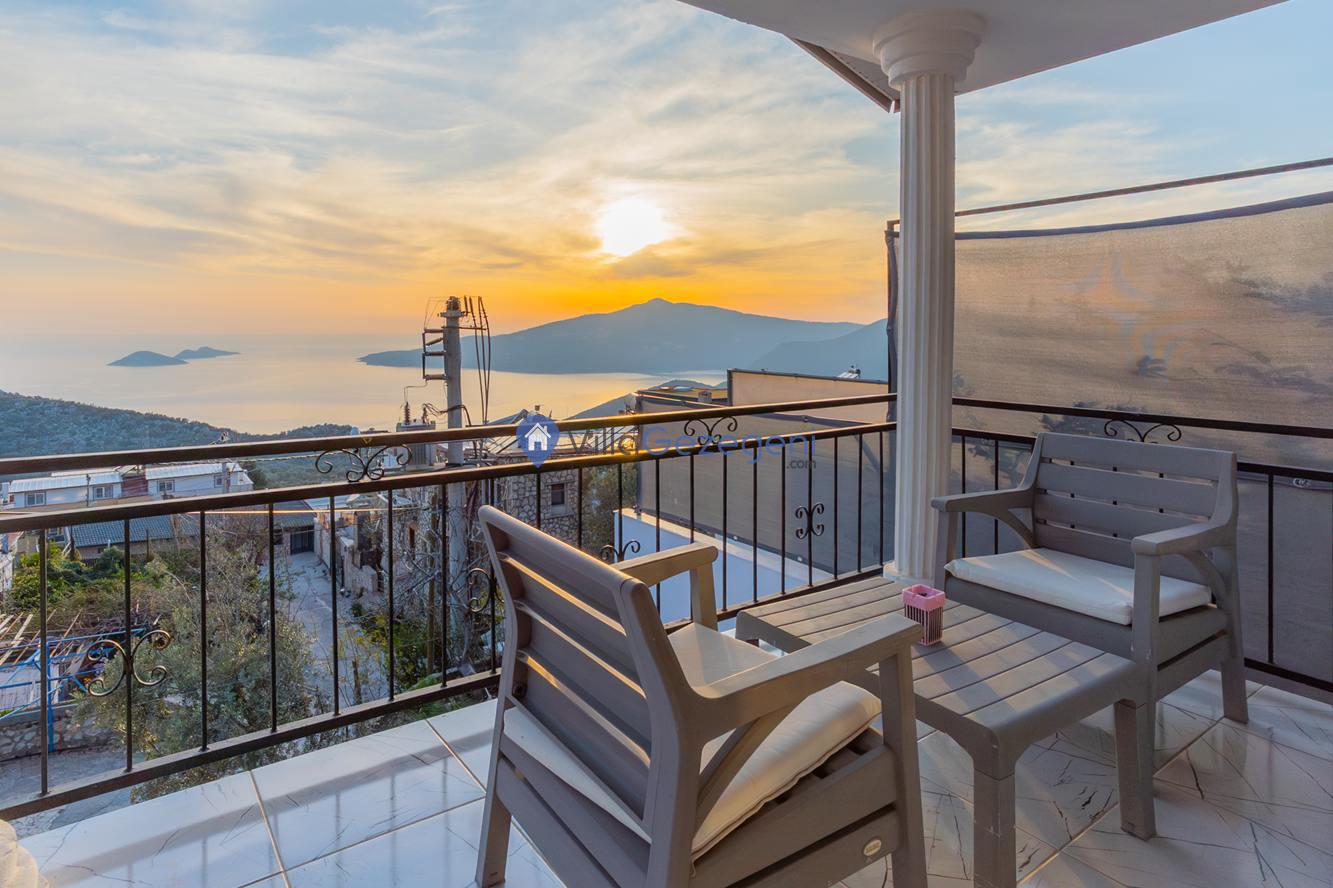 Kaş/Kalkan/Kördere Bölgesinde yer alan tek yatak odalı 2 kişi kapasiteli havuzu korunaklı deniz manzaralı balayı balayı villası.