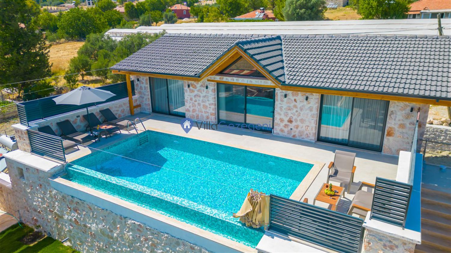 Villa Pilot, Kalkan Sarıbelen'de 4 kişilik, çift jakuzili, lüks tasarımlı, doğa içinde, dışarıdan görülmeyen kiralık muhafazakar aile ve balayı villası.