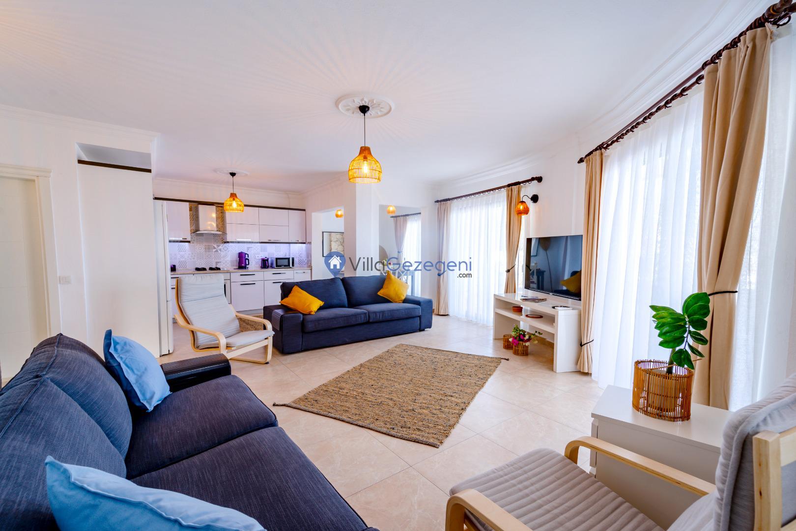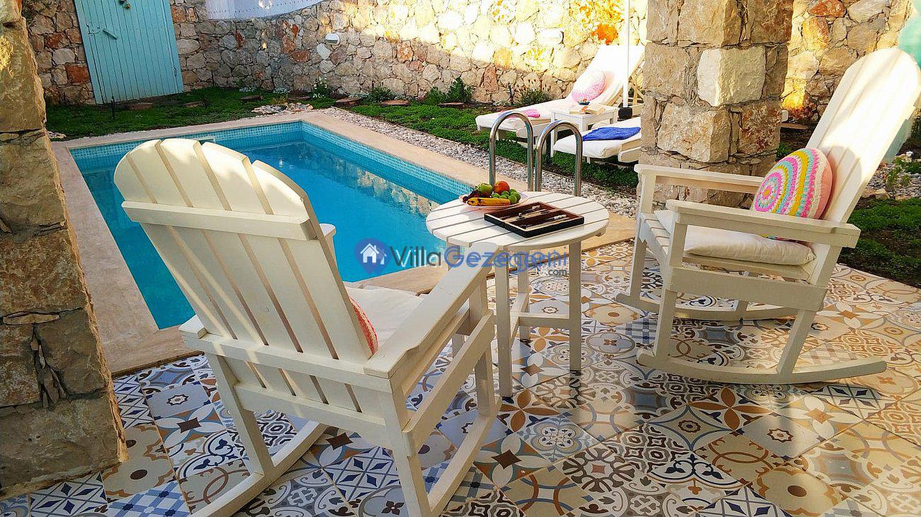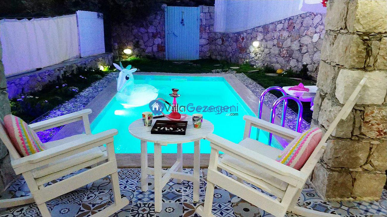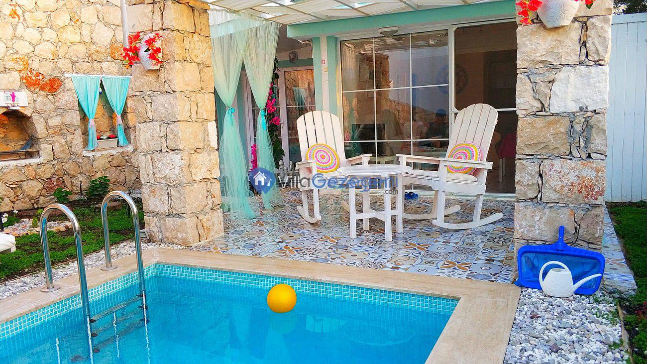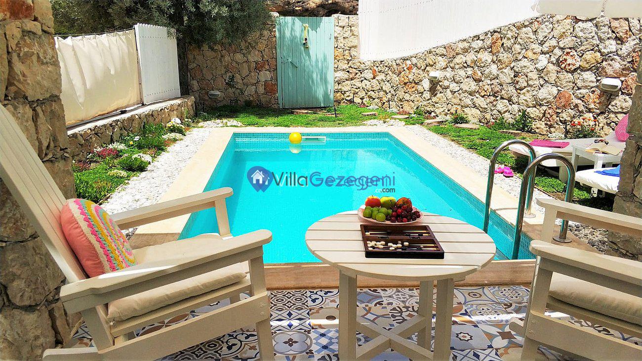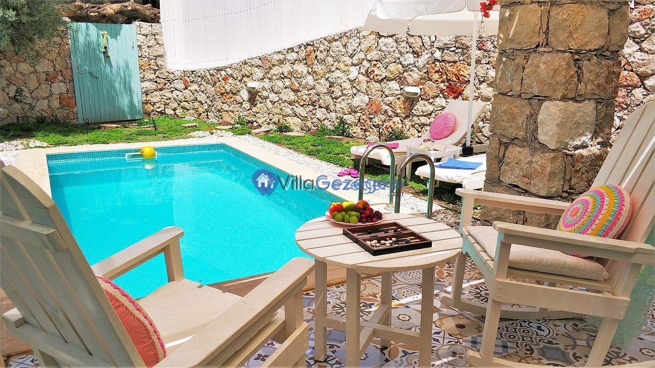 Kalkan Akbel bölgesinde yer alan 2 yatak odalı 4 kişilik kiralık balayı villası