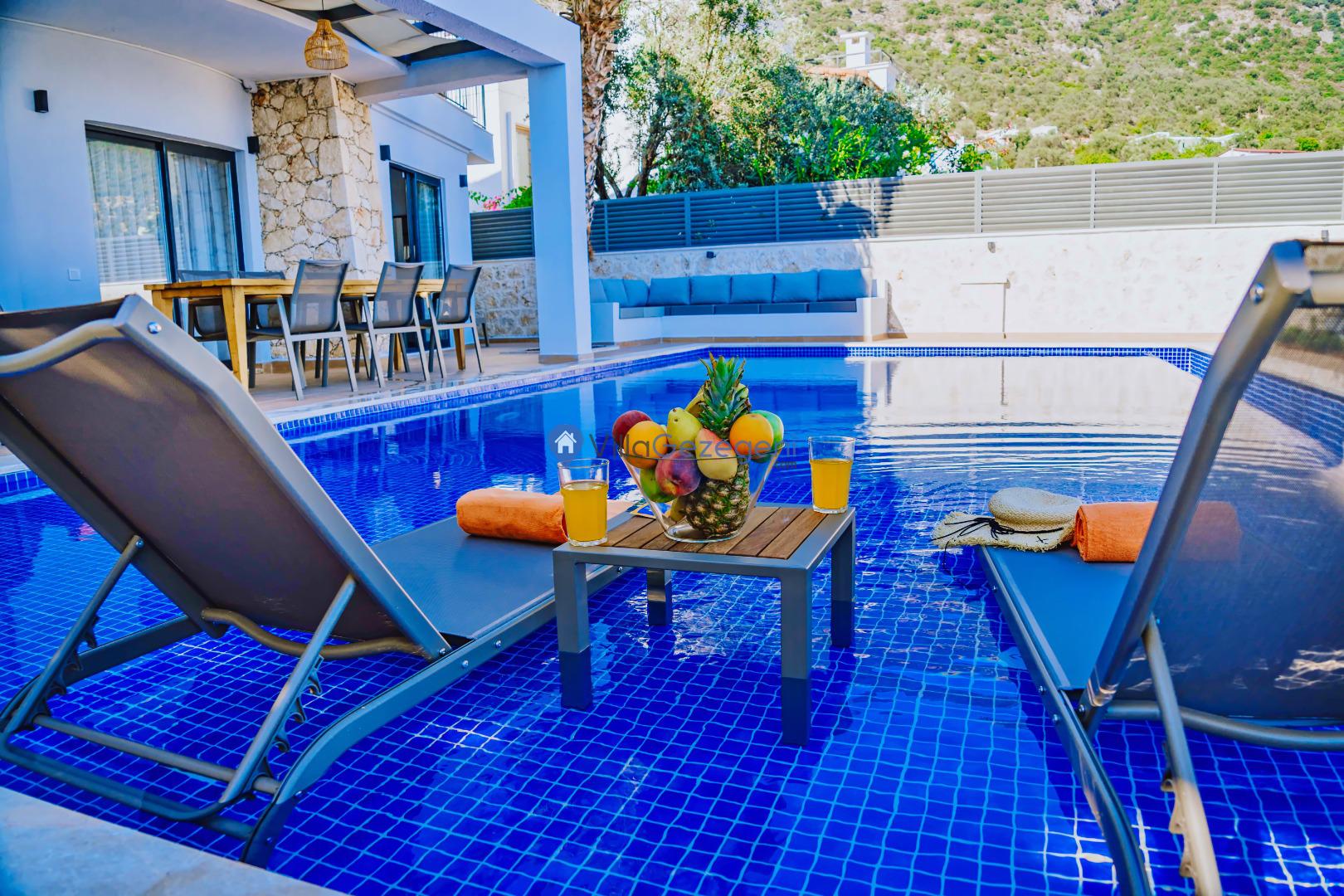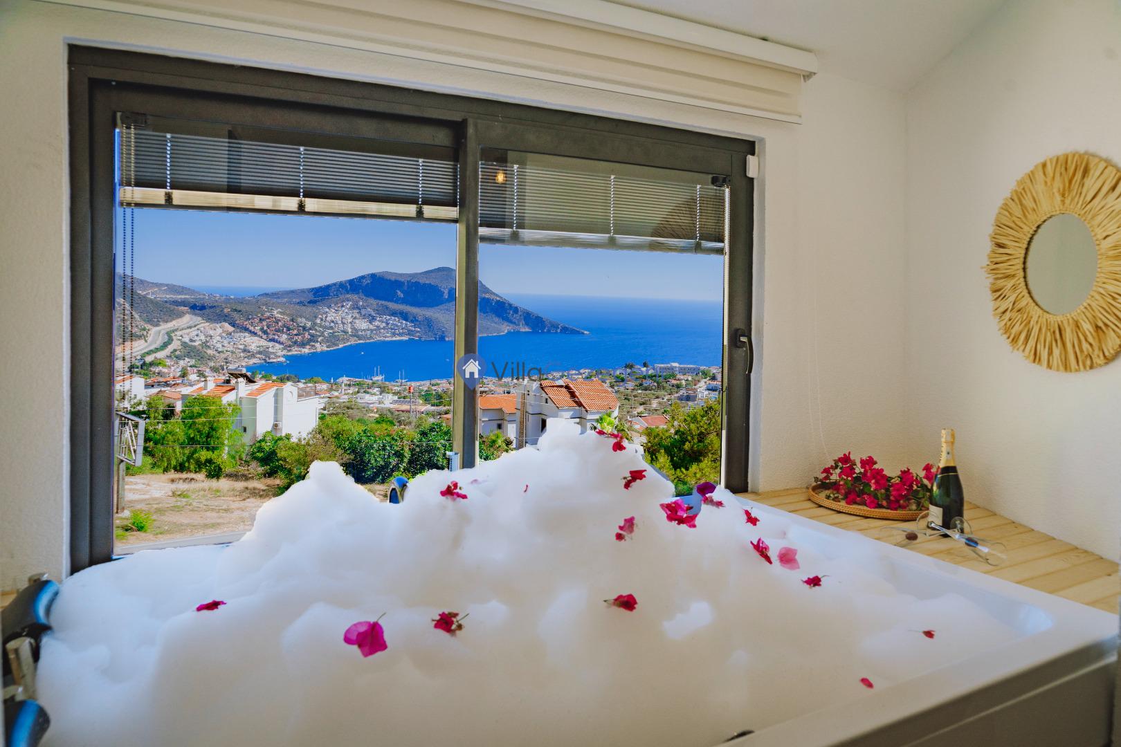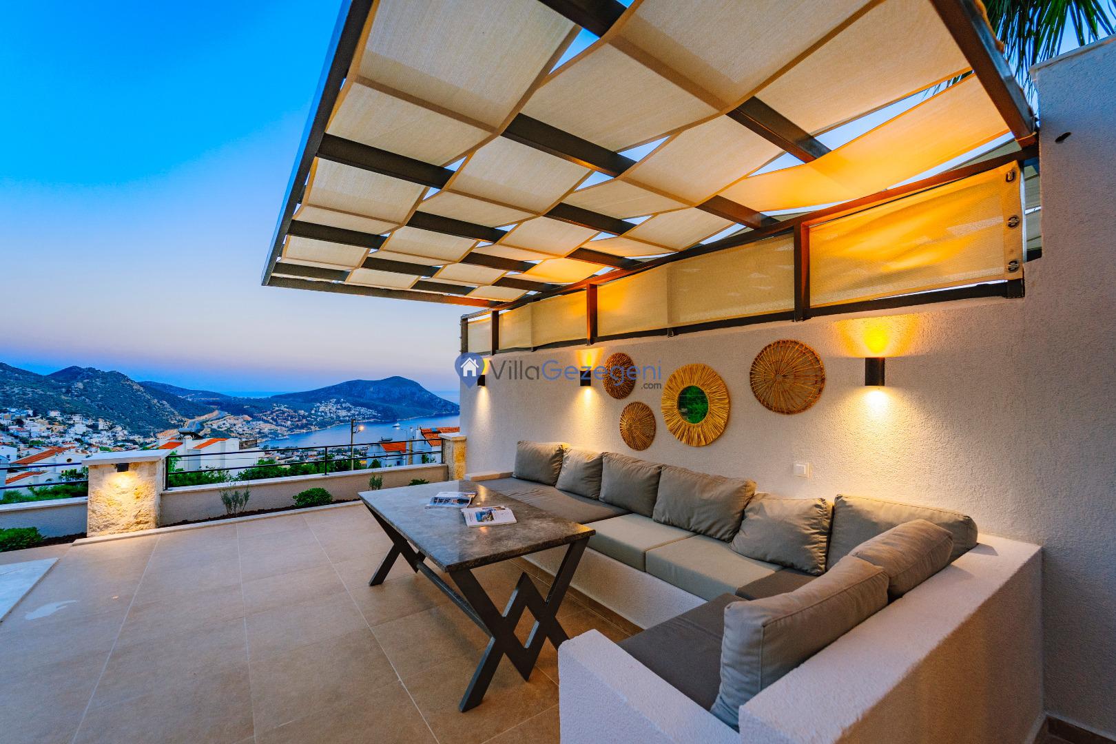 Villa Samui, Kalkan Akbel bölgesinde 6 kişilik, deniz manzaralı, jakuzili, salıncaklı, merkeze yakın, muhafazakar, kalabalık gruplara uygun kiralık villa.