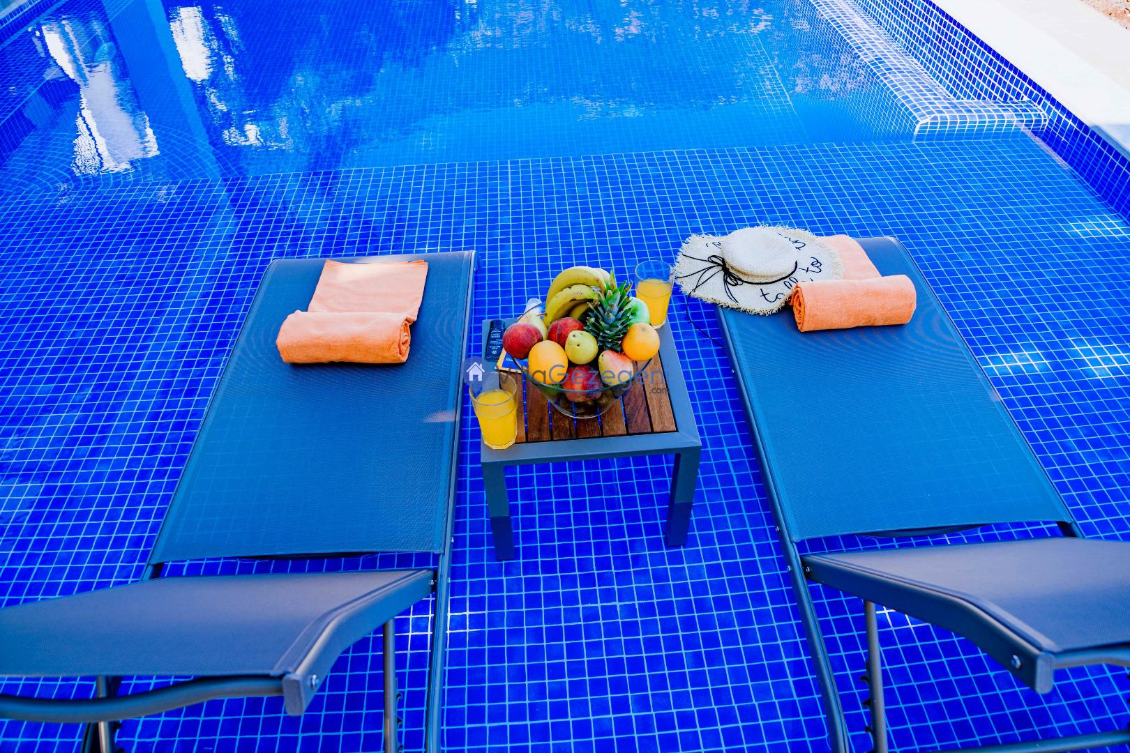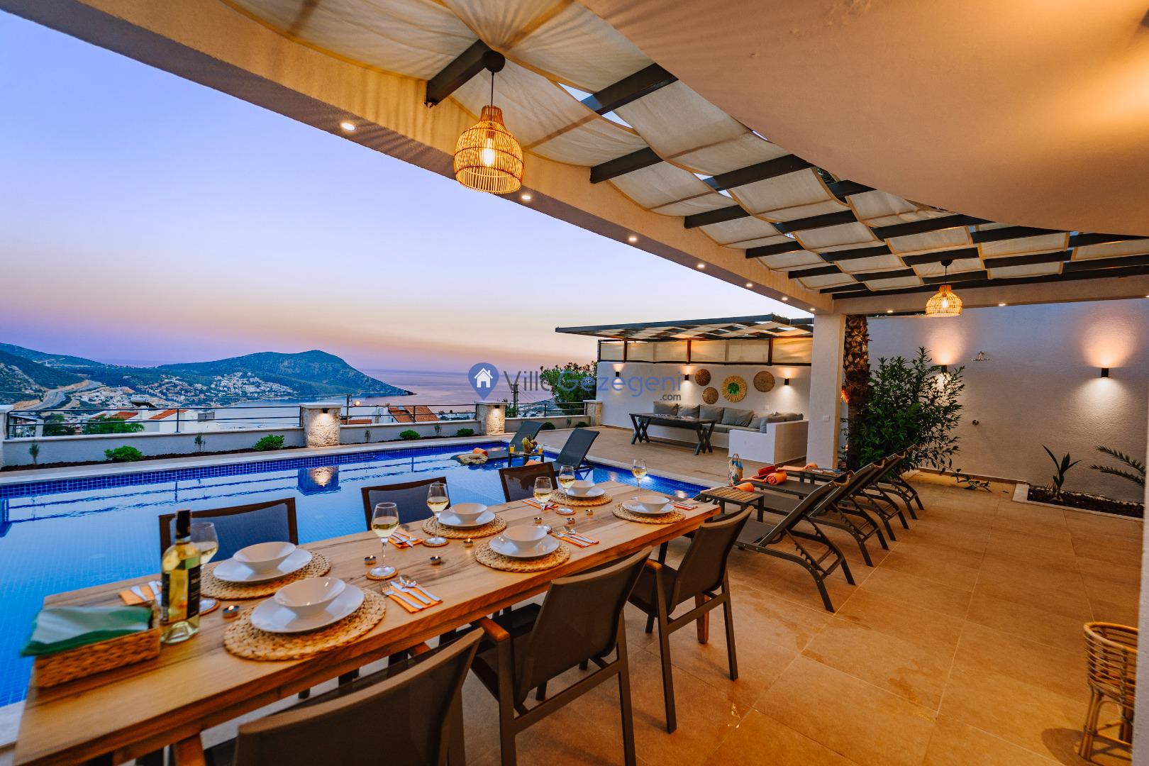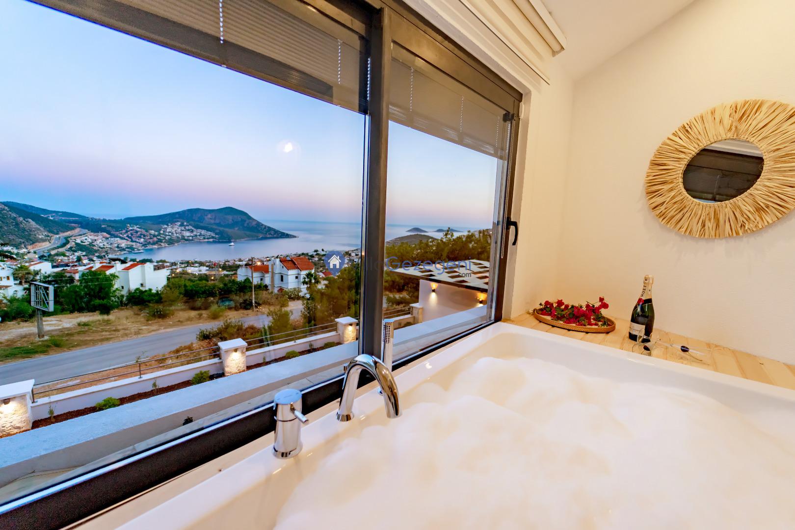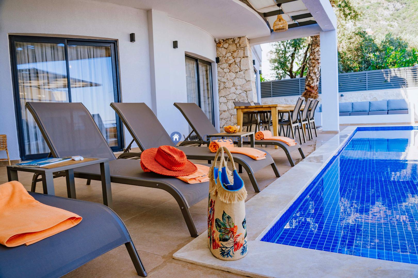 Villa Samui, Kalkan Akbel bölgesinde 6 kişilik, deniz manzaralı, jakuzili, salıncaklı, merkeze yakın, muhafazakar, kalabalık gruplara uygun kiralık villa.