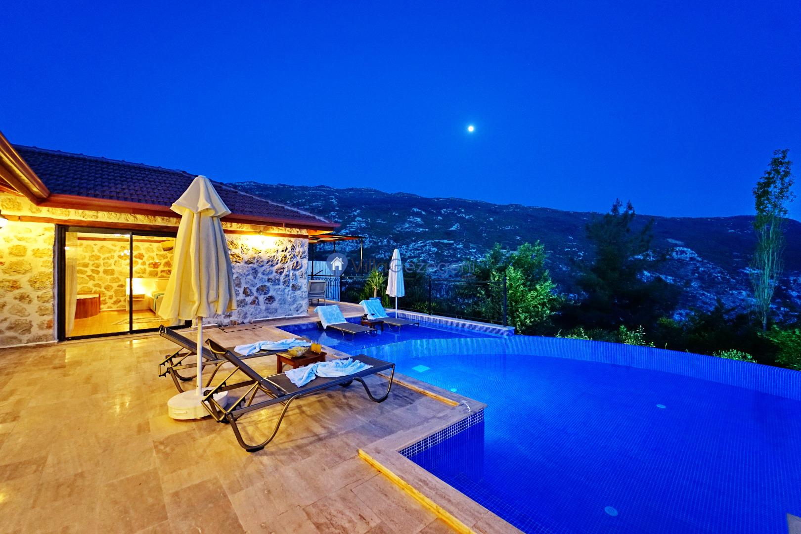 Kalkan İslamlar bölgesinde yer alan 6 kişi kapasiteli, geniş aile ve arkadaş grupları için uygun doğa manzaralı villalarımız arasında yer almaktadır.