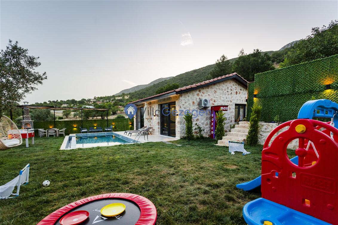 Villamızın genel konsept ve özelliklerinden tekrar bahsedecek olursak; villamızın 1 adet müstakil özel havuzu bulunmaktadır. Ortalama bir bahçeye sahip olan villamız rahatlığı ön planda tutan 2 adet yatak odası,3 yatak,2 banyo, hareket alanı geniş bir mutfak ve 4 kişinin geniş aralıklarla rahatlıkla oturabileceği koltuklara sahip salonu bulunmaktadır.