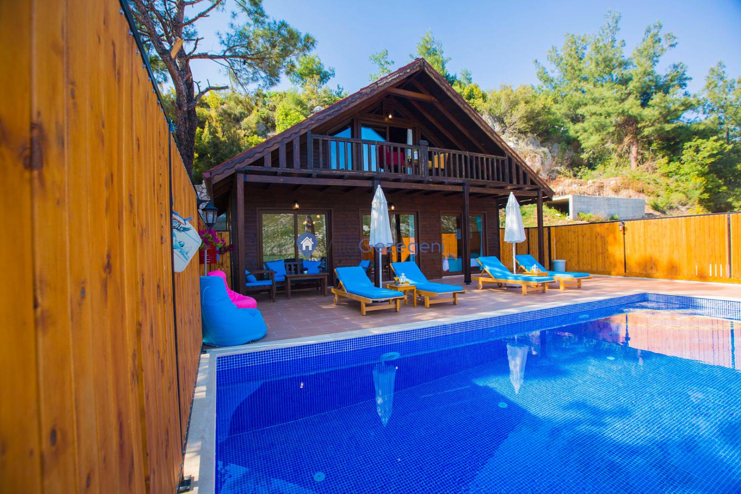 Balayı çiftleri için özel tasarlanmış,havuz terası korunaklı kiralık villa