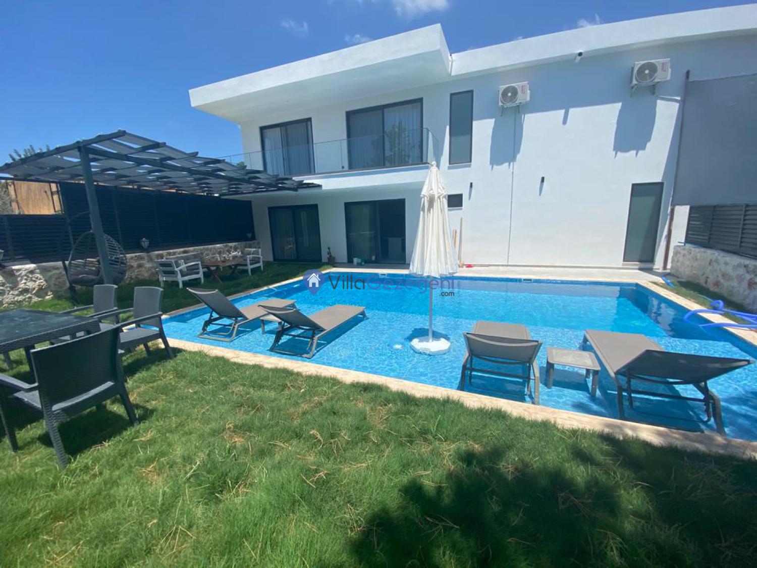 Villamızın genel konsept ve özelliklerinden tekrar bahsedecek olursak; villamızın 1 adet müstakil özel havuzu bulunmaktadır. Ortalama bir bahçeye sahip olan villamız rahatlığı ön planda tutan 2 adet yatak odası,2 yatak,2 banyo, hareket alanı geniş bir mutfak ve 4 kişinin geniş aralıklarla rahatlıkla oturabileceği koltuklara sahip salonu bulunmaktadır.