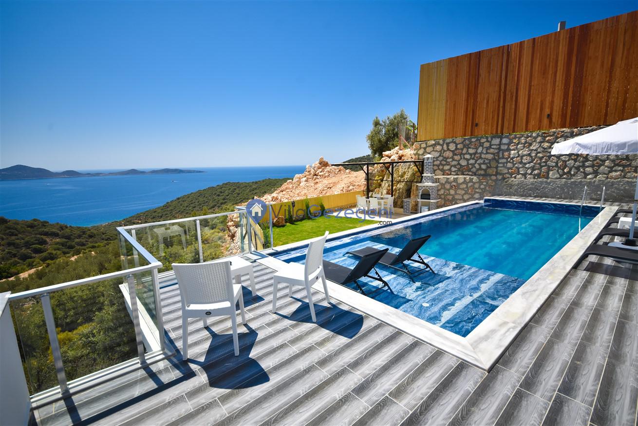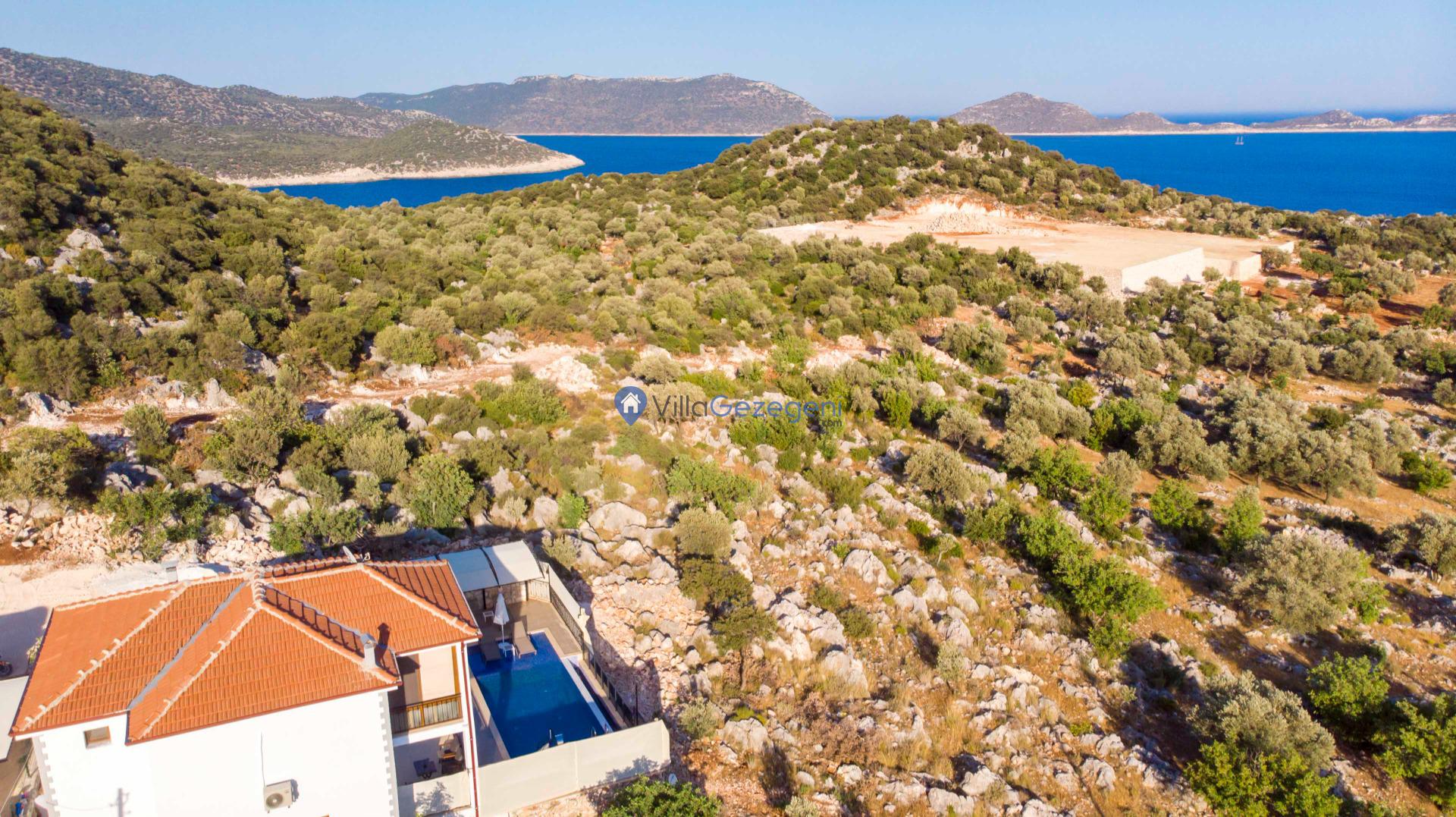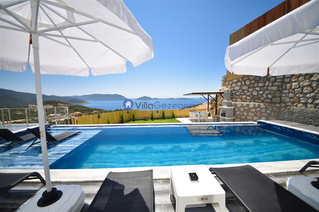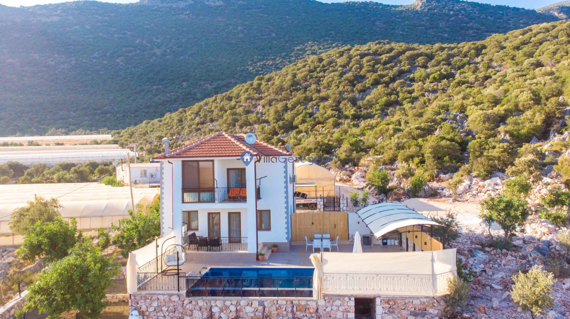 Kaş Belenli bölgesinde yer alan 4 yatak odalı 8 kişilik deniz manzaralı,doğa içerisinde Geniş Aile ve Arkadaş Grupları İçin kiralık villası.