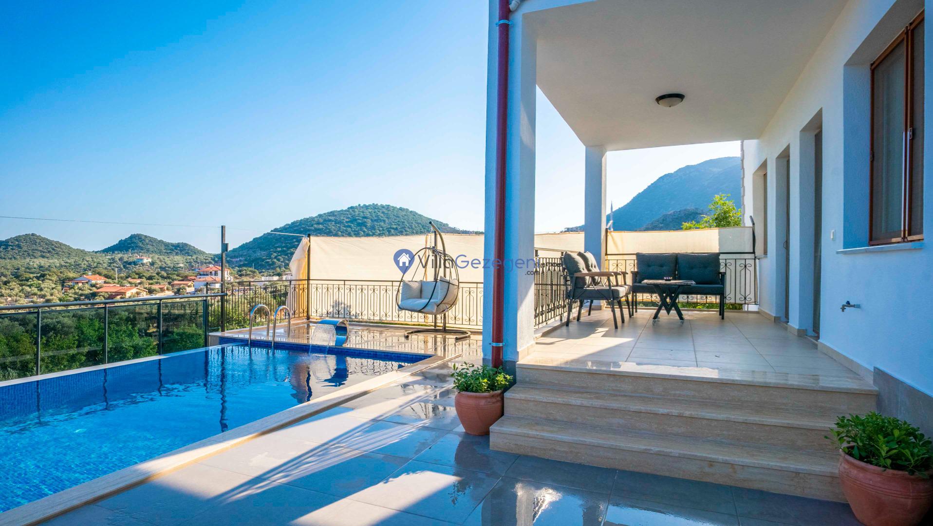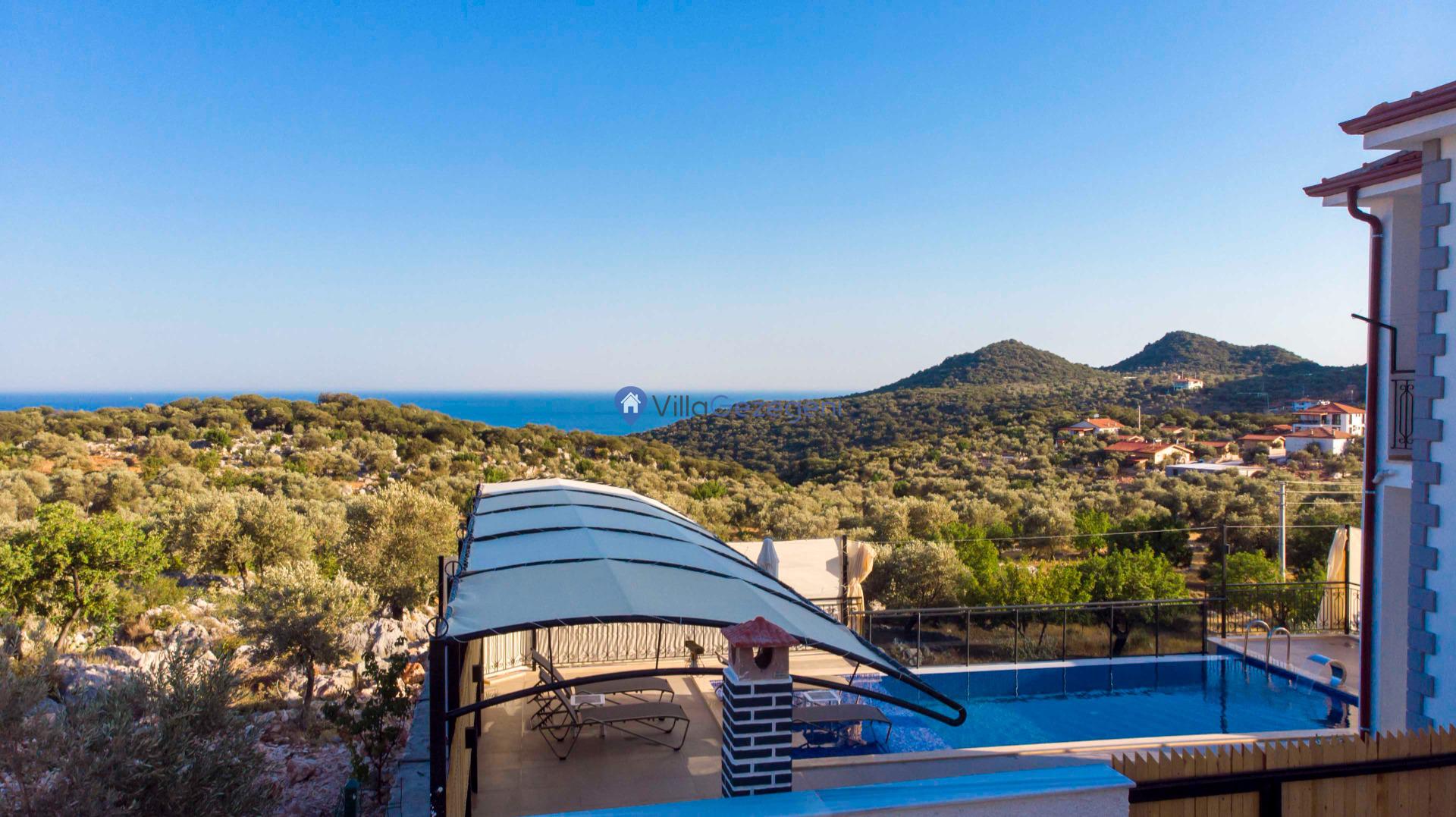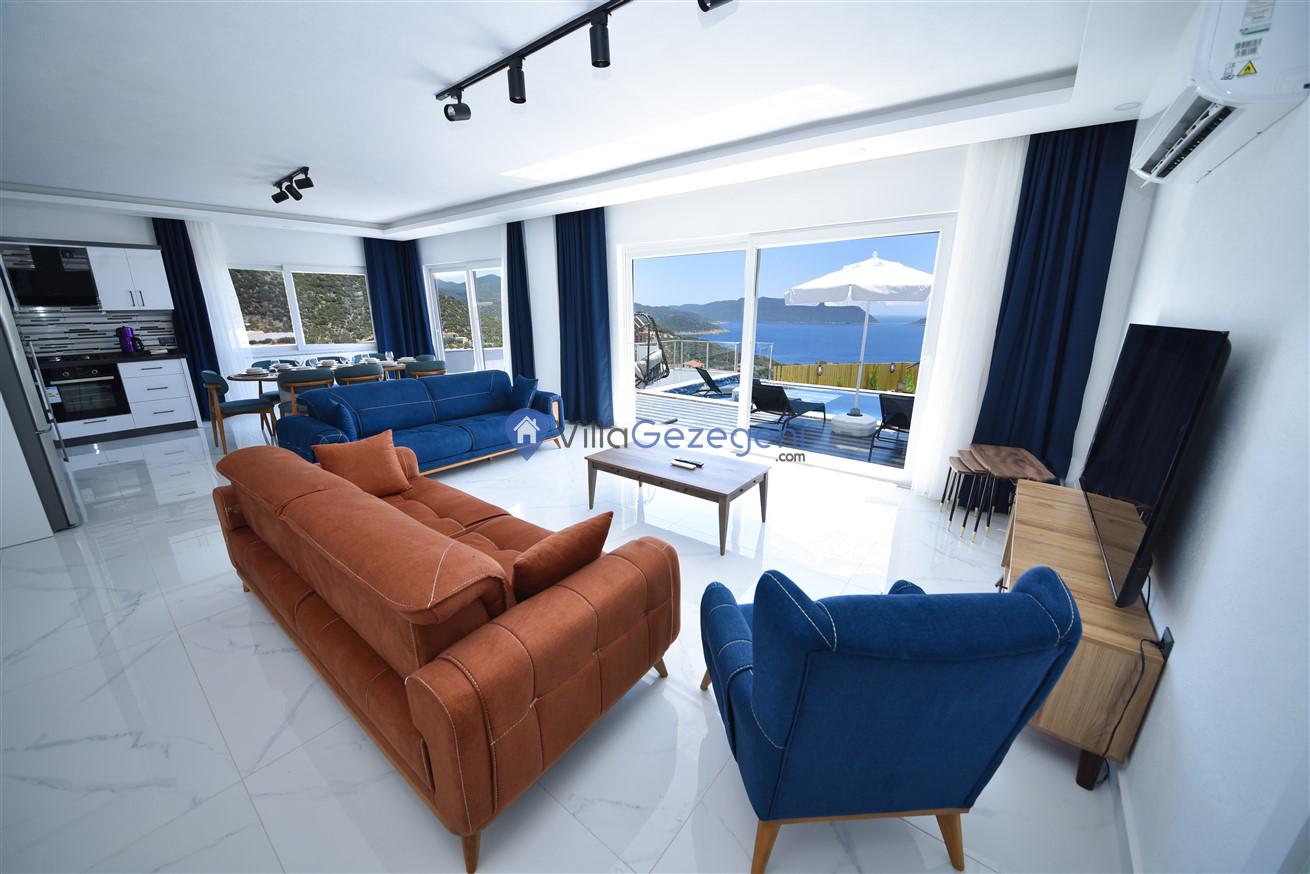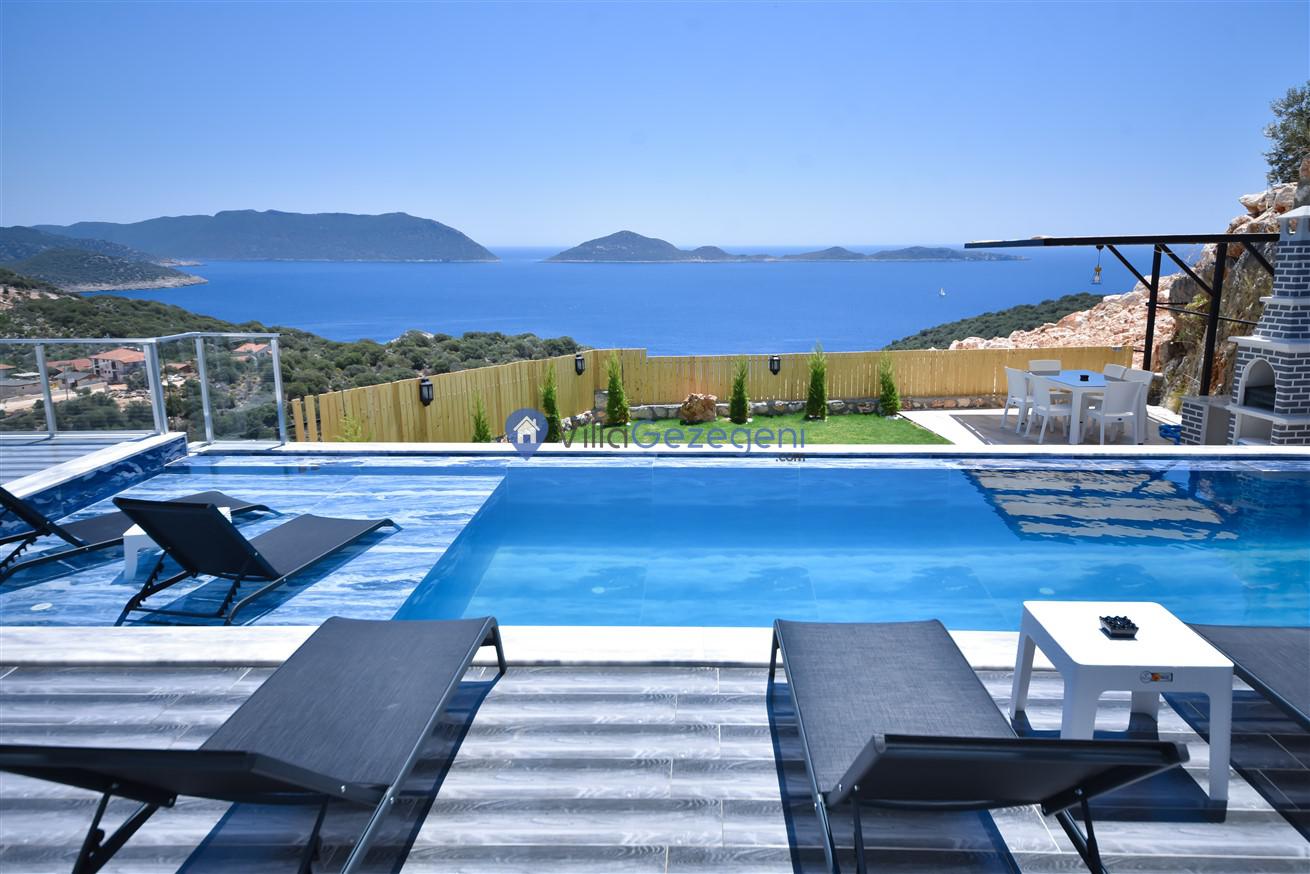 Kaş Belenli bölgesinde yer alan 4 yatak odalı 8 kişilik deniz manzaralı,doğa içerisinde Geniş Aile ve Arkadaş Grupları İçin kiralık villası.