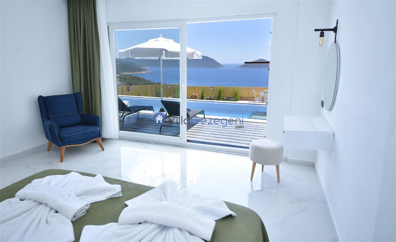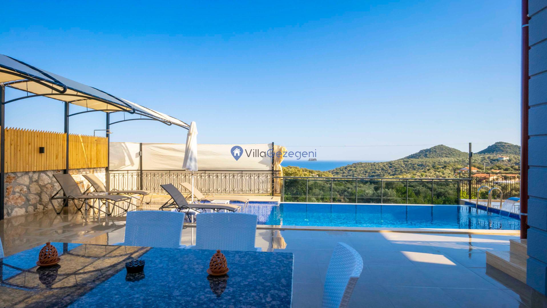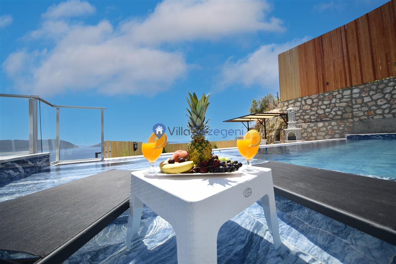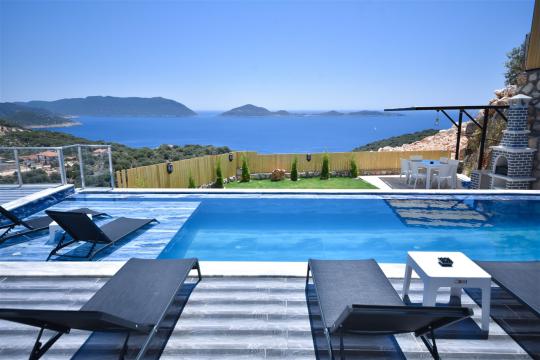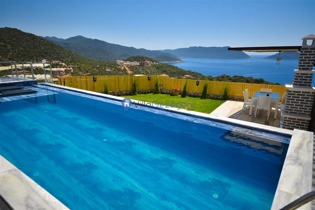 Kaş Belenli bölgesinde yer alan 4 yatak odalı 8 kişilik deniz manzaralı,doğa içerisinde Geniş Aile ve Arkadaş Grupları İçin kiralık villası.