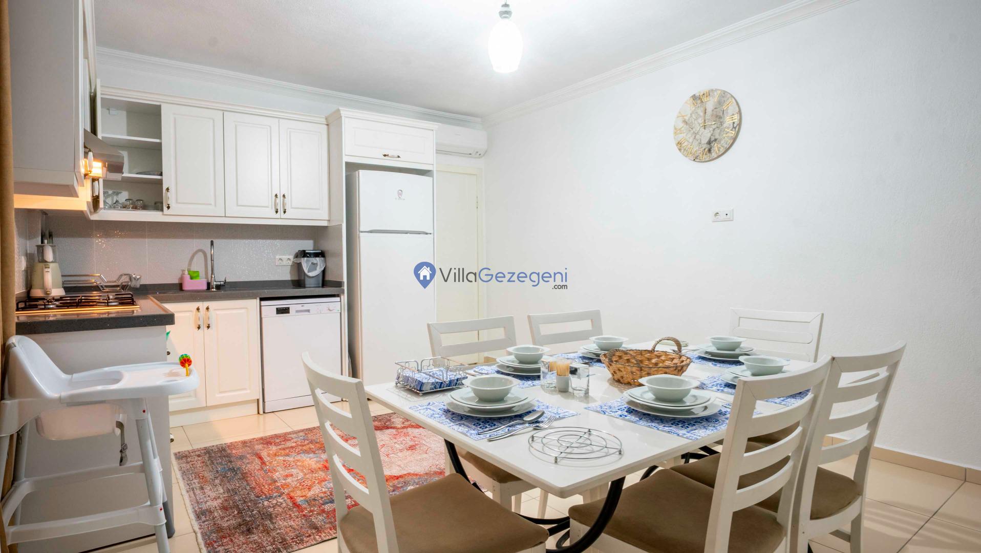 Villamız günlük hayatta sık kullanılan; Mikrodalga fırın, ankastre fırın, buzdolabı, çamaşır makinası, bulaşık makinesi, elektrikli su ısıtıcı kettle, ankastre 4’lü ocak, 4 kişilik yemek takımı, kaşık ve çatal takımı, tencere ve tava takımı, bardaklar yer almaktadır. İhtiyacınız durumunda villamızda bulunmayan malzemeler hakkında bizle iletişime geçebilir ve yardım isteyebilirsiniz.