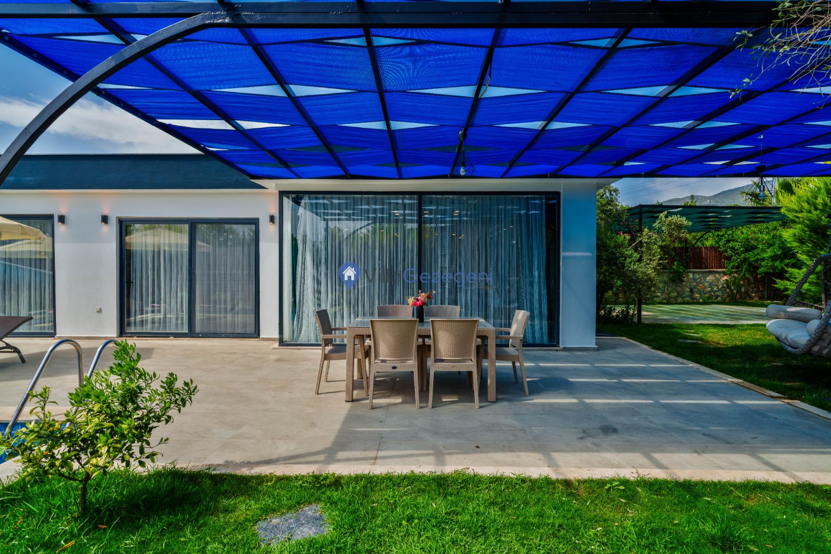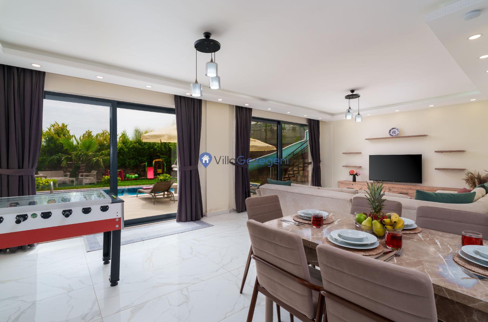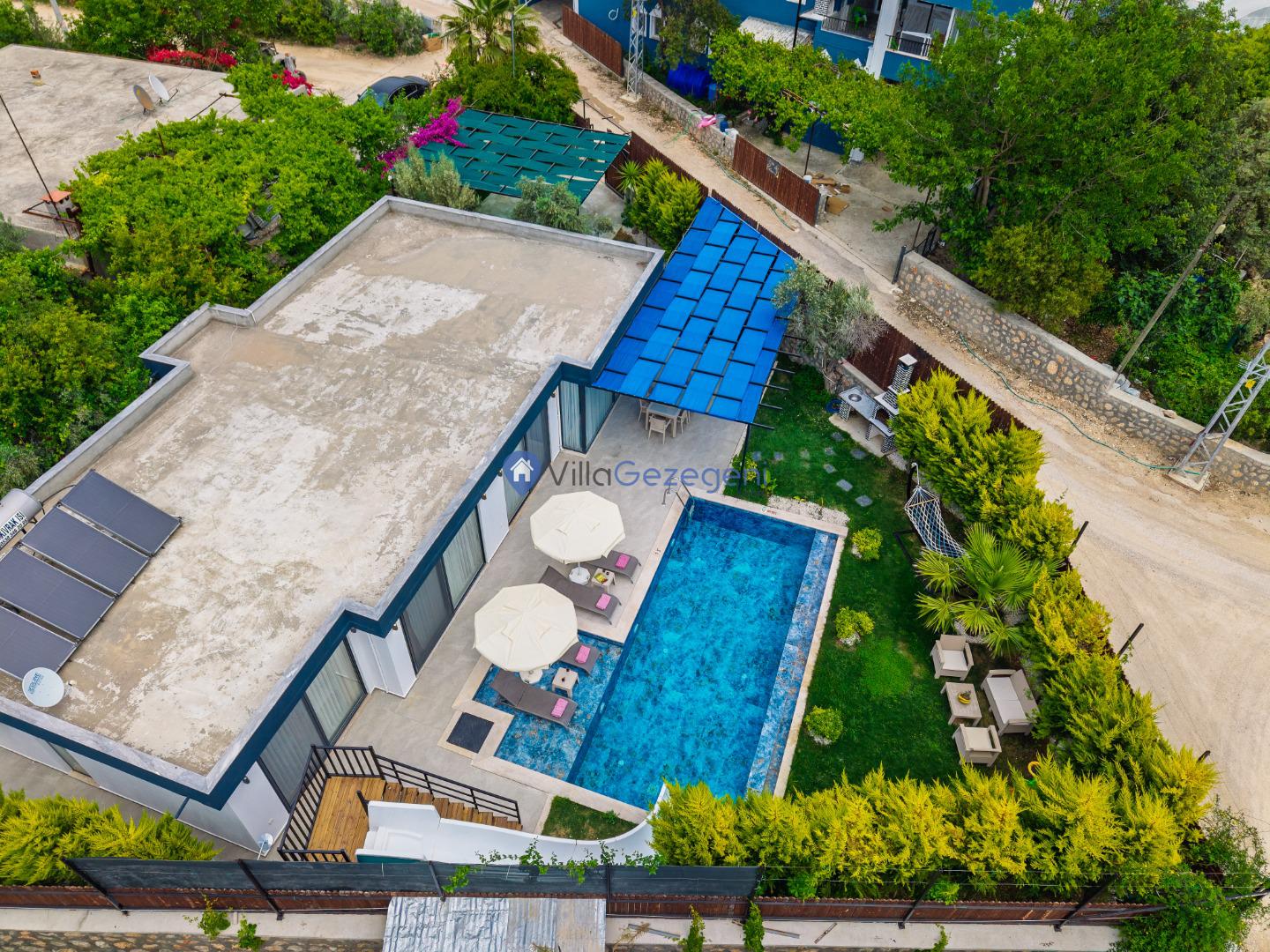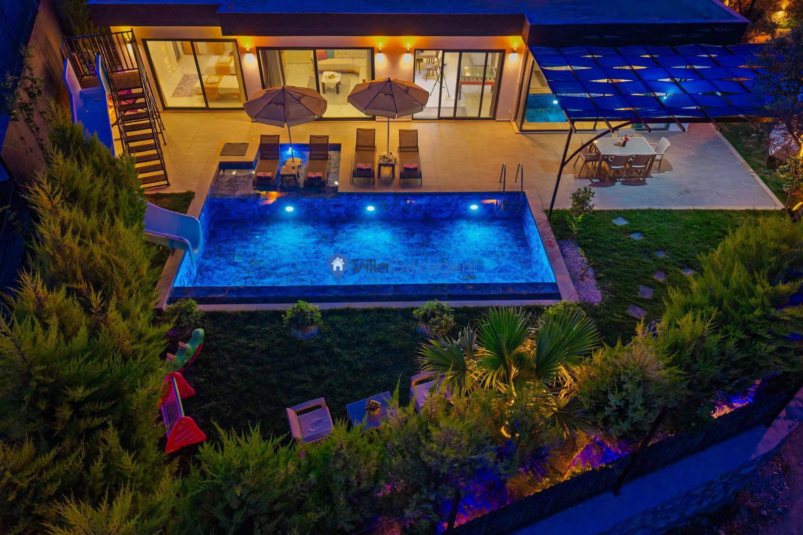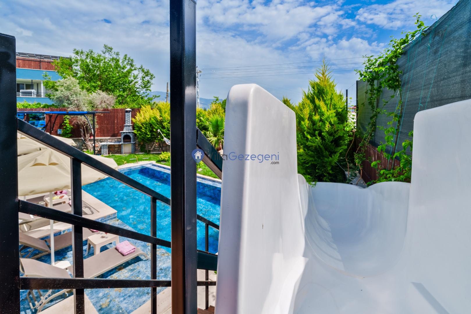 Villanın bahçesi ve havuz alanı, tatil boyunca hem eğlenmek hem de dinlenmek için mükemmel bir ortam sağlar. Geniş havuz terasında güneşlenebilir, şık bahçe mobilyalarında rahatlayabilirsiniz. Bahçedeki barbekü alanı, açık havada keyifli yemekler hazırlamanız için harika bir imkan sunar.