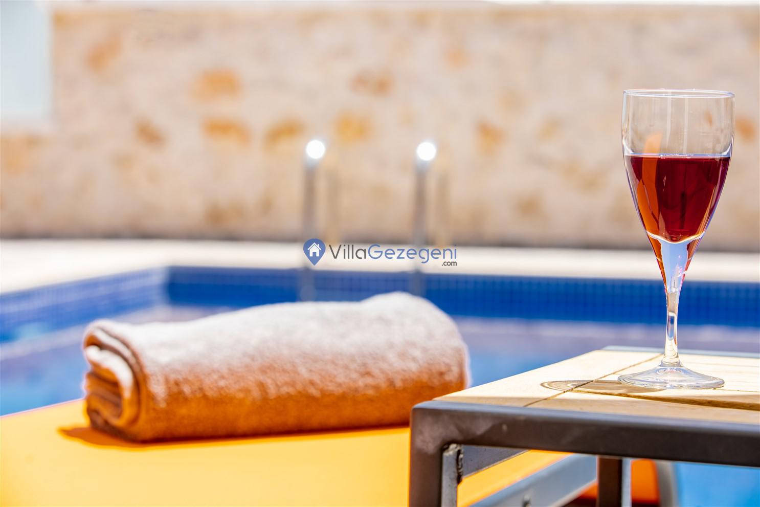 Villamızın genel konsept ve özelliklerinden tekrar bahsedecek olursak; villamızın 1 adet müstakil özel havuzu bulunmaktadır. Ortalama bir bahçeye sahip olan villamız rahatlığı ön planda tutan 3 adet yatak odası,4 yatak,3 banyo, hareket alanı geniş bir mutfak ve 6 kişinin geniş aralıklarla rahatlıkla oturabileceği koltuklara sahip salonu bulunmaktadır.