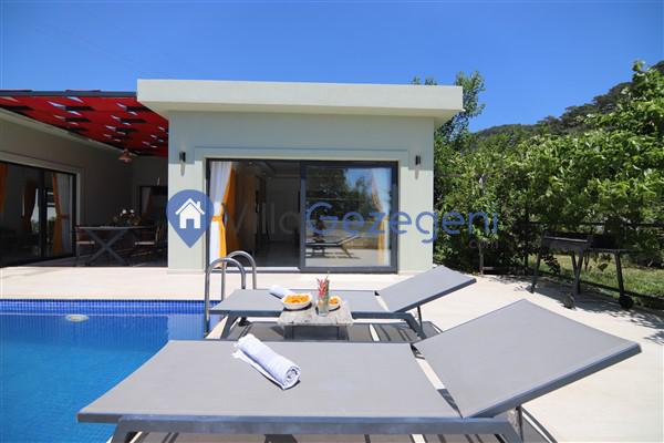 Villamızın genel konsept ve özelliklerinden tekrar bahsedecek olursak; villamızın 1 adet müstakil özel havuzu bulunmaktadır. Ortalama bir bahçeye sahip olan villamız rahatlığı ön planda tutan 2 adet yatak odası,3 yatak,2 banyo, hareket alanı geniş bir mutfak ve 4 kişinin geniş aralıklarla rahatlıkla oturabileceği koltuklara sahip salonu bulunmaktadır.