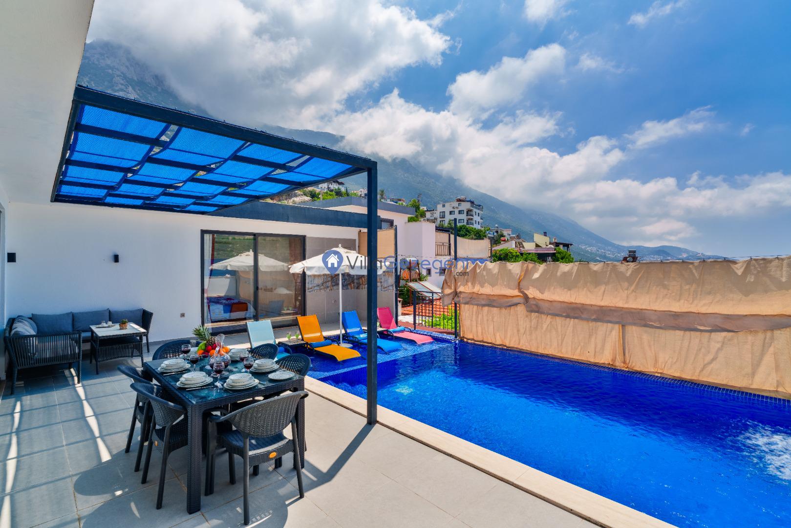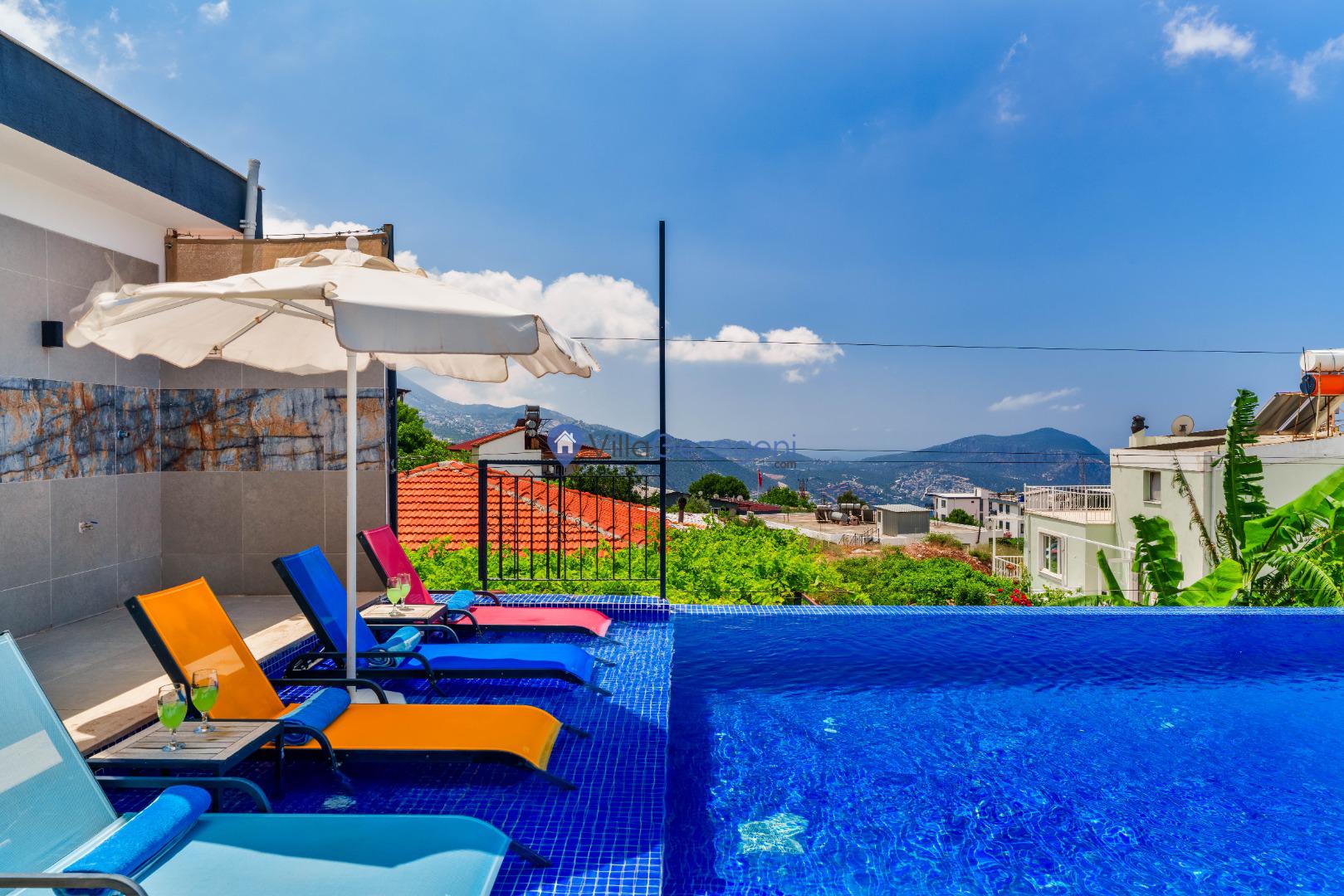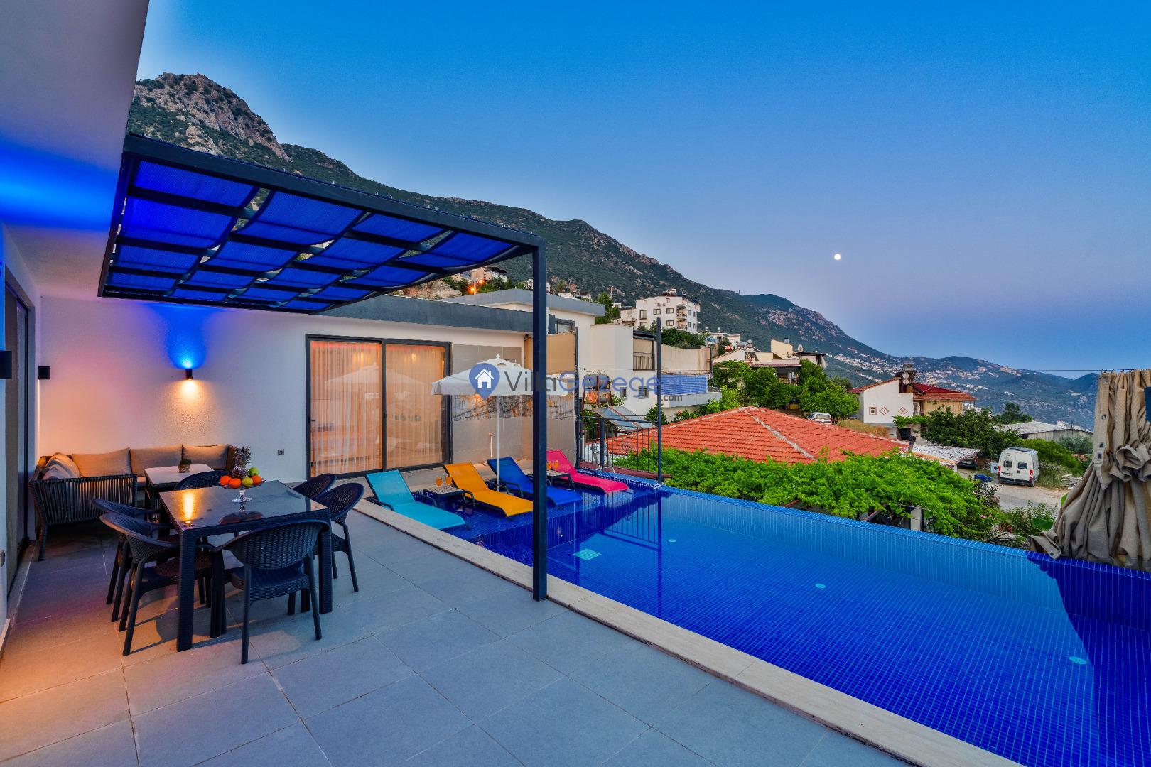 Villa Akdağ Yakut, Kalkan'ın Akbel'de 10 kişi kapasiteli, lüks tasarımlı, kalabalık gruplara uygun deniz manzaralı villalarımız arasında yer almaktadır.