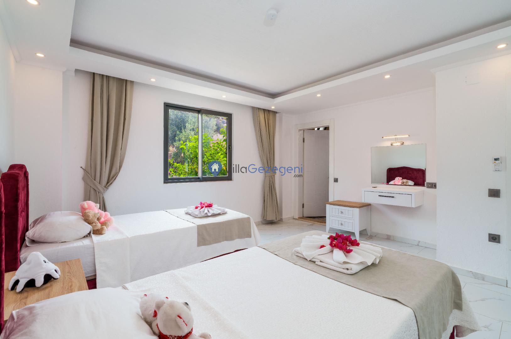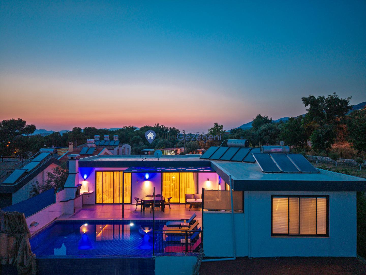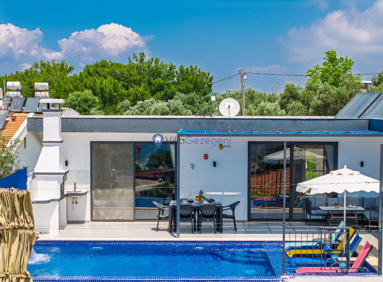 Villamızın genel konsept ve özelliklerinden tekrar bahsedecek olursak; villamızın 1 adet müstakil özel havuzu bulunmaktadır. Ortalama bir bahçeye sahip olan villamız rahatlığı ön planda tutan 2 adet yatak odası,3 yatak,2 banyo, hareket alanı geniş bir mutfak ve 4 kişinin geniş aralıklarla rahatlıkla oturabileceği koltuklara sahip salonu bulunmaktadır.
