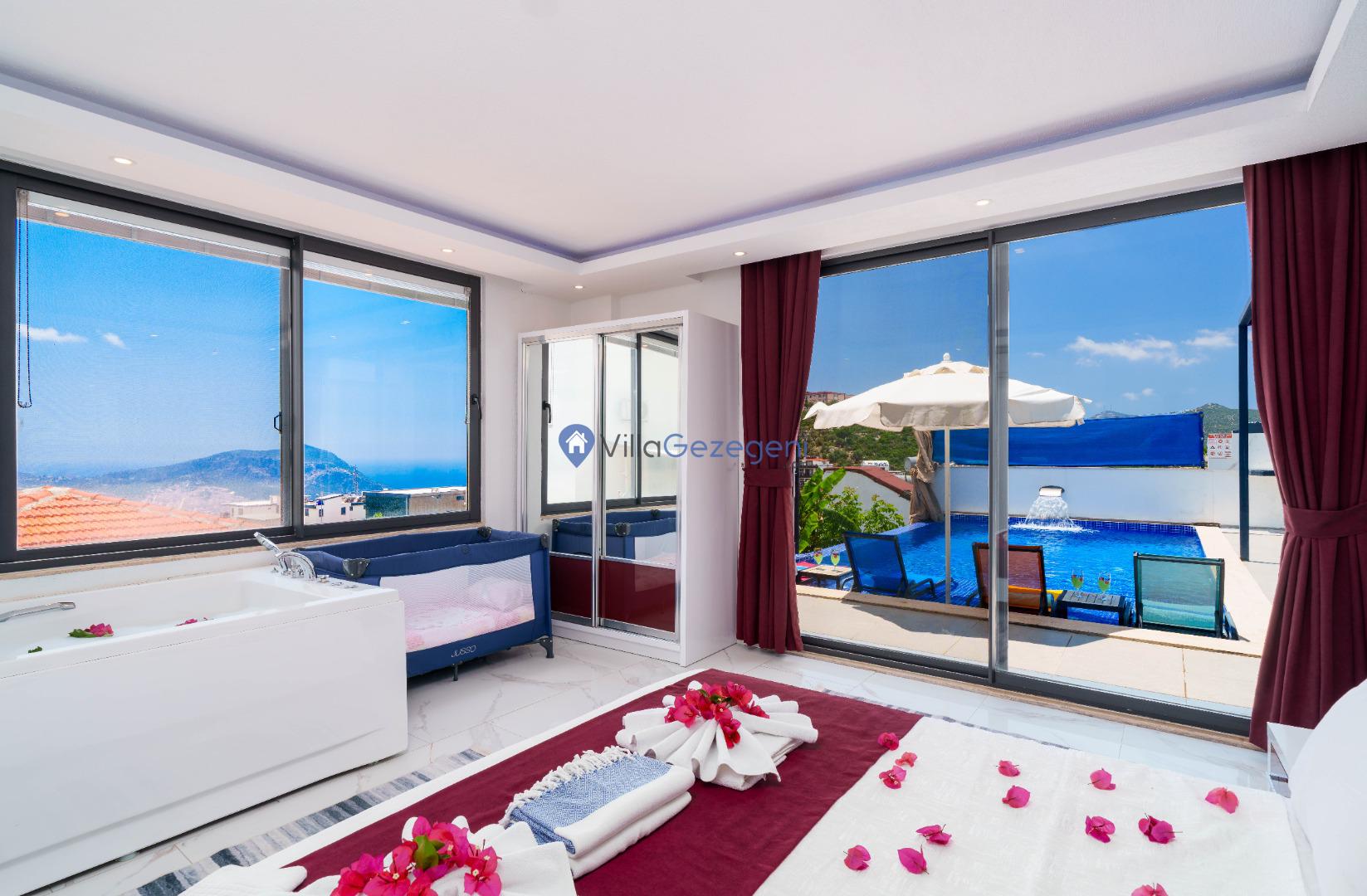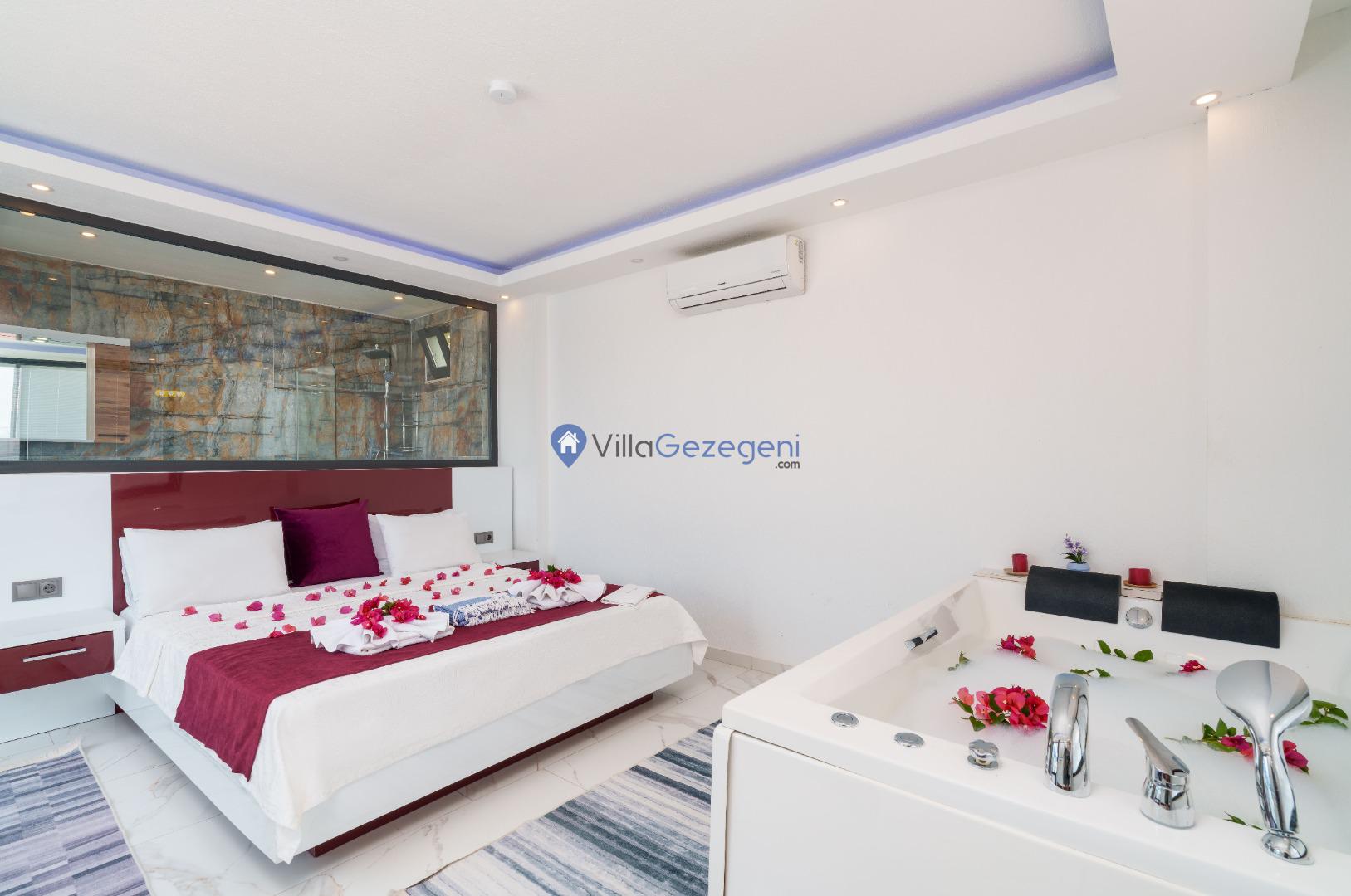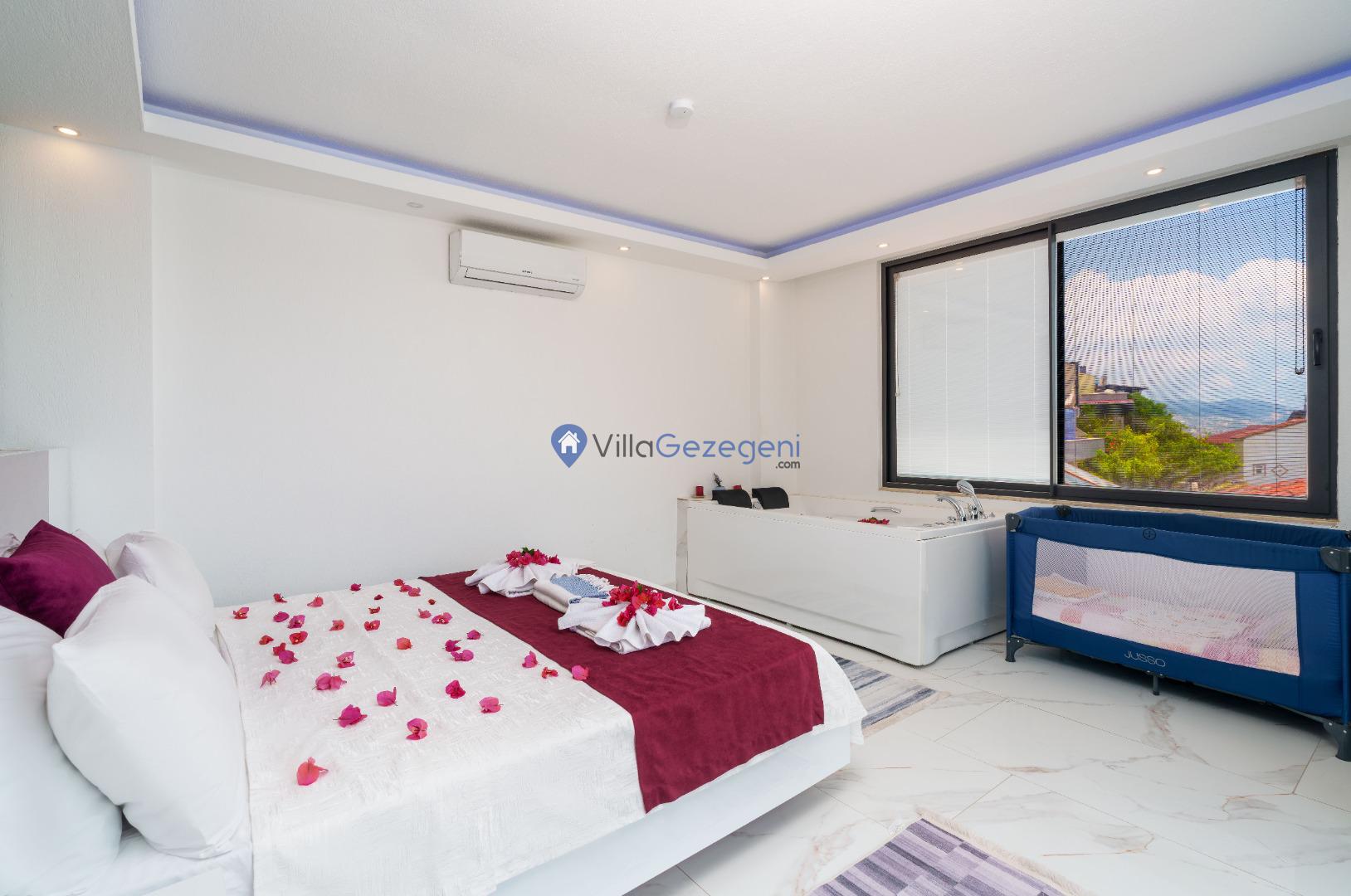 Villa White Day 2, Kalkan'ın Akbel bölgesinde 4 kişi kapasiteli, merkeze yakın, yeşil bahçe alanlı, jakuzili, balayı çiftlerine uygun kiralık villa.