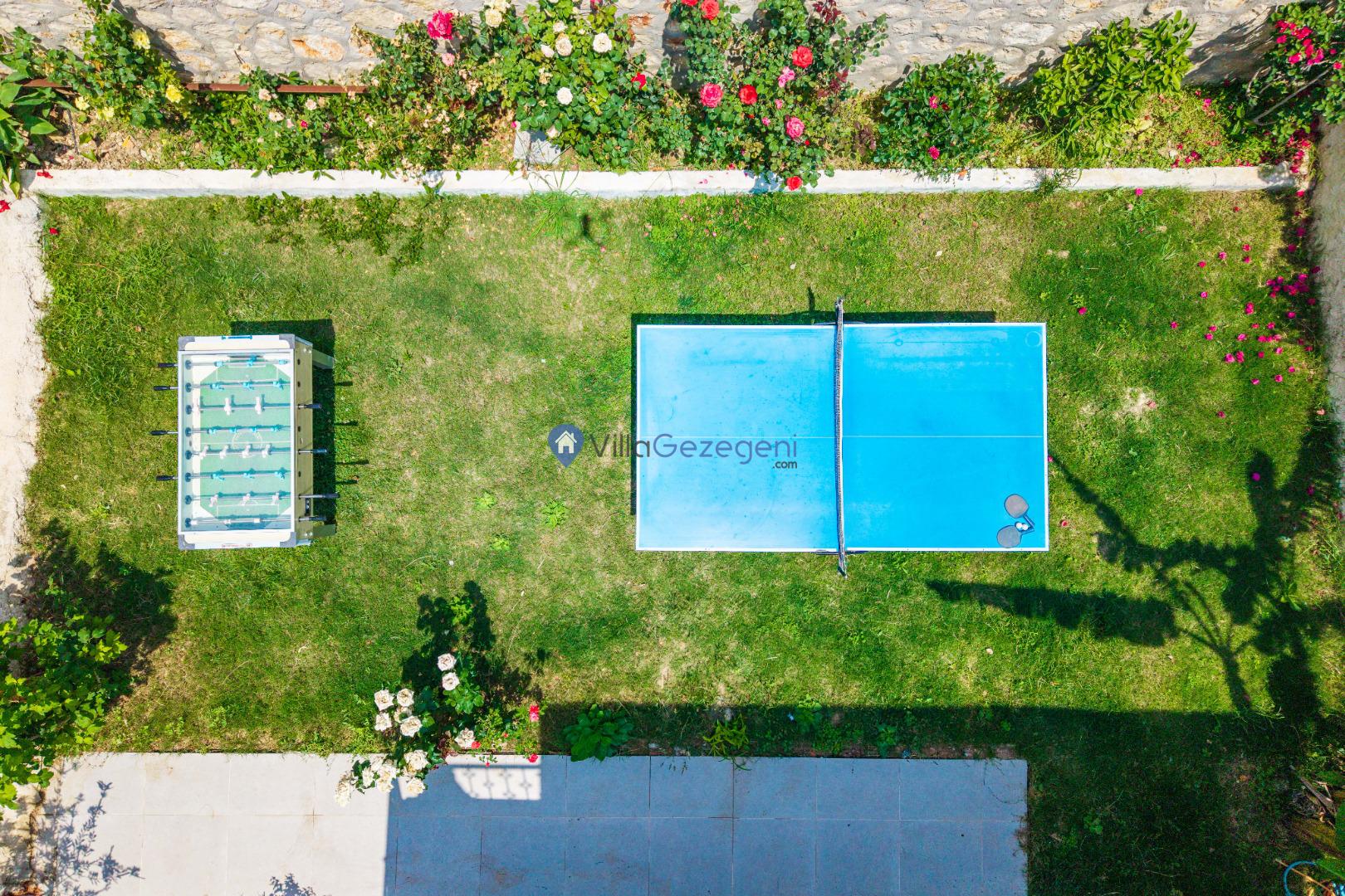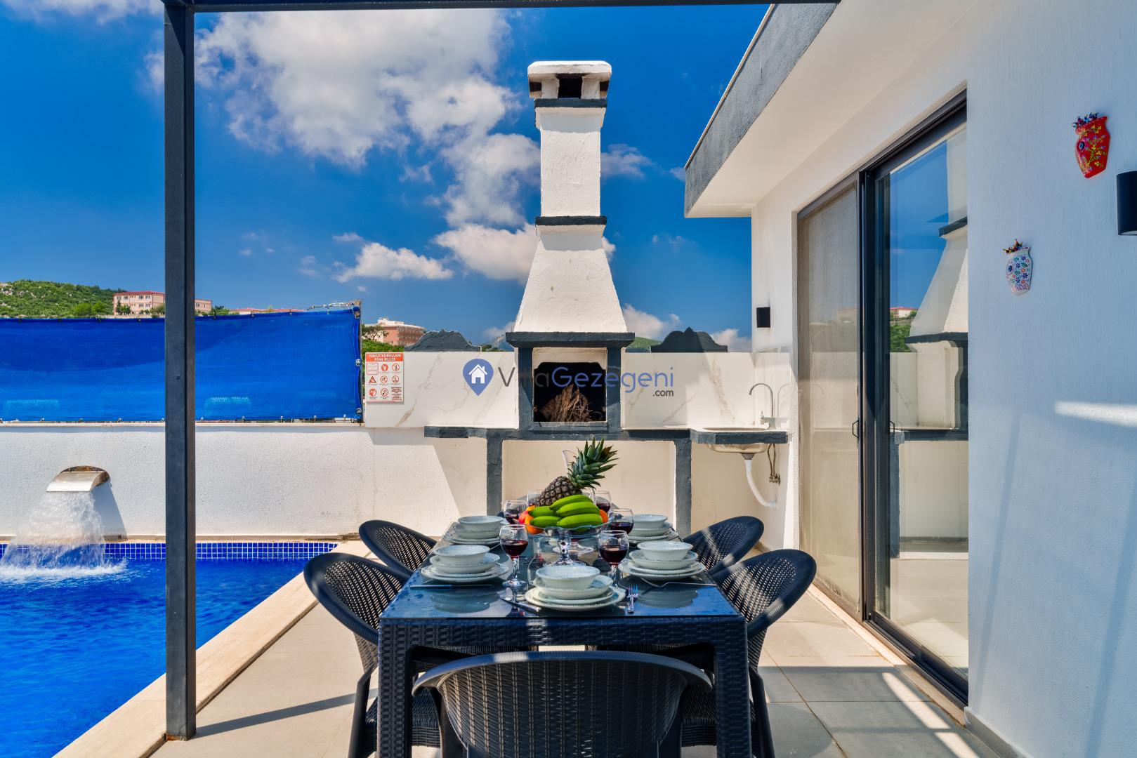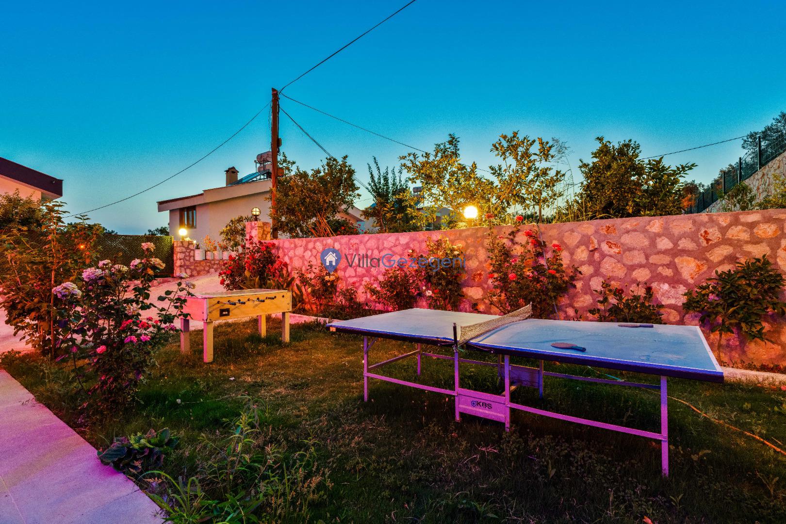Yemek masası ve rahat bahçe mobilyaları, villamızın bahçesinde sizin için hazırlandı. Bu eşsiz ortamda sevdiklerinizle unutulmaz anlar yaşama fırsatını yakalayabilirsiniz.
