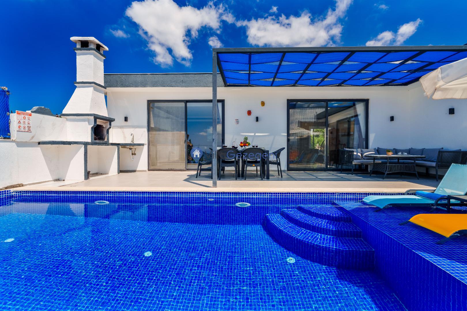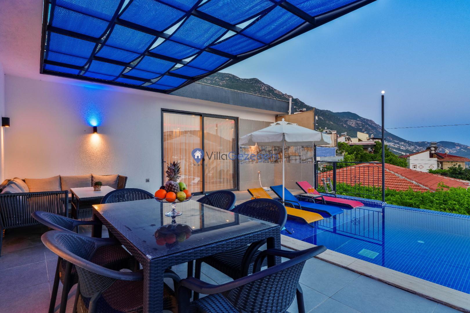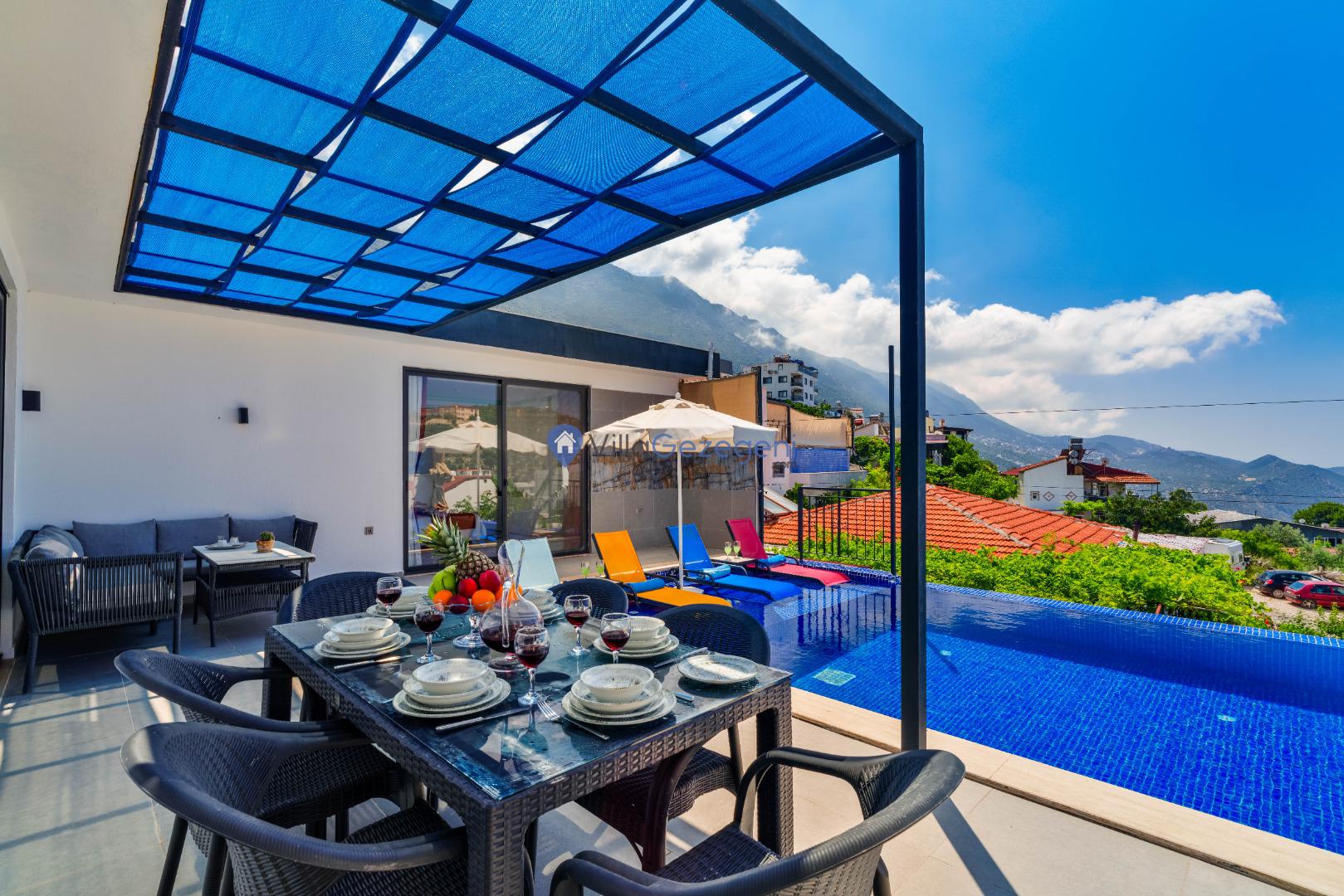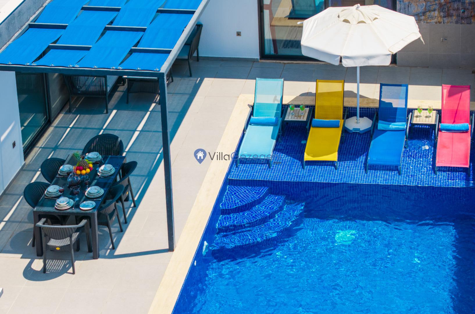 Yemek masası ve rahat bahçe mobilyaları, villamızın bahçesinde sizin için hazırlandı. Bu eşsiz ortamda sevdiklerinizle unutulmaz anlar yaşama fırsatını yakalayabilirsiniz.