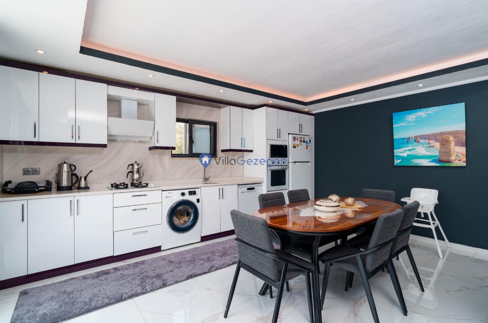 Villamız günlük hayatta sık kullanılan; Mikrodalga fırın, ankastre fırın, buzdolabı, çamaşır makinası, bulaşık makinesi, elektrikli su ısıtıcı kettle, ankastre 4’lü ocak,4 kişilik yemek takımı, kaşık ve çatal takımı, tencere ve tava takımı, bardaklar yer almaktadır. İhtiyacınız durumunda villamızda bulunmayan malzemeler hakkında bizle iletişime geçebilir ve yardım isteyebilirsiniz.