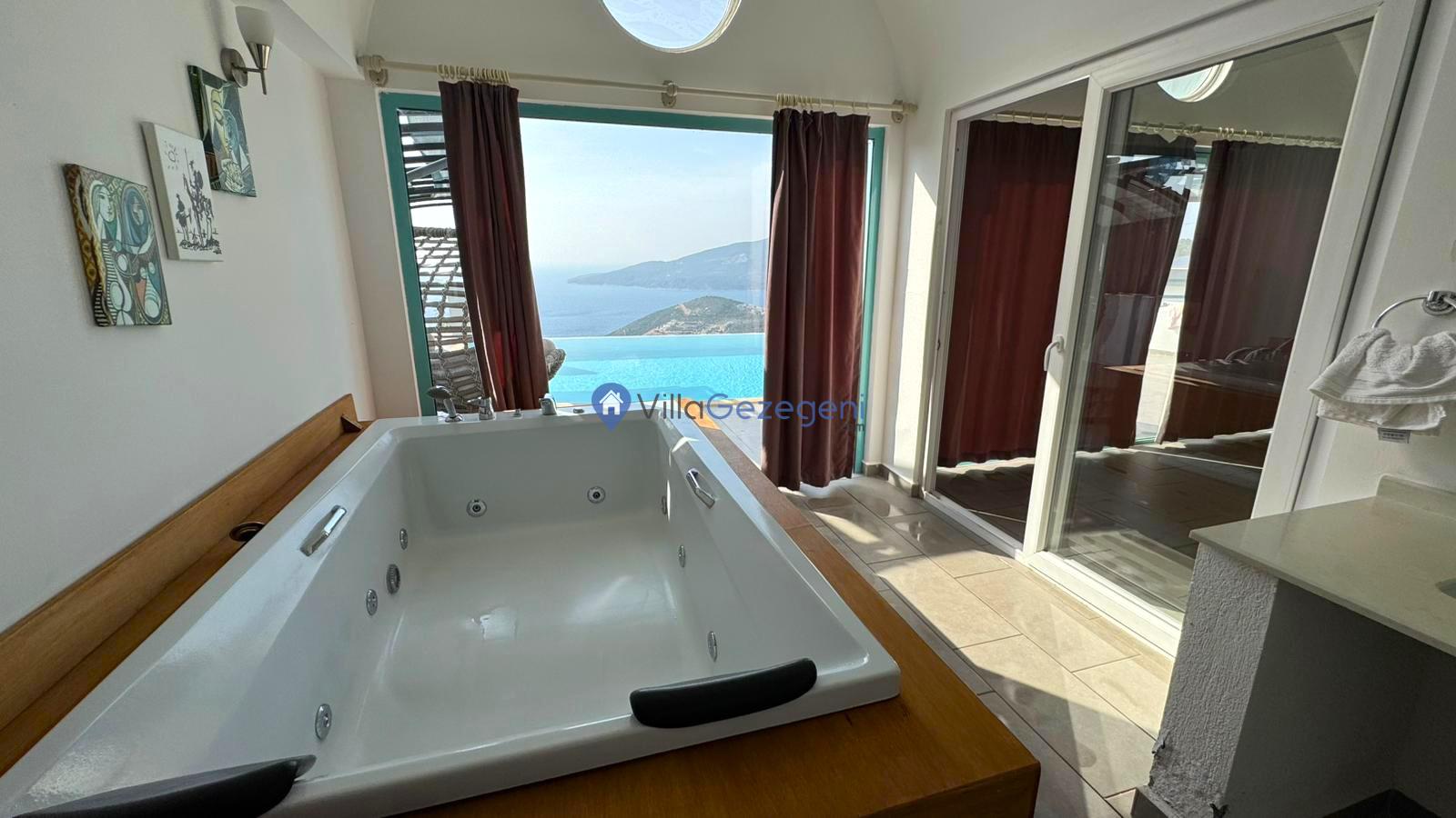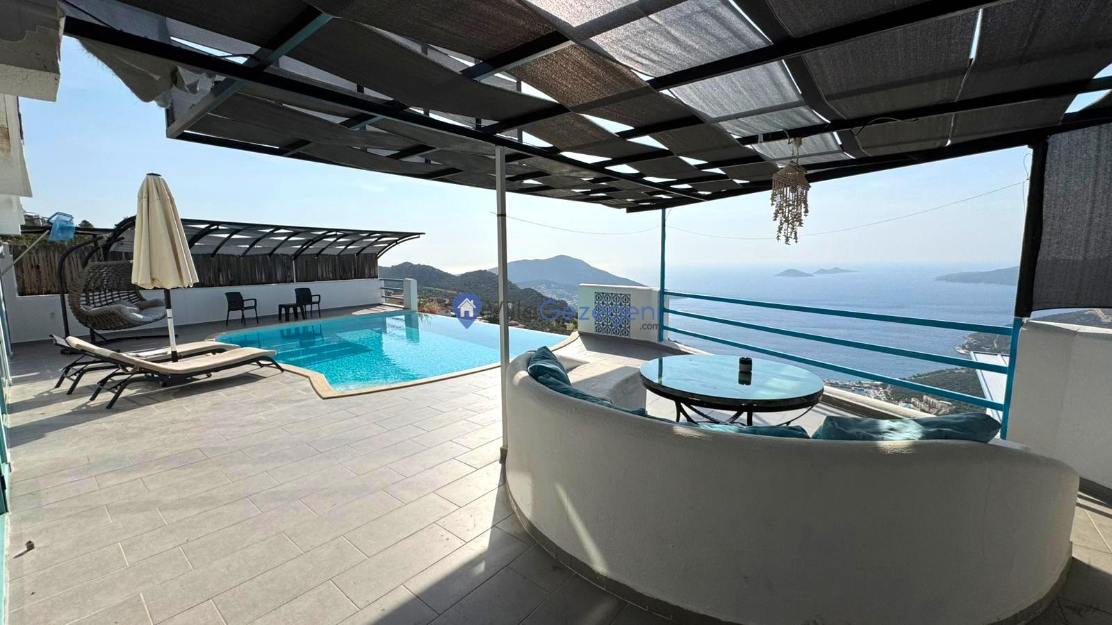 Kaş Kalkan Kördere Bölgesinde yer alan 1 yatak odalı 2 kişi kapasiteli deniz manzaralı havuzu korunaklı tatil villası.