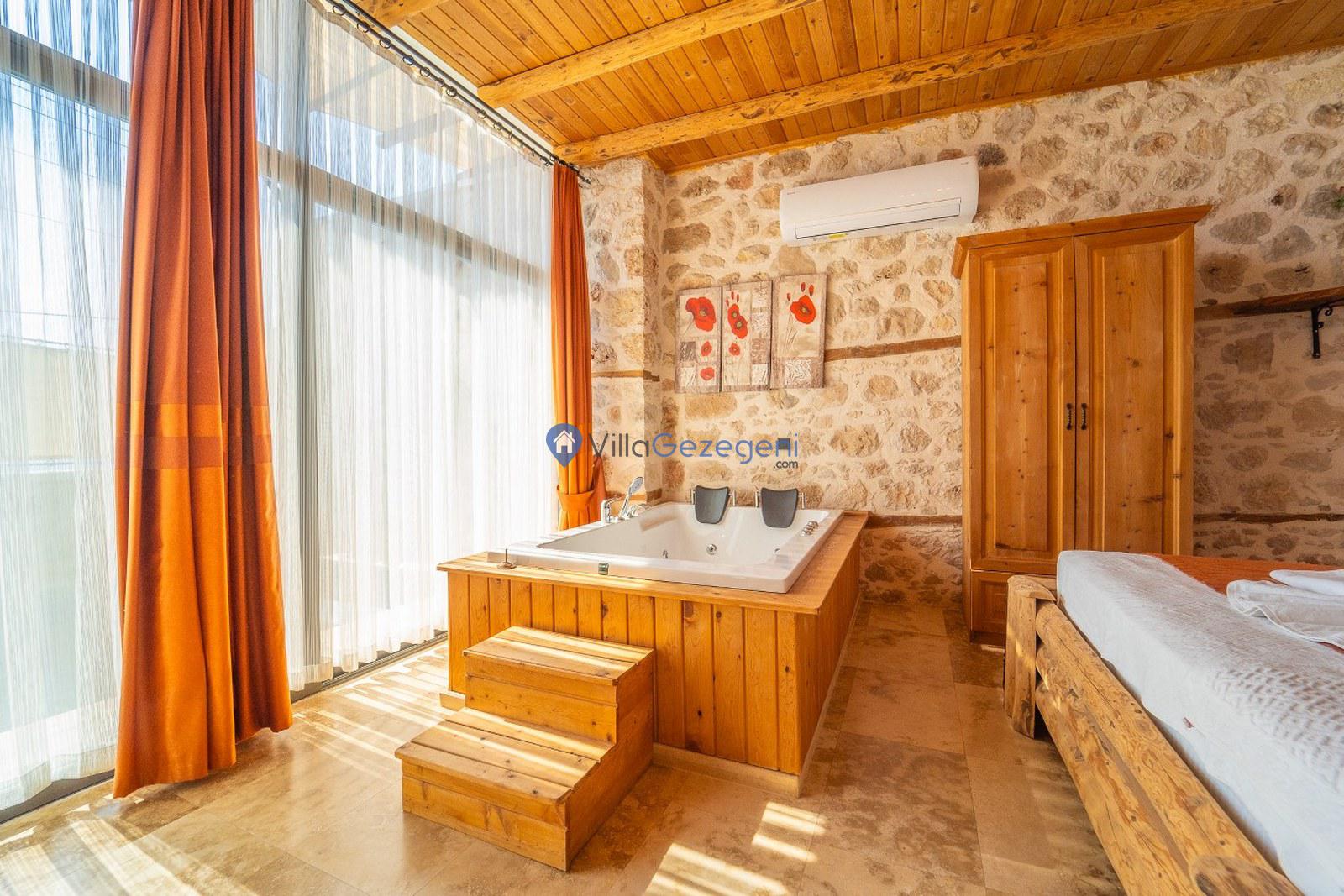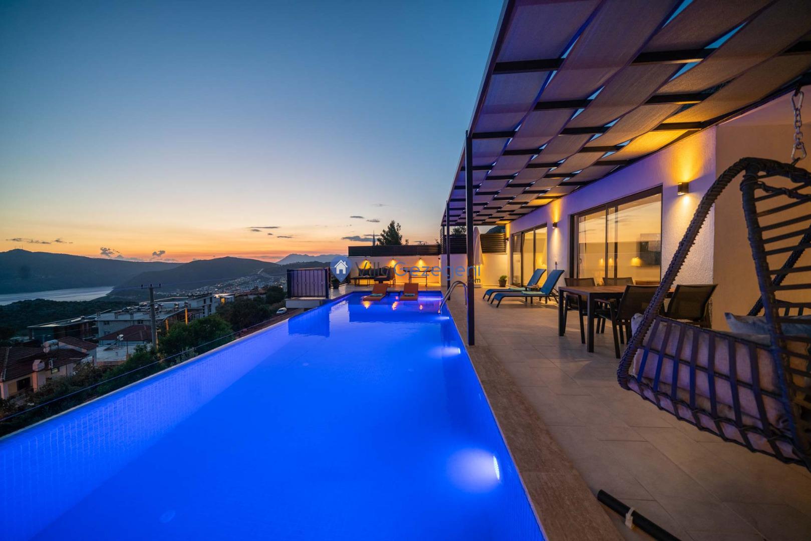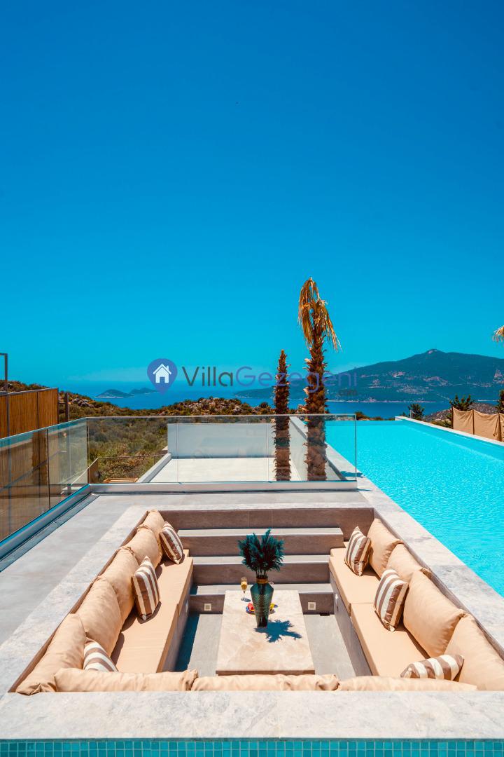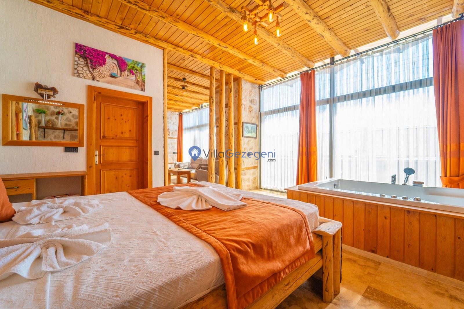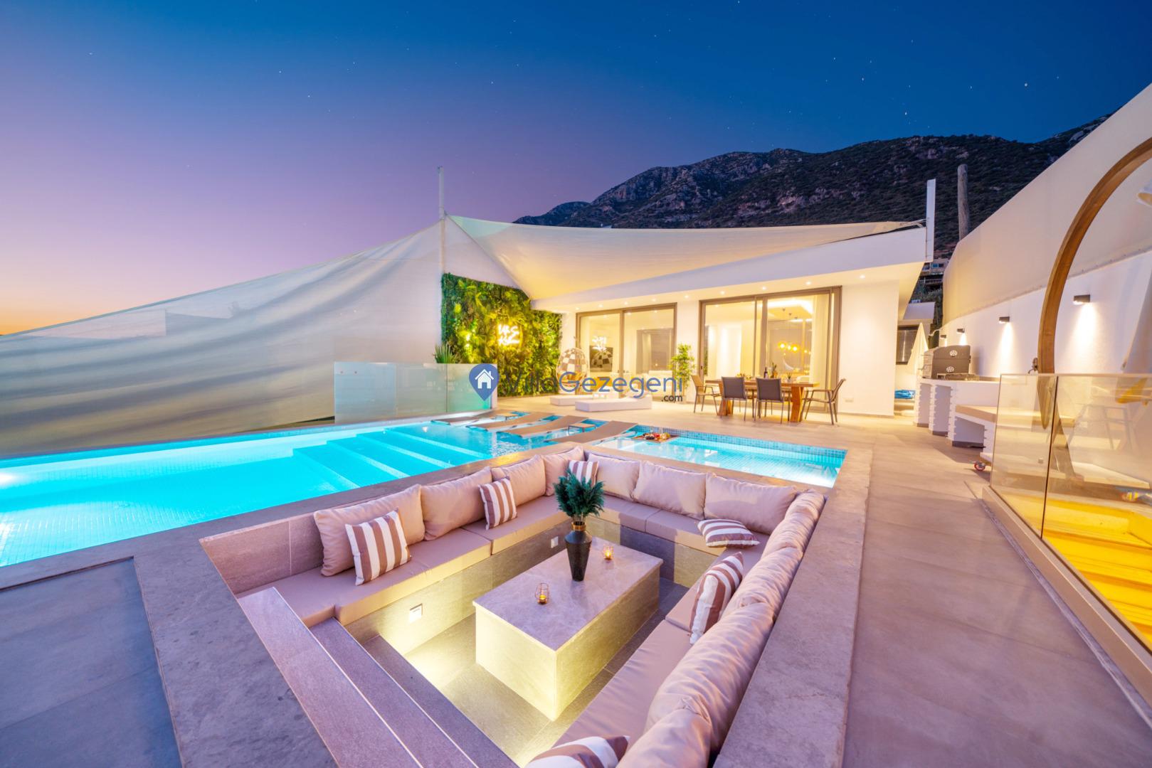 Kalkan Kördere'de 4 kişilik,kapalı havuzlu,jakuzili,deniz manzaralı balayı villası.