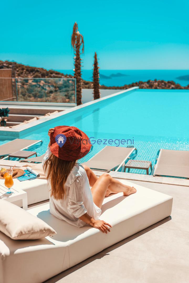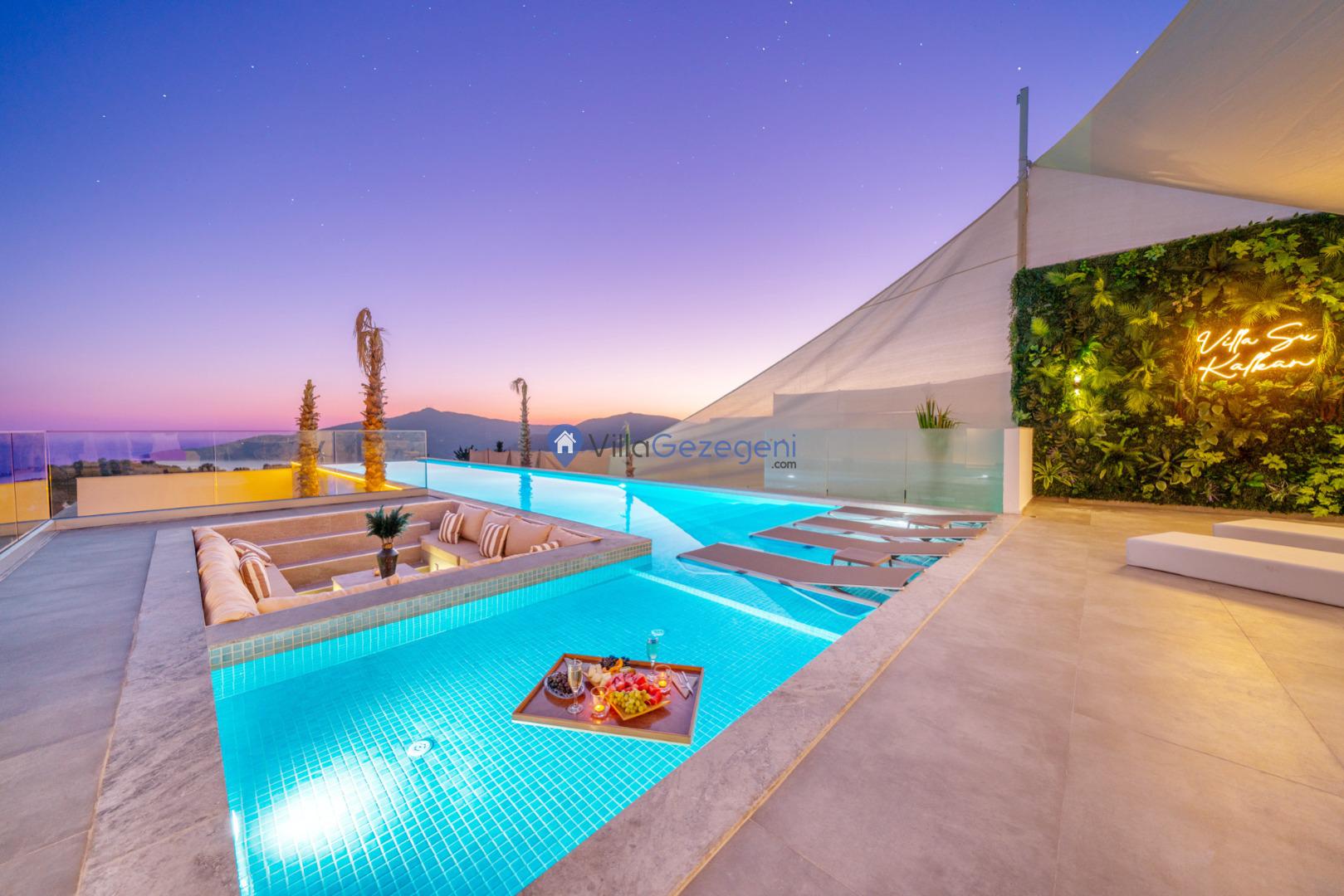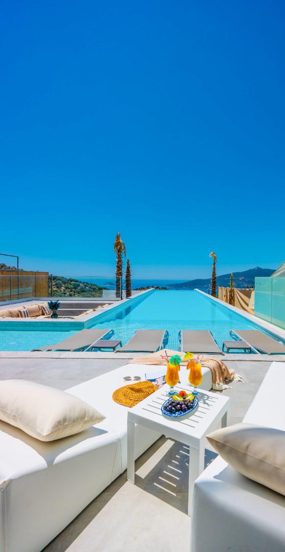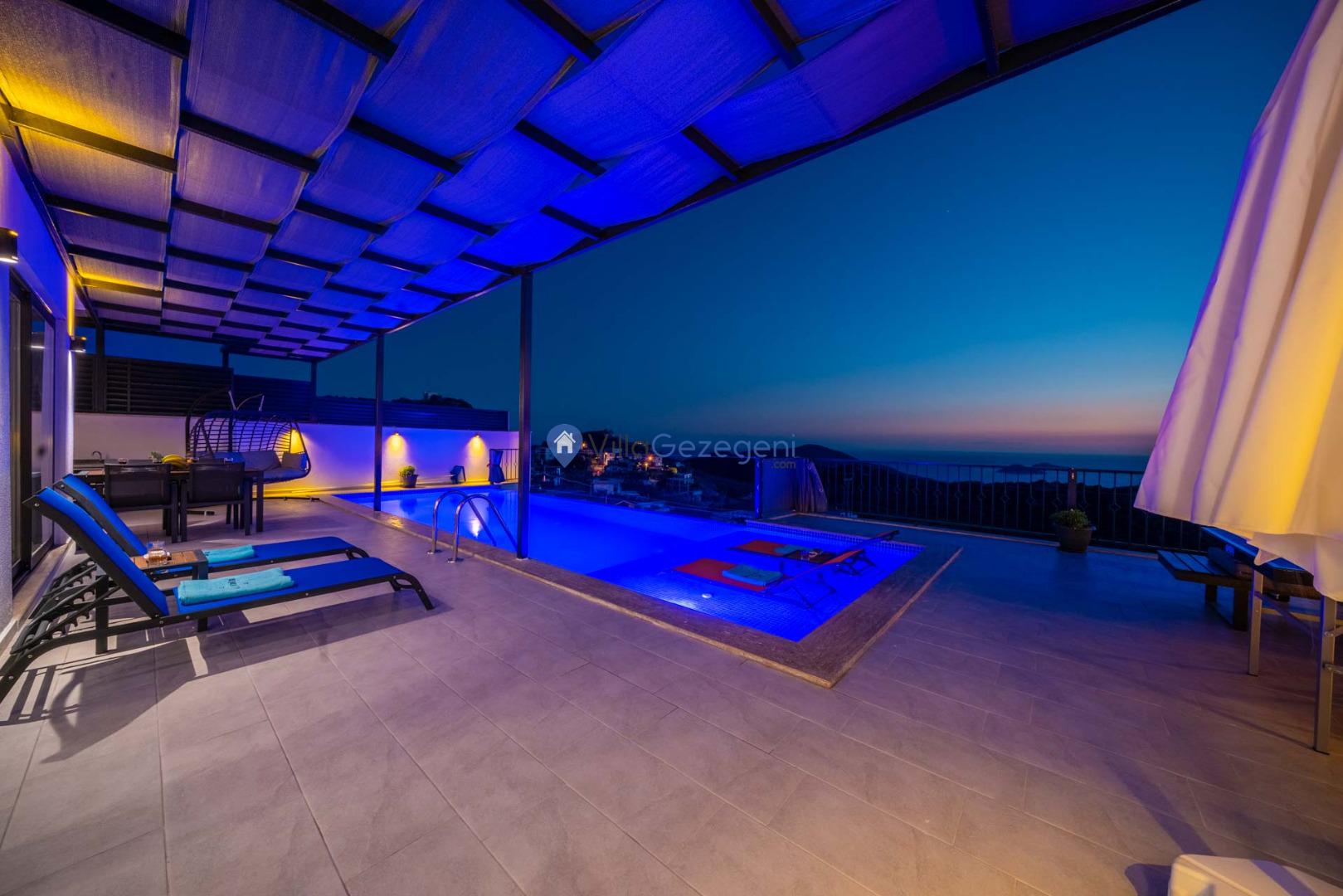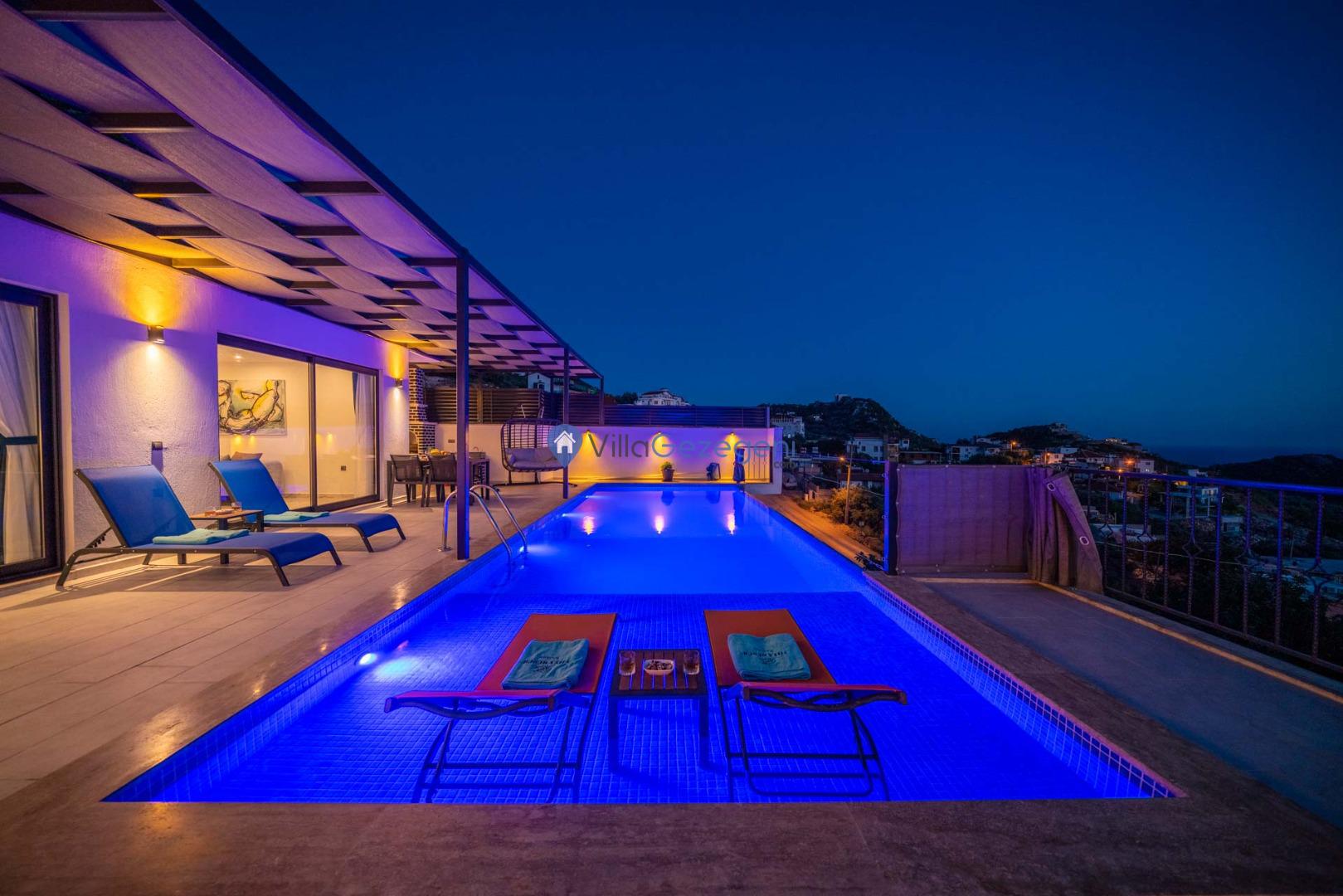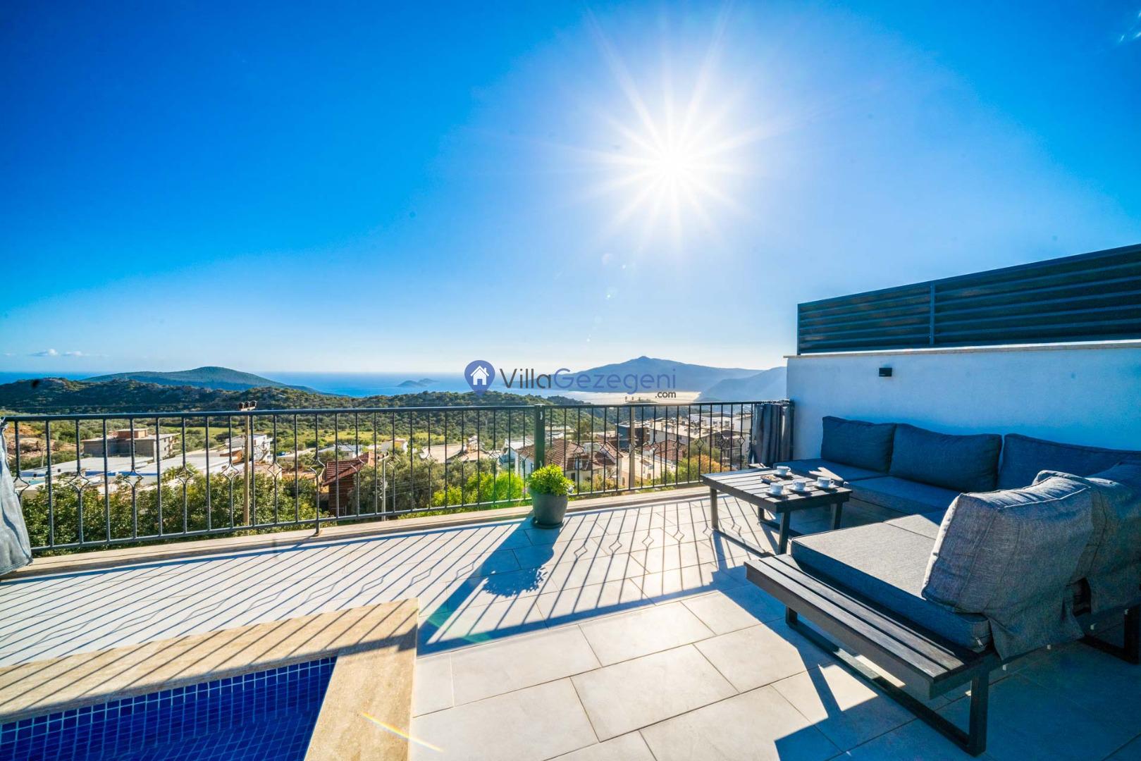Kalkan Kördere'de 4 kişilik,kapalı havuzlu,jakuzili,deniz manzaralı balayı villası.
