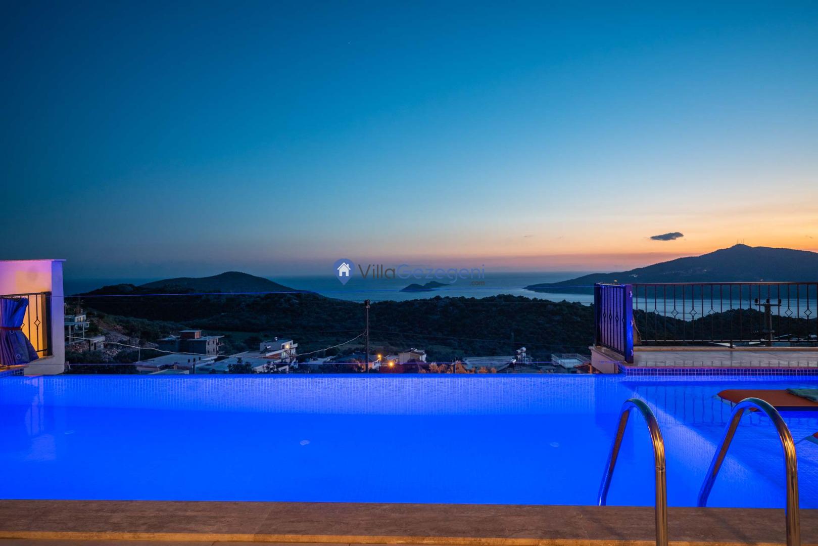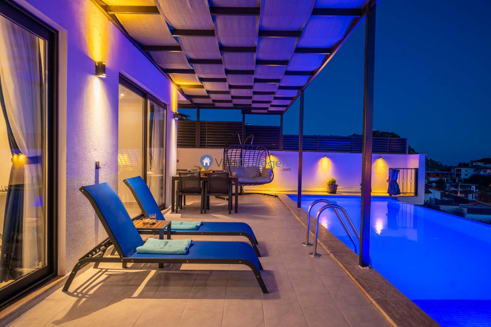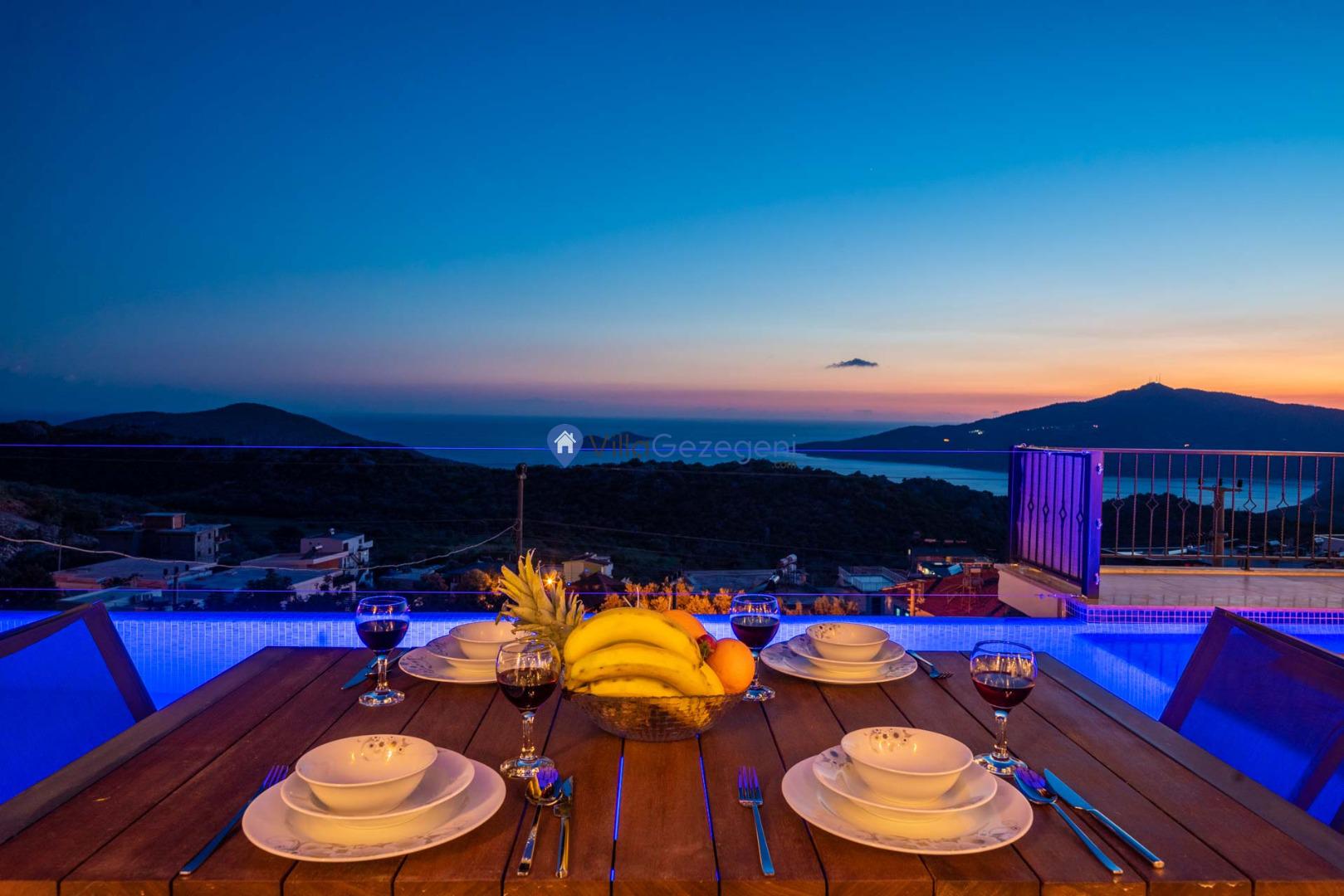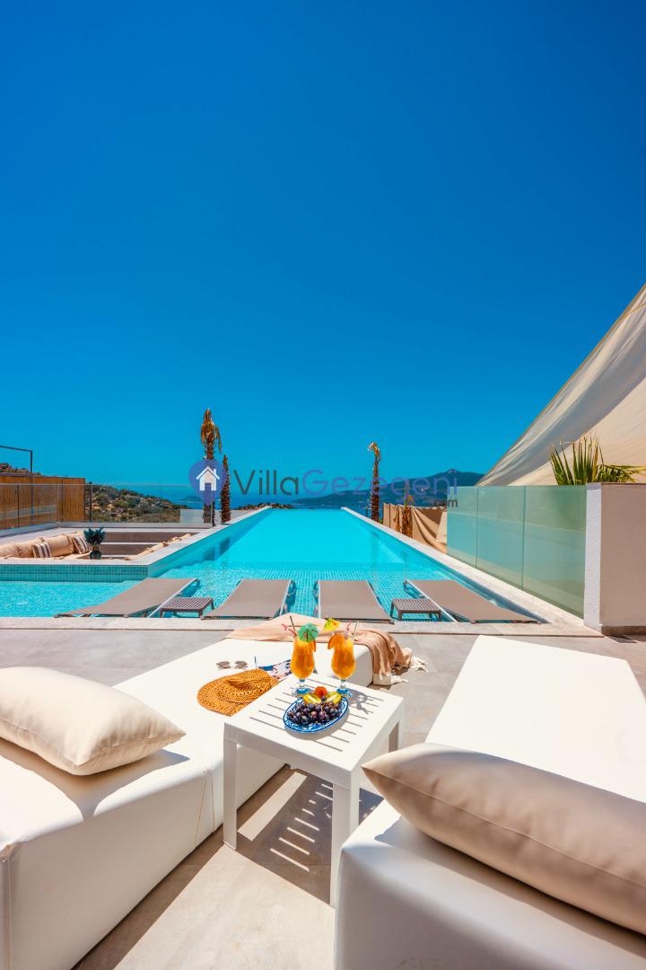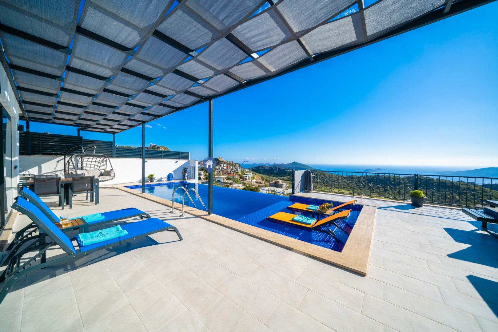Kalkan Kördere'de 4 kişilik,kapalı havuzlu,jakuzili,deniz manzaralı balayı villası.