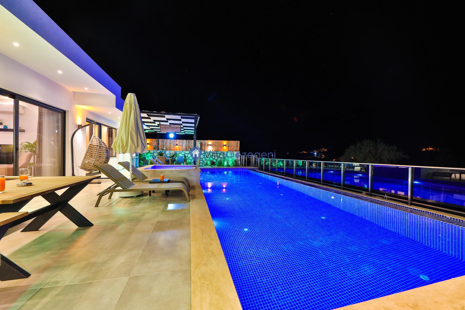 Villa Zeytin Sarıbelen Kalkan Sarıbelen Köyünün Hacıoğlan bölgesinde bulunmaktadır. Doğa içerisinde sessiz sakin bir konumda olan villa Kalkan merkeze 15/20 dakikalık sürüş mesafesindedir. Toplamda 6 kişiye kadar konaklama imkanı sunan villanın içerisinde 3 adet suit yatak odası, jakuzi ve mutfak salon yer almaktadır. Havuz terası ve bahçe alanı oldukça geniş olup, masa tenisi, langırt, salıncak, çocuk havuz, barbekü ve yemek masası bulunmaktadır. Arkadaş gruplarının ve ailelerin tercih edebileceği konforda tasarlanan villamız şehrin gürültüsünden uzak bir tatil arayışında olanlar için birebirdir.