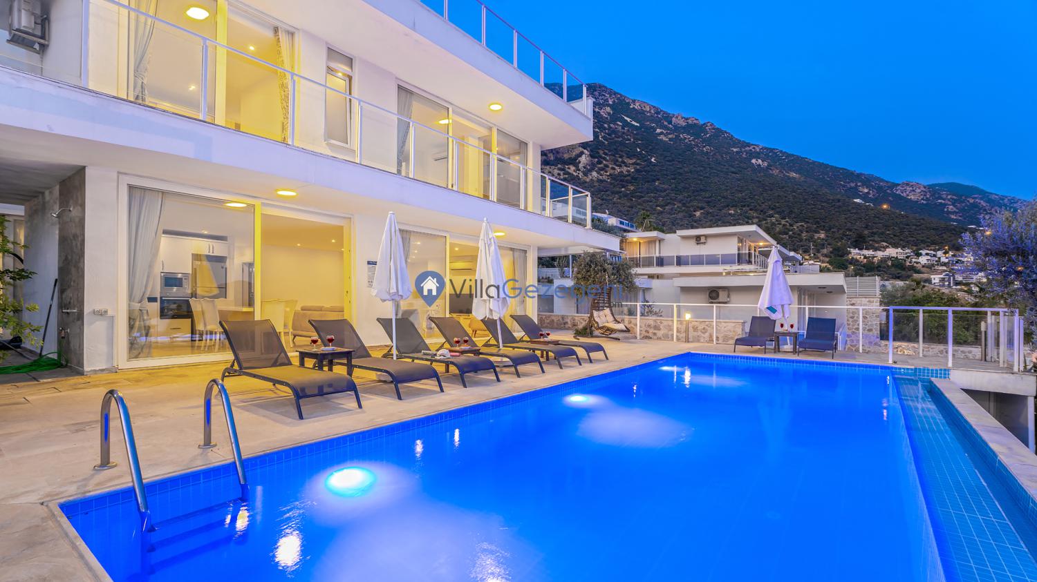 Kalkan Kızıltaş'ta 8 kişilik,havuz terası korunaklı,deniz manzaralı,merkeze yakın kiralık villa.
