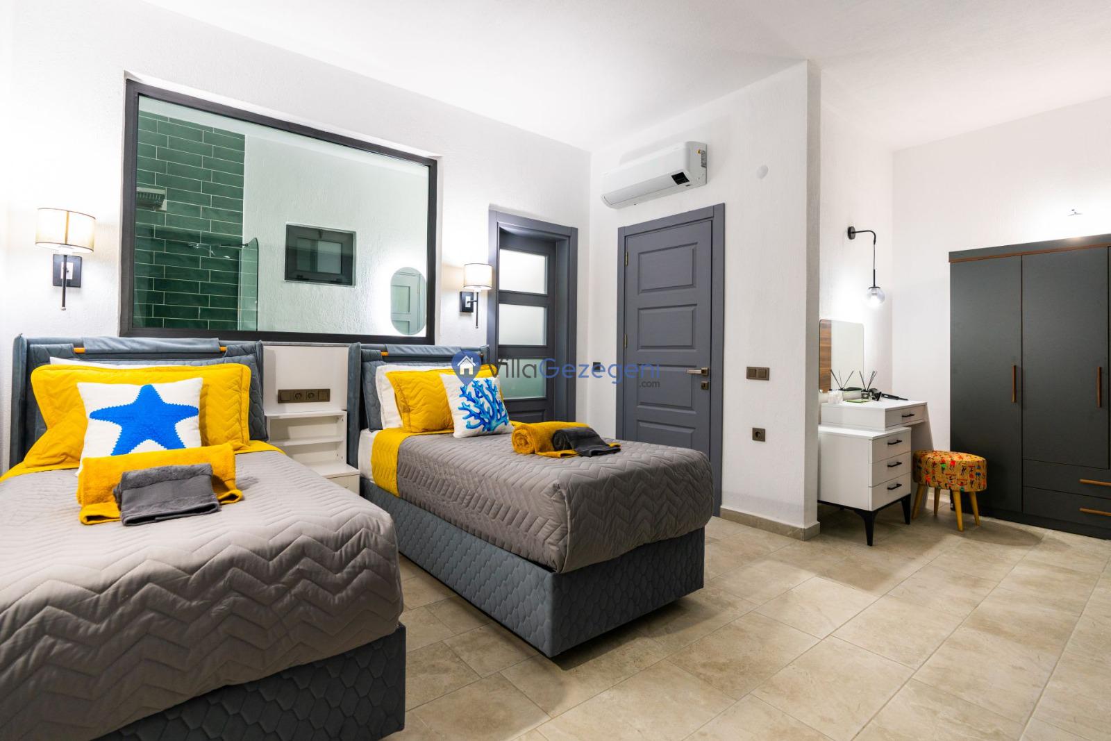 Villamızın genel konsept ve özelliklerinden tekrar bahsedecek olursak; villamızın 1 adet müstakil özel havuzu bulunmaktadır. Ortalama bir bahçeye sahip olan villamız rahatlığı ön planda tutan 3 adet yatak odası,4 yatak,3 banyo, hareket alanı geniş bir mutfak ve 6 kişinin geniş aralıklarla rahatlıkla oturabileceği koltuklara sahip salonu bulunmaktadır.